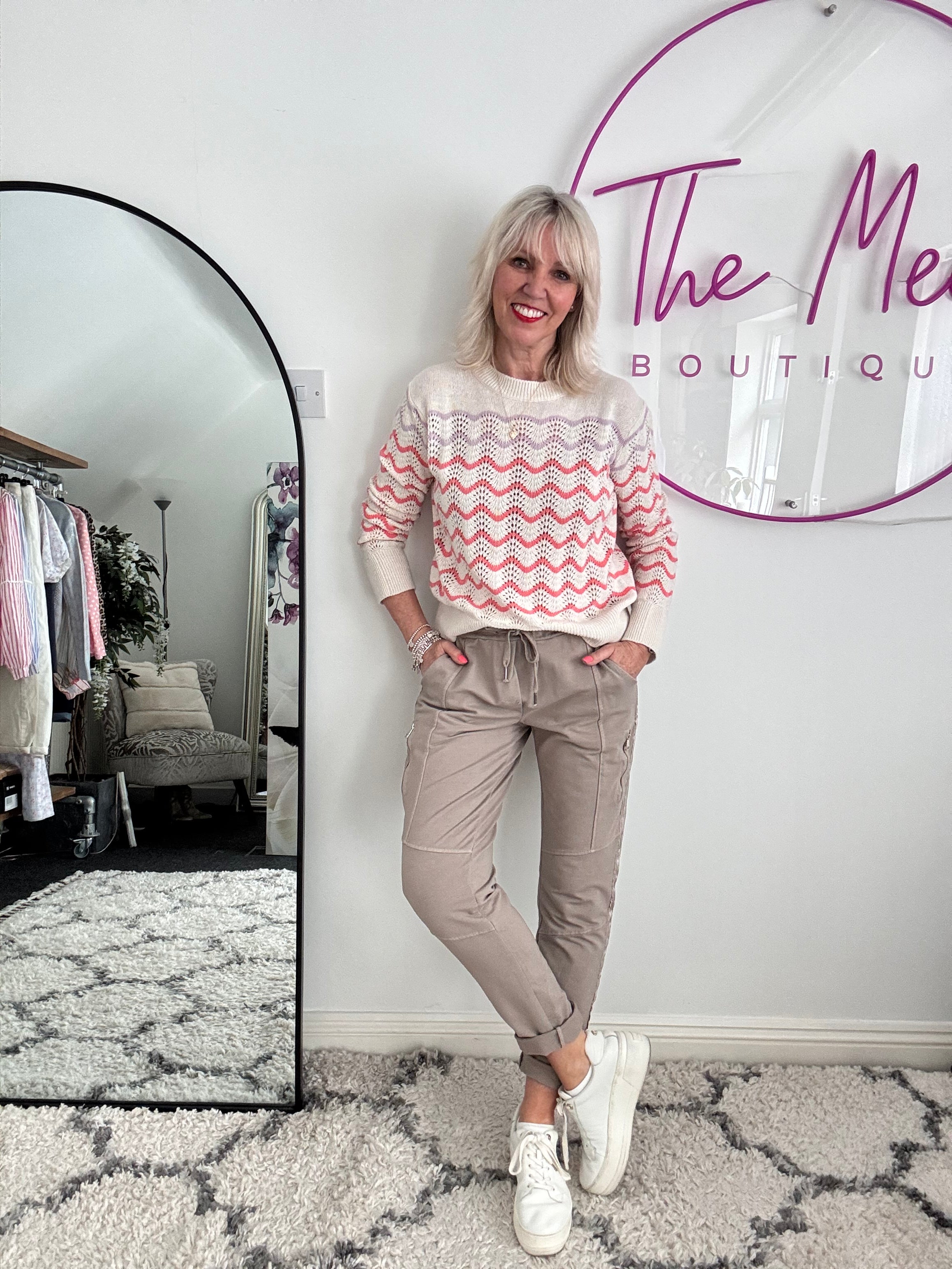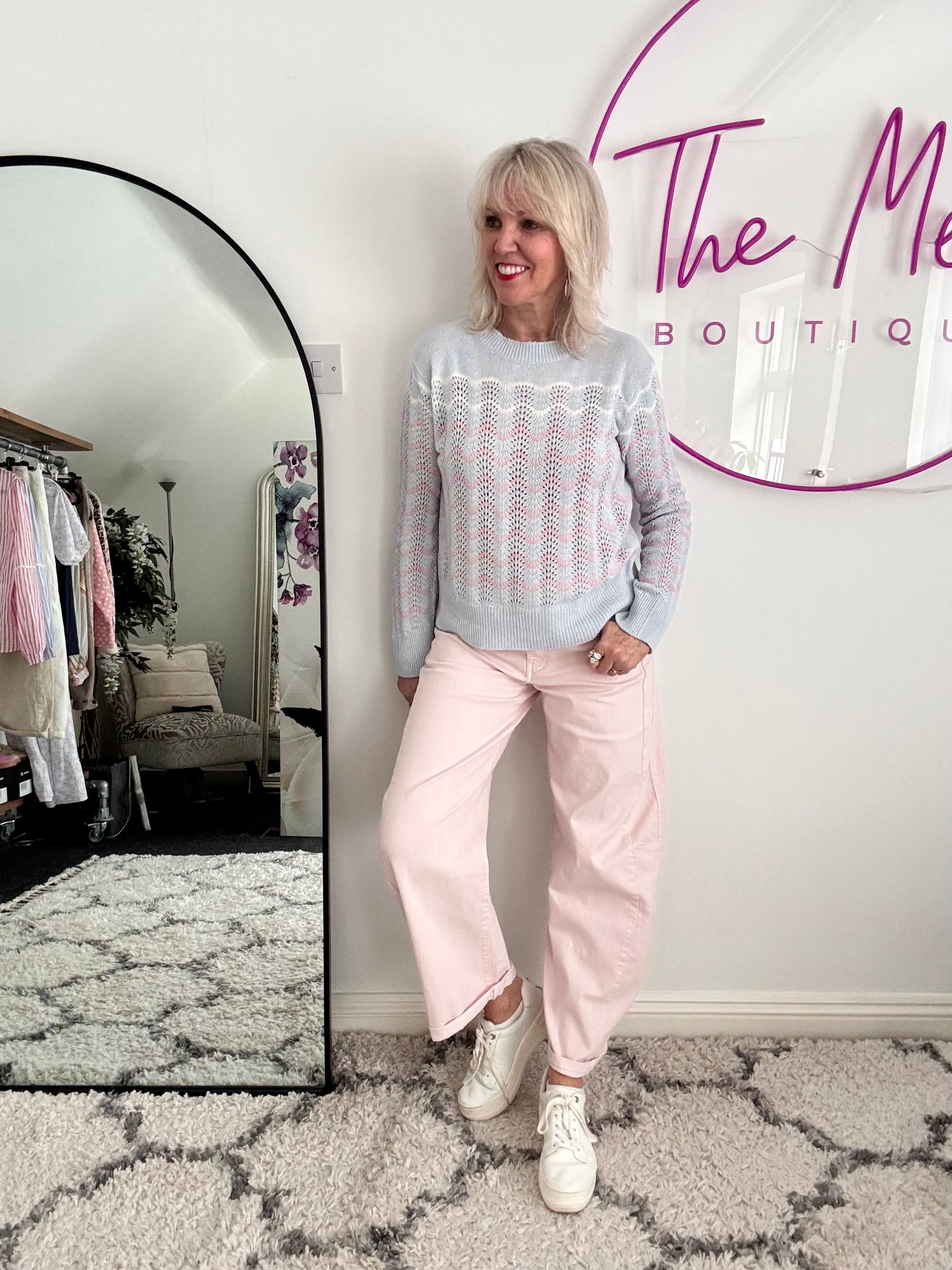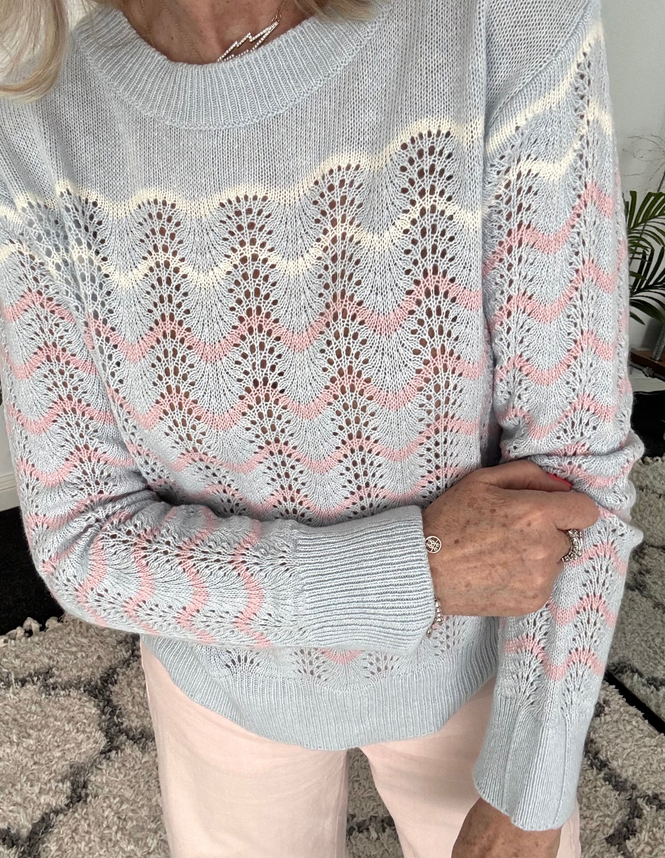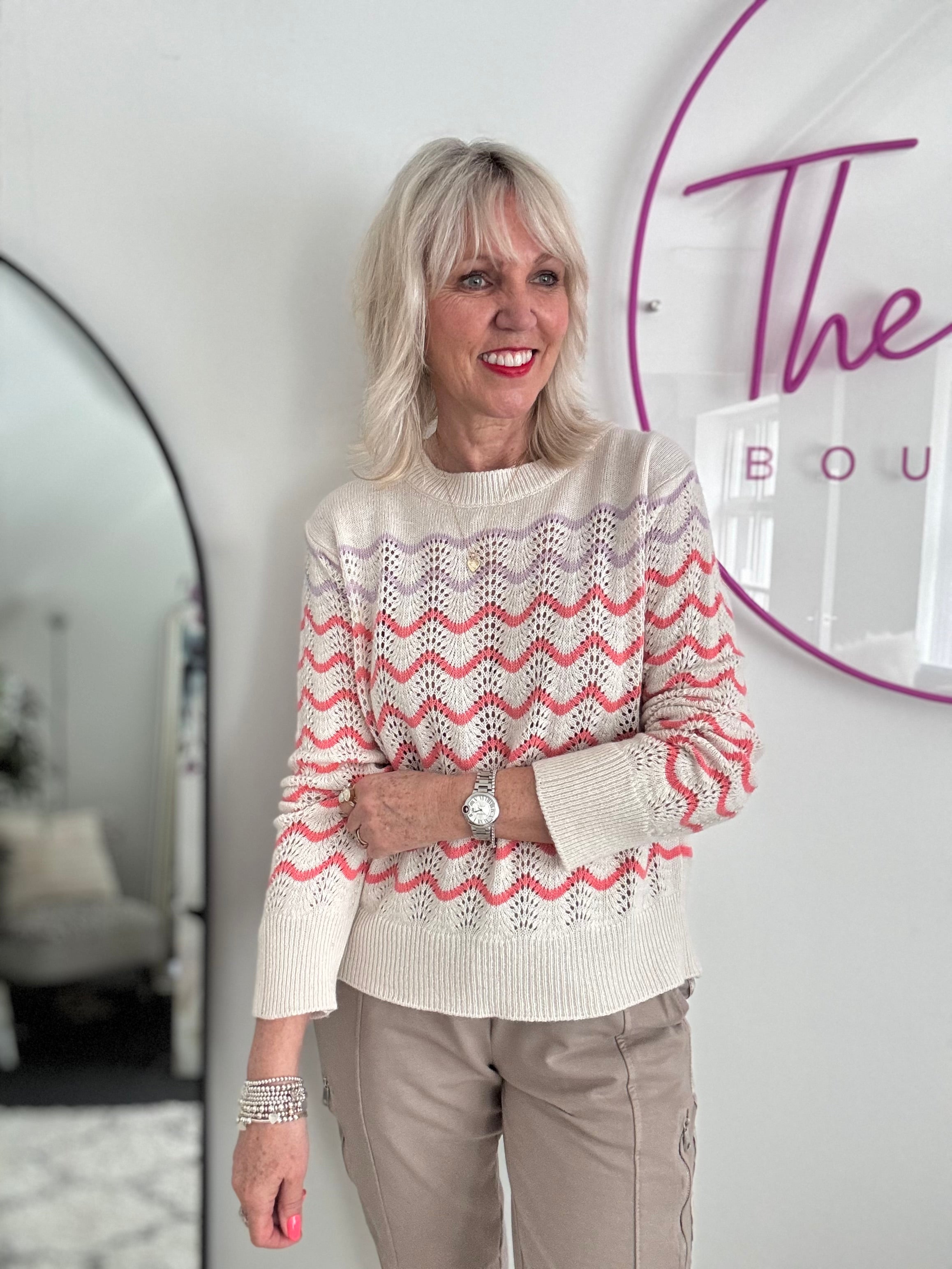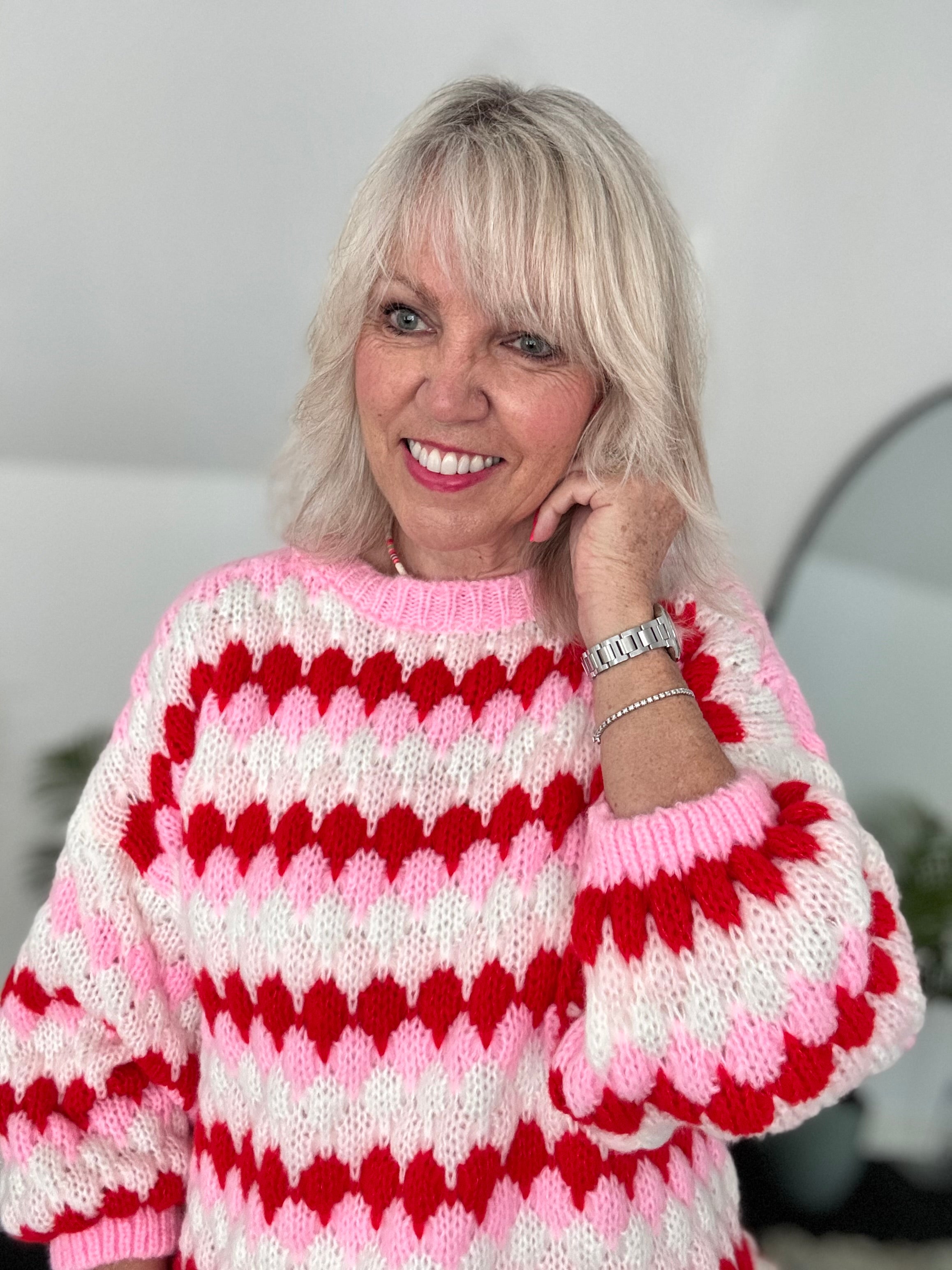 Waffle Knit Jumper in Pink & Red