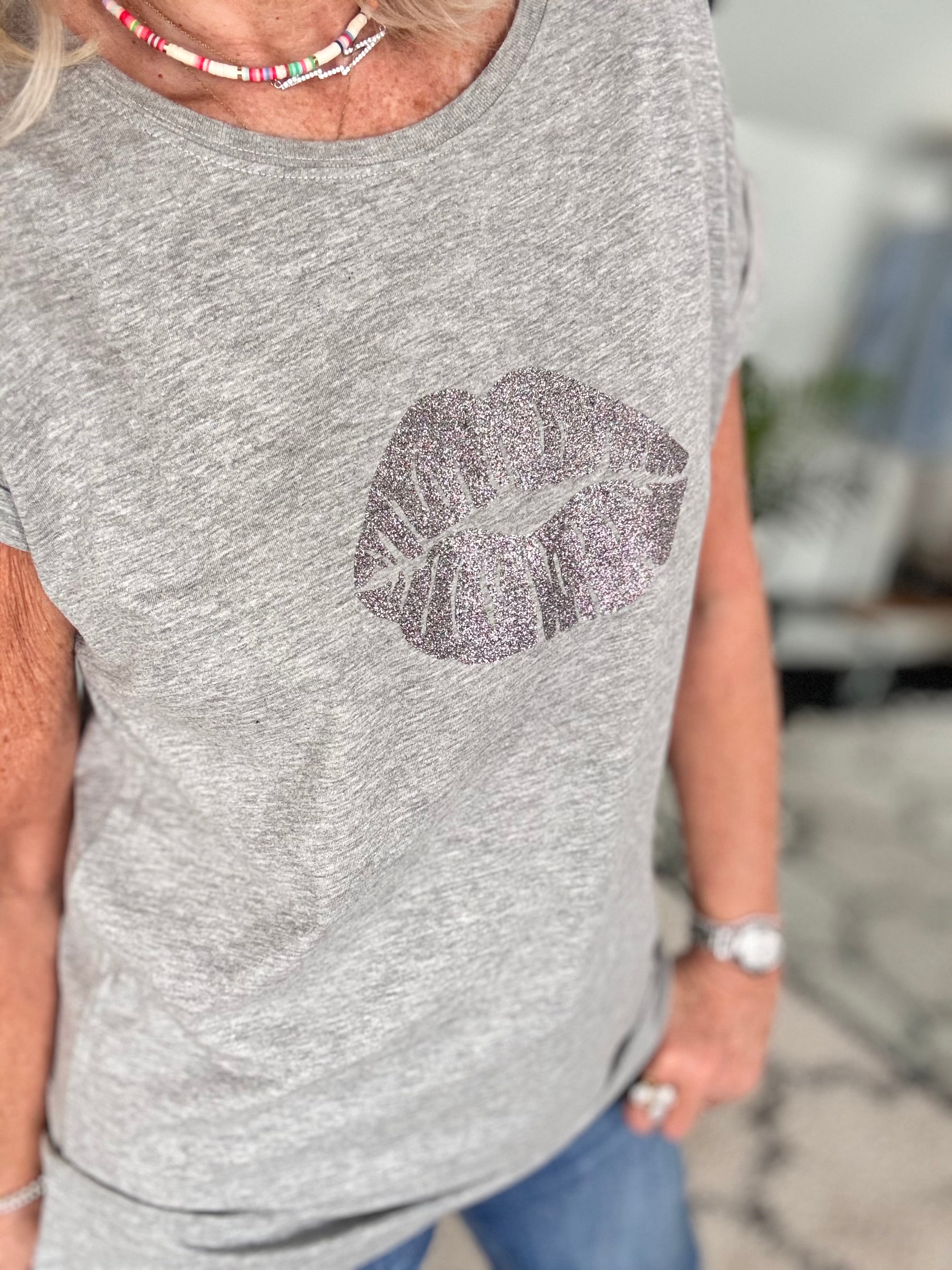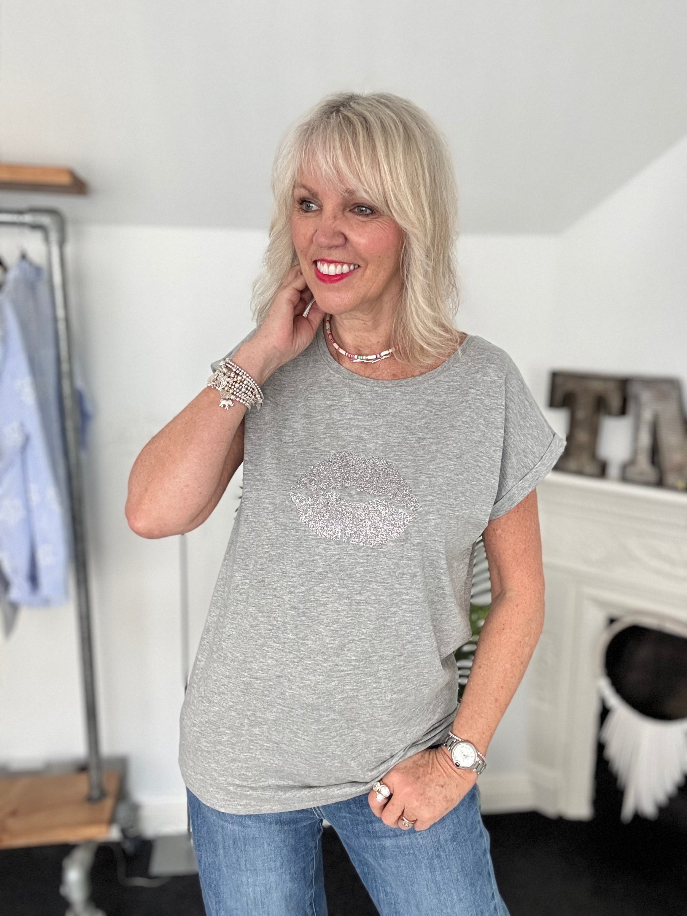 Lips Tee in Marl Grey & Silver