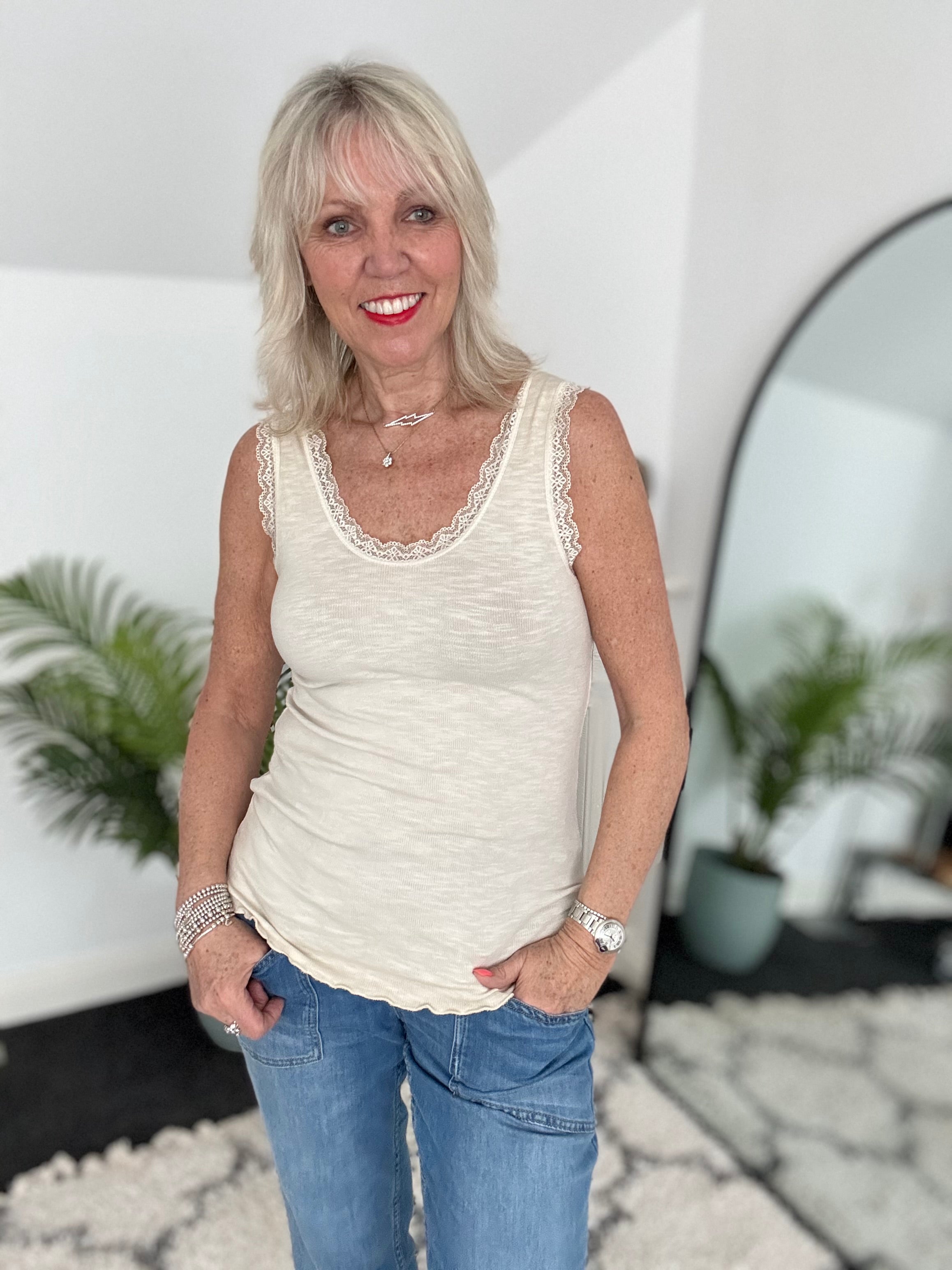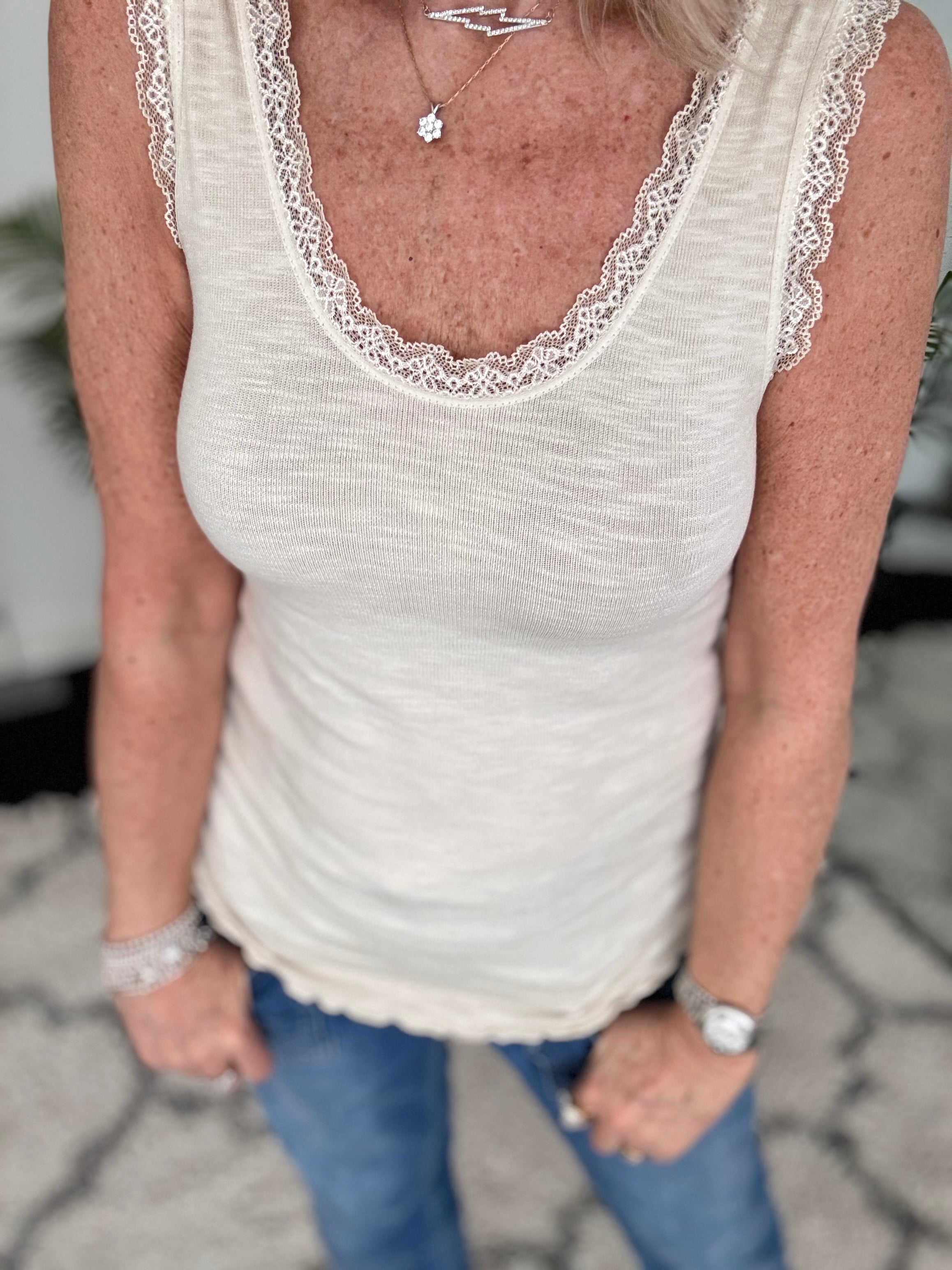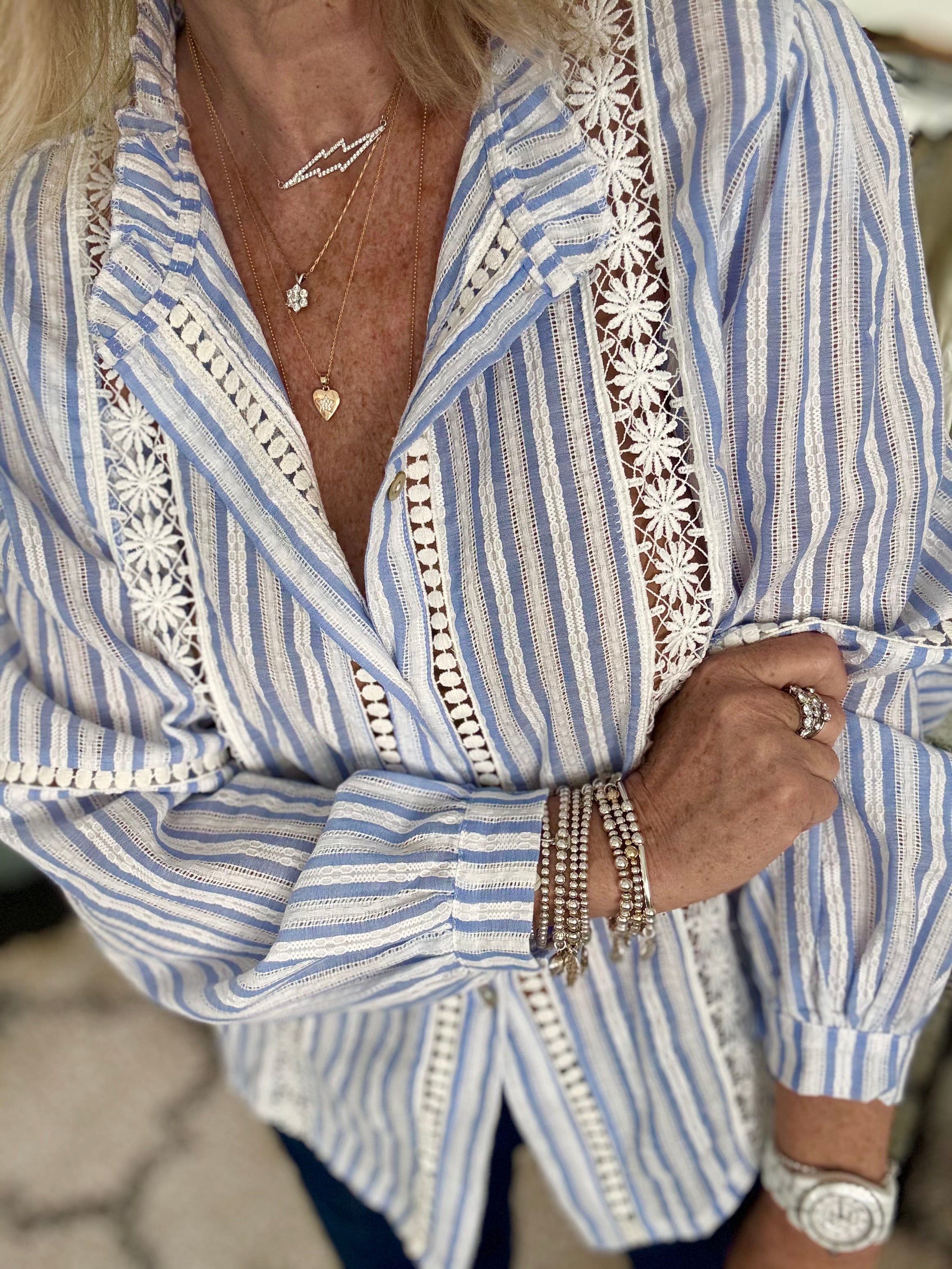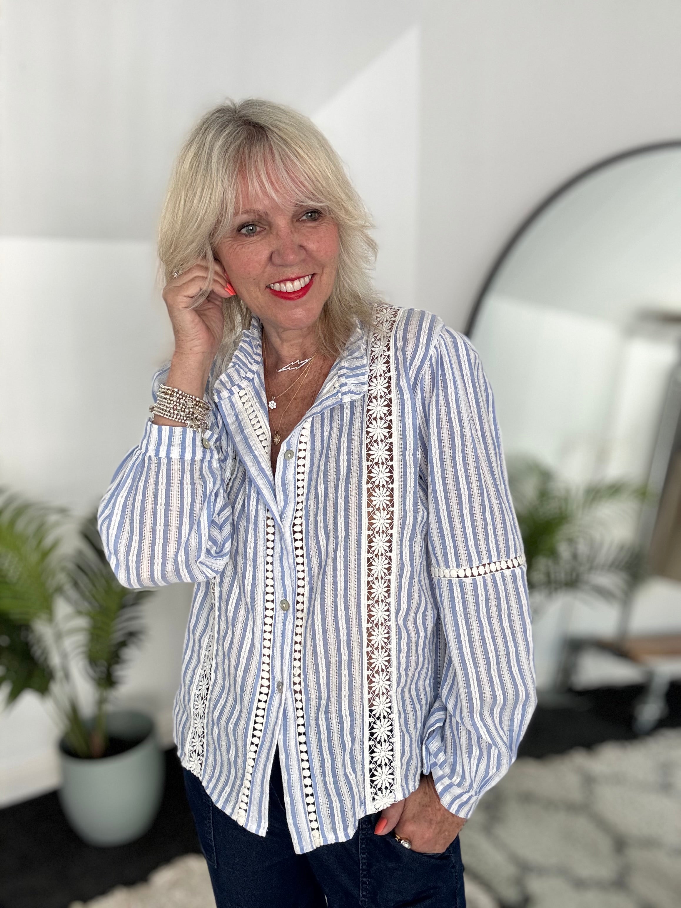Cotton & Lace Shirt in Blue & White