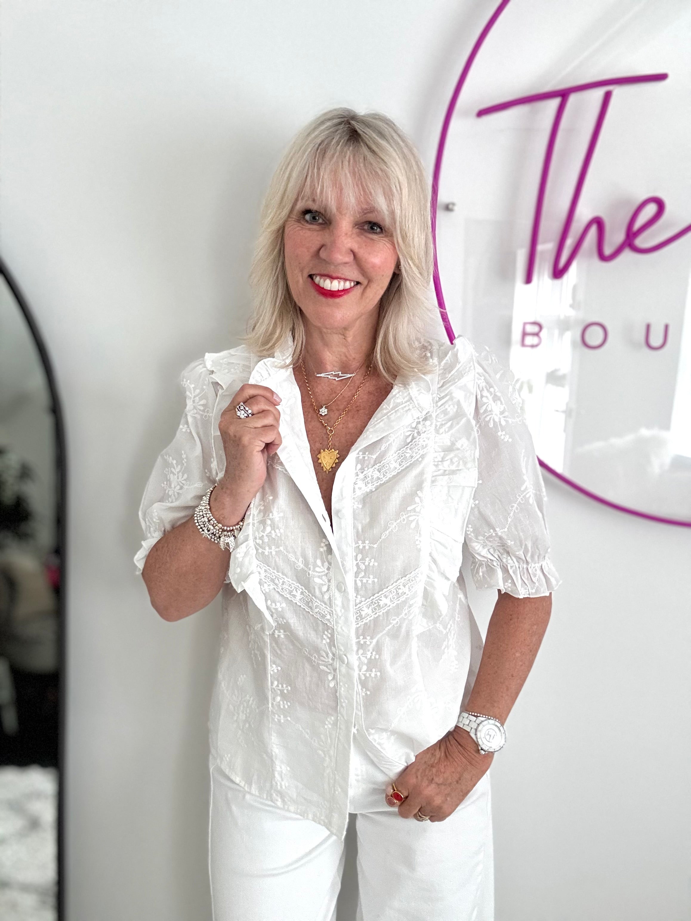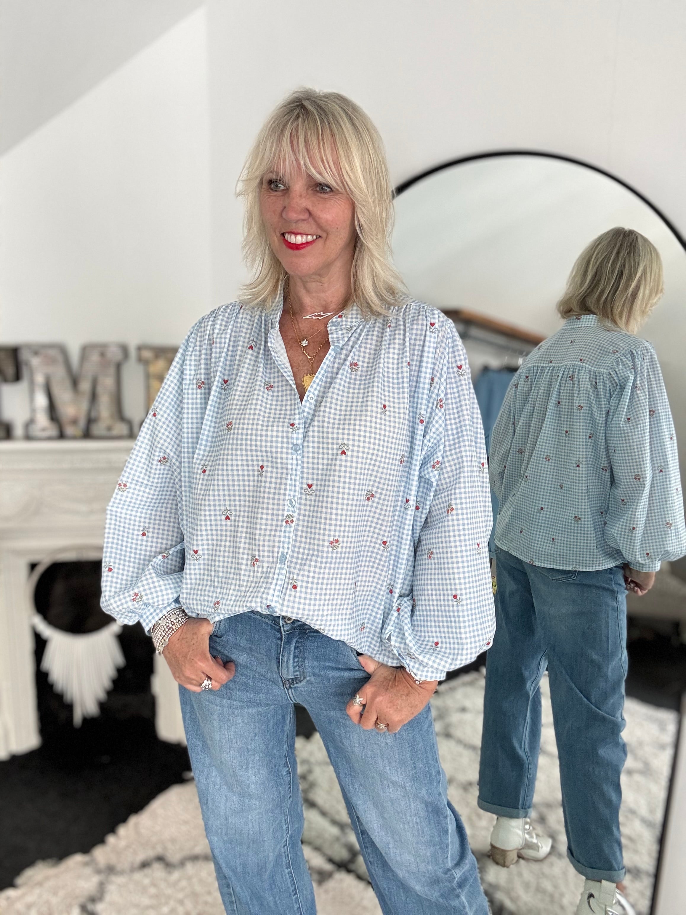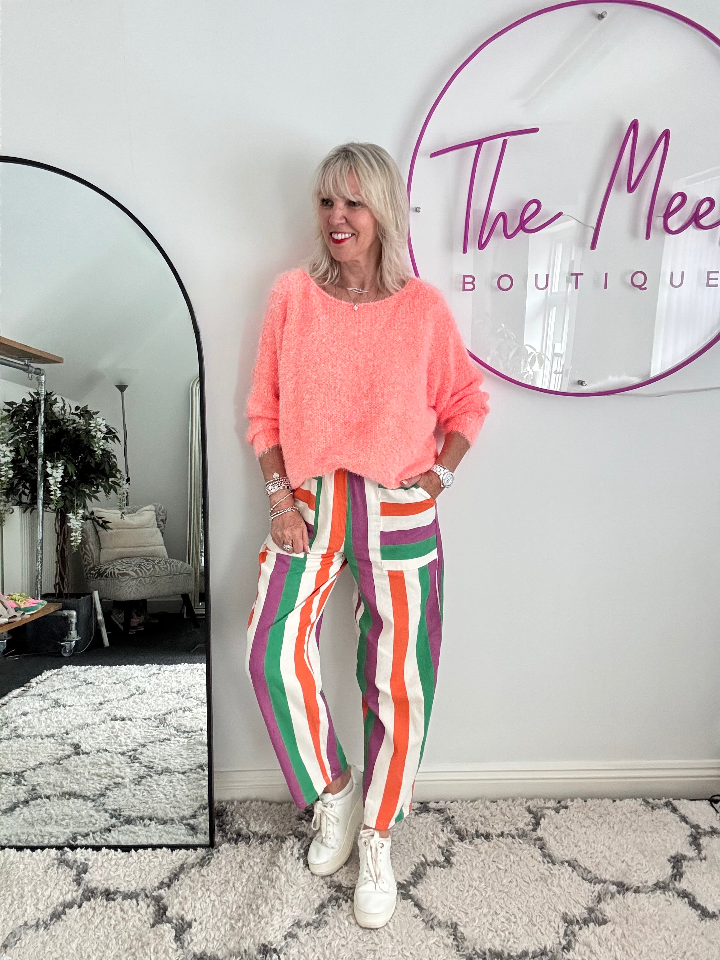 Designer Stripe Shirt with Neon Embroidered Sleeves
