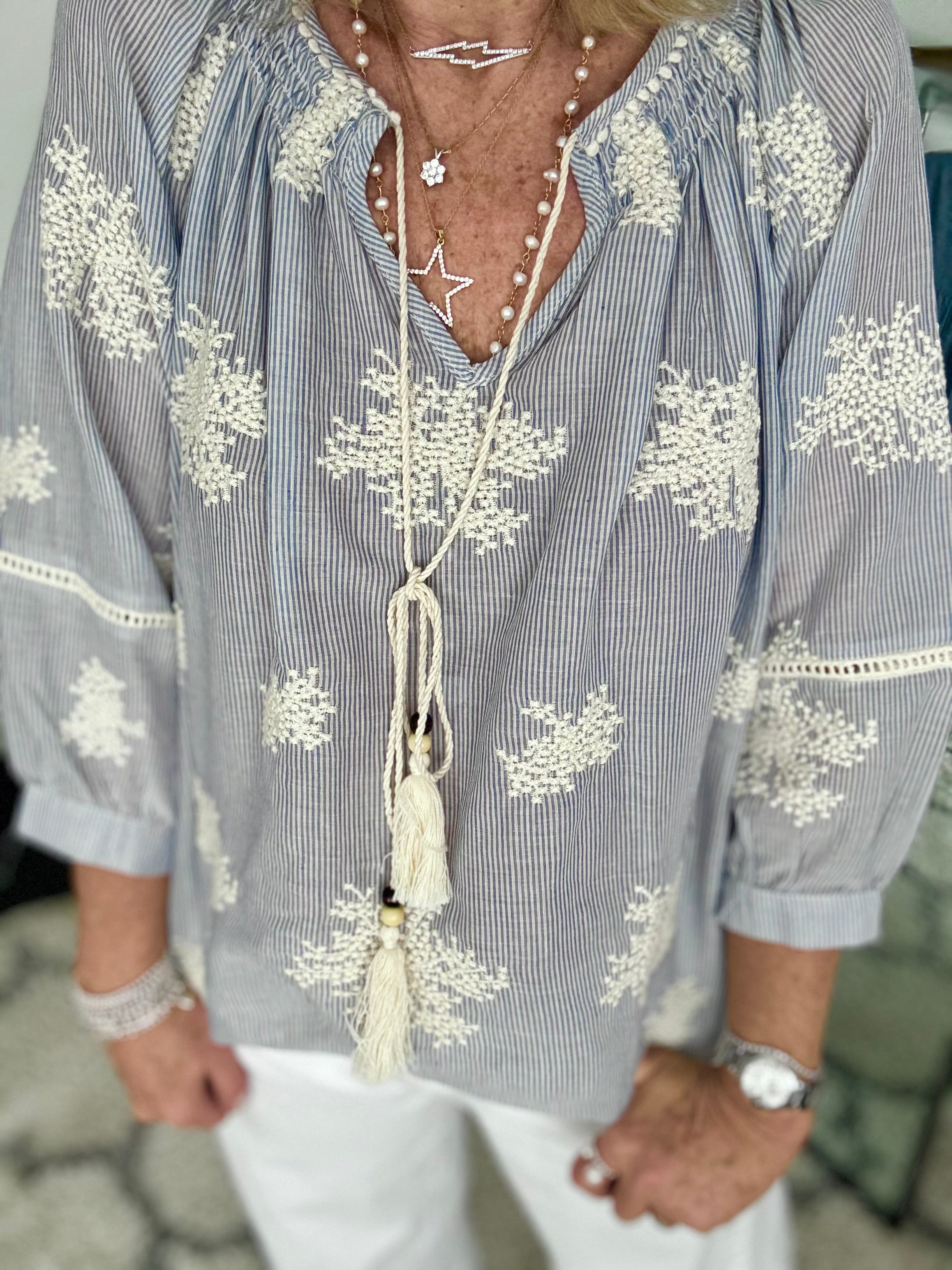 Embroidered Blouse in Blue & White