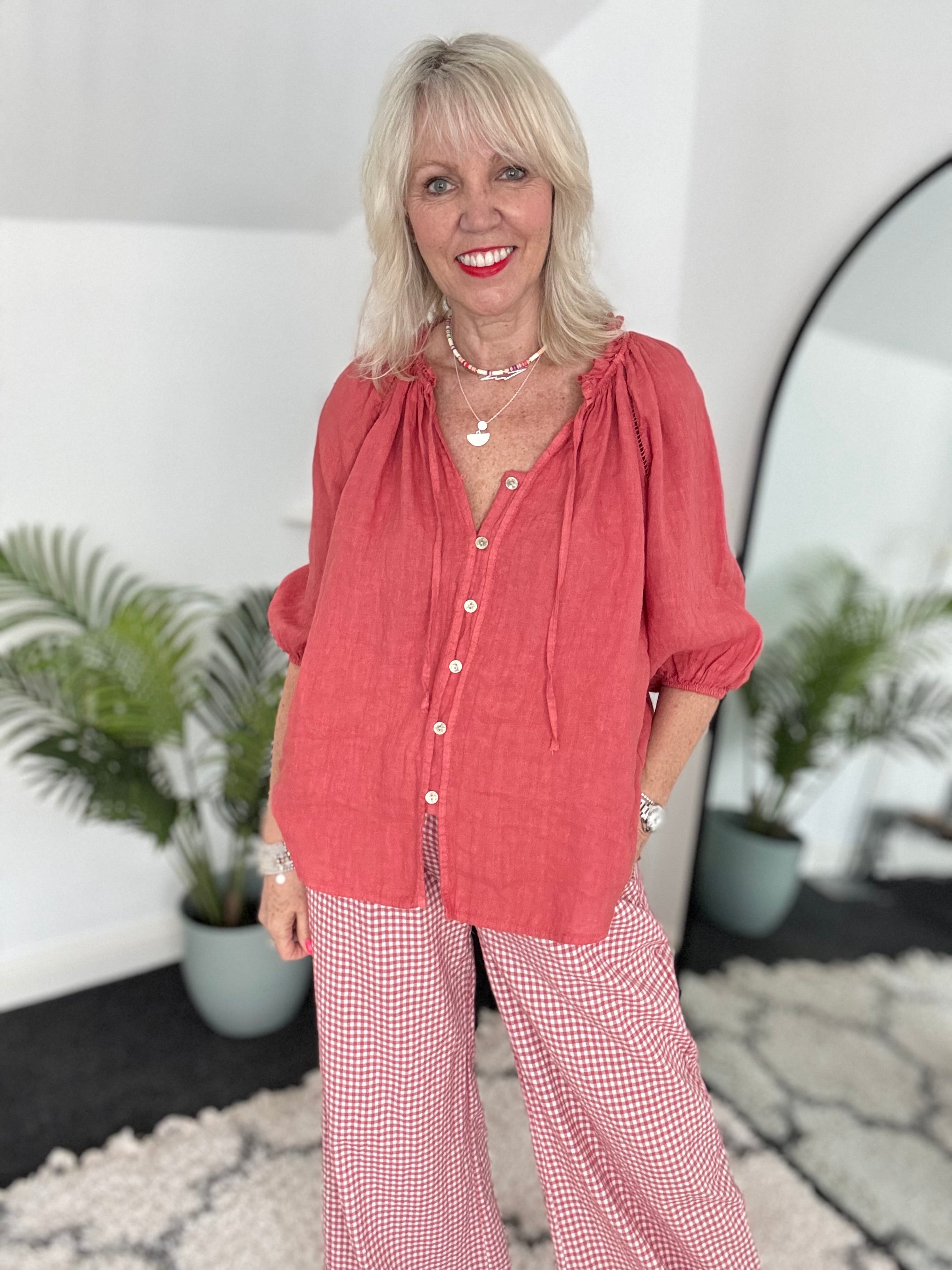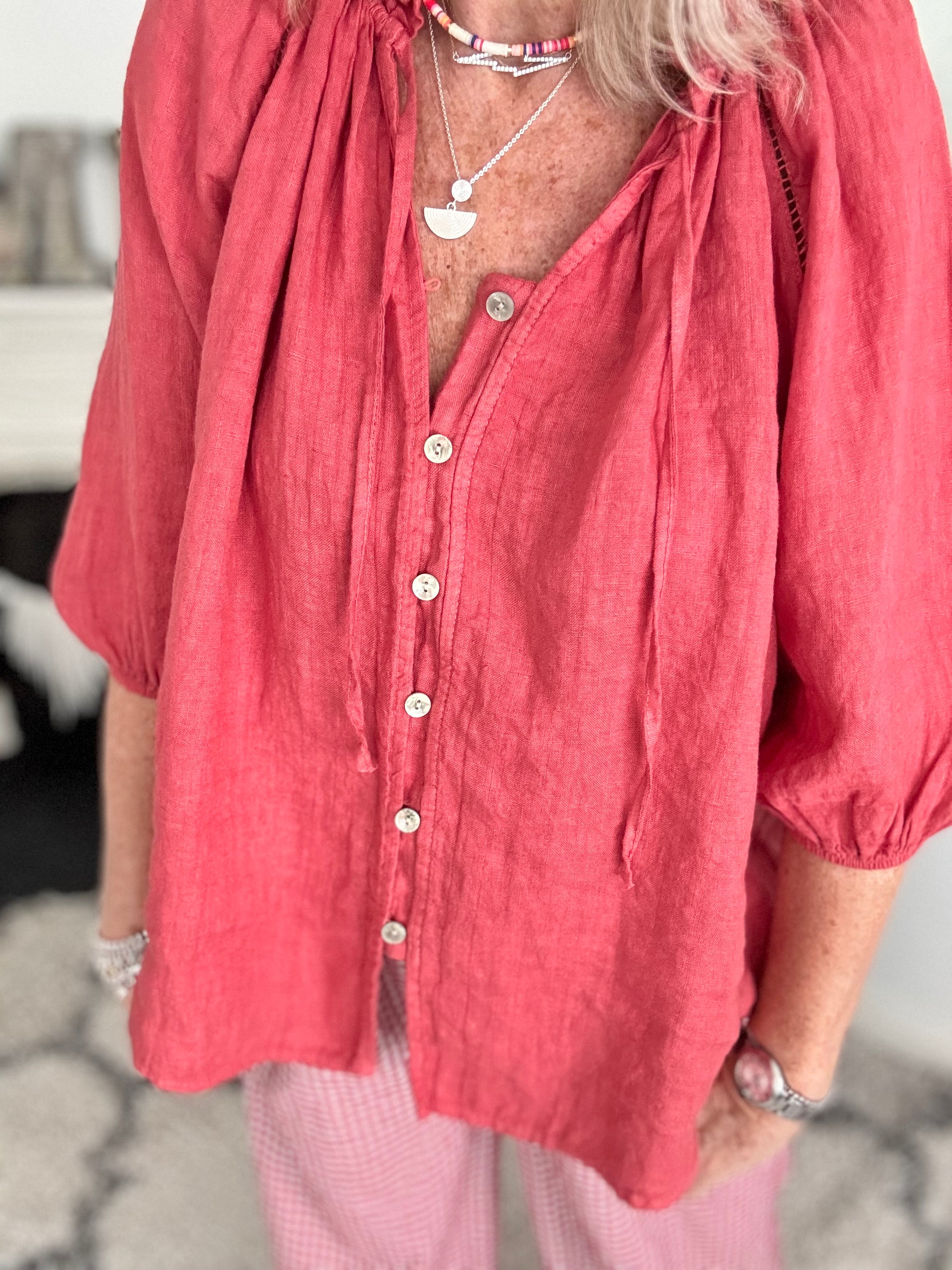 Pure Linen Designer Blouse in Pomegranate