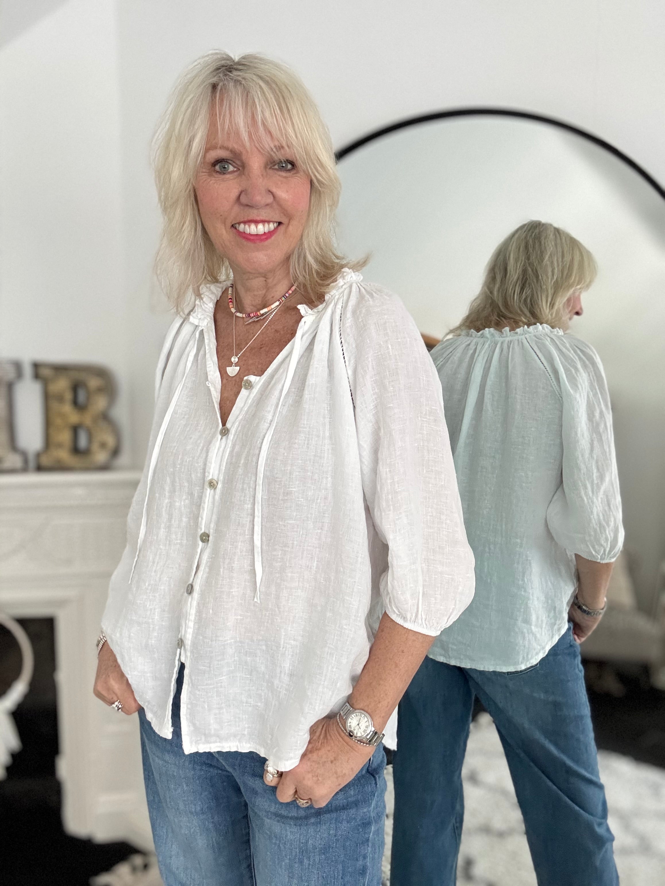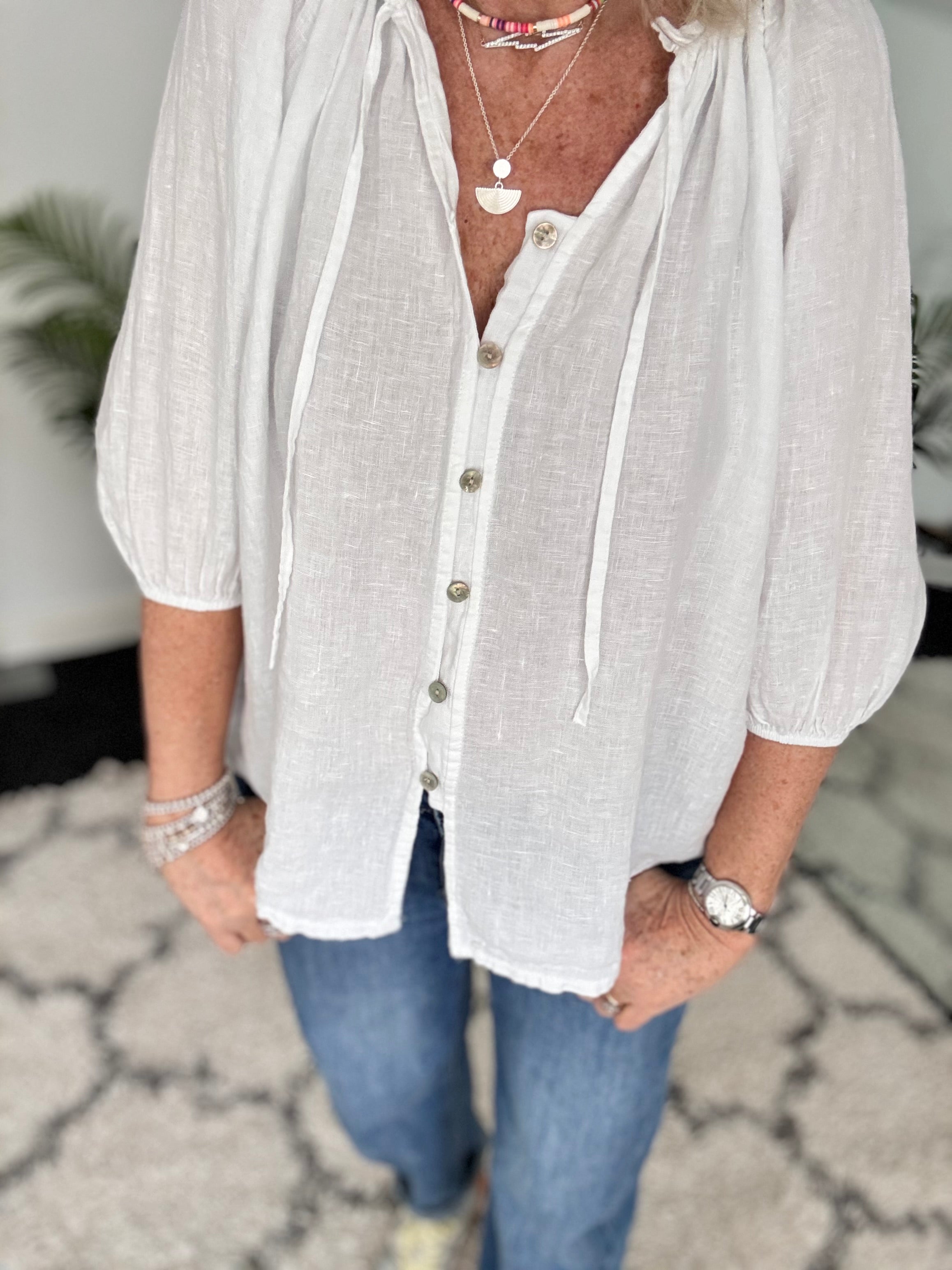 Pure Linen Designer Blouse in White