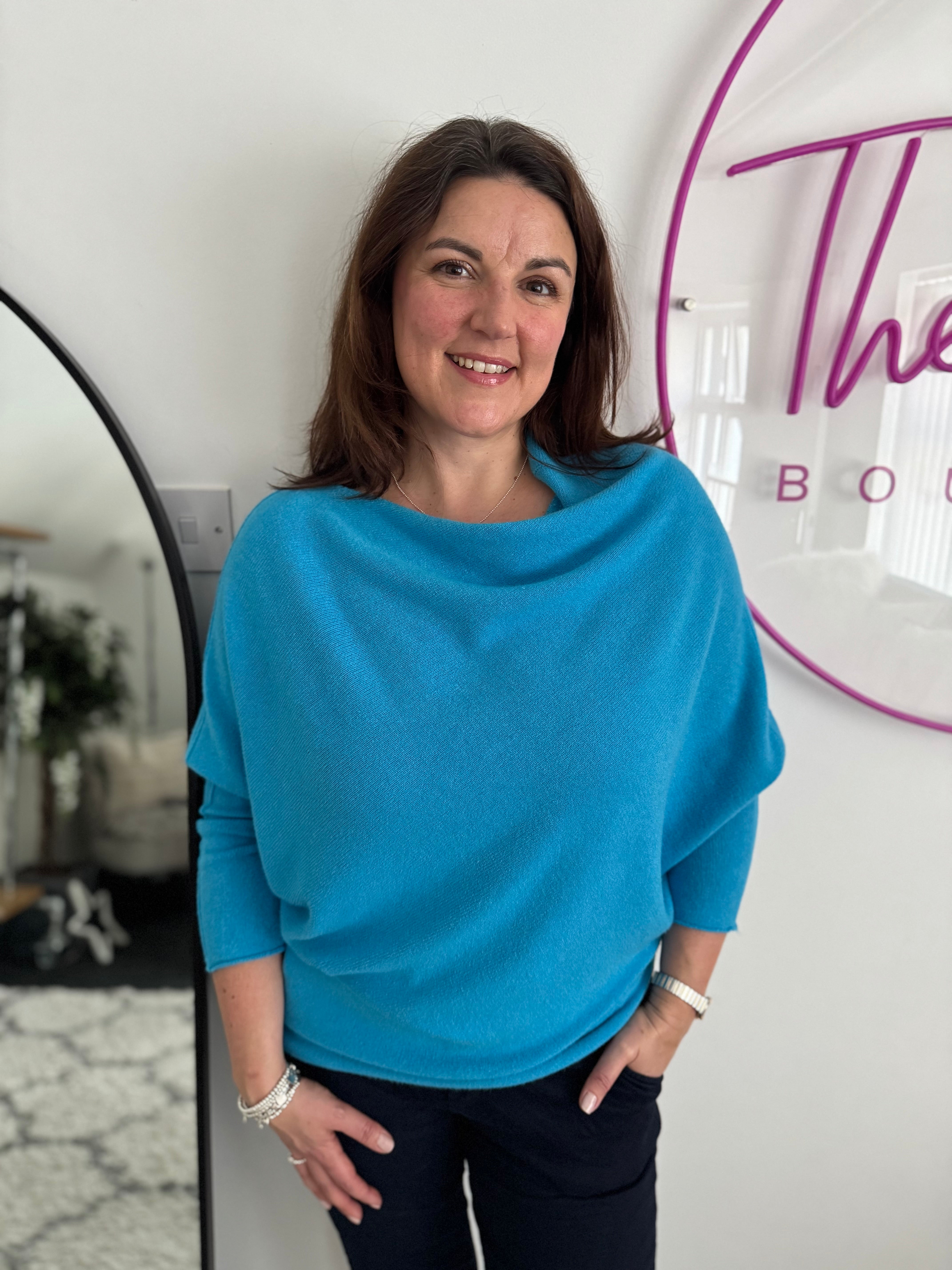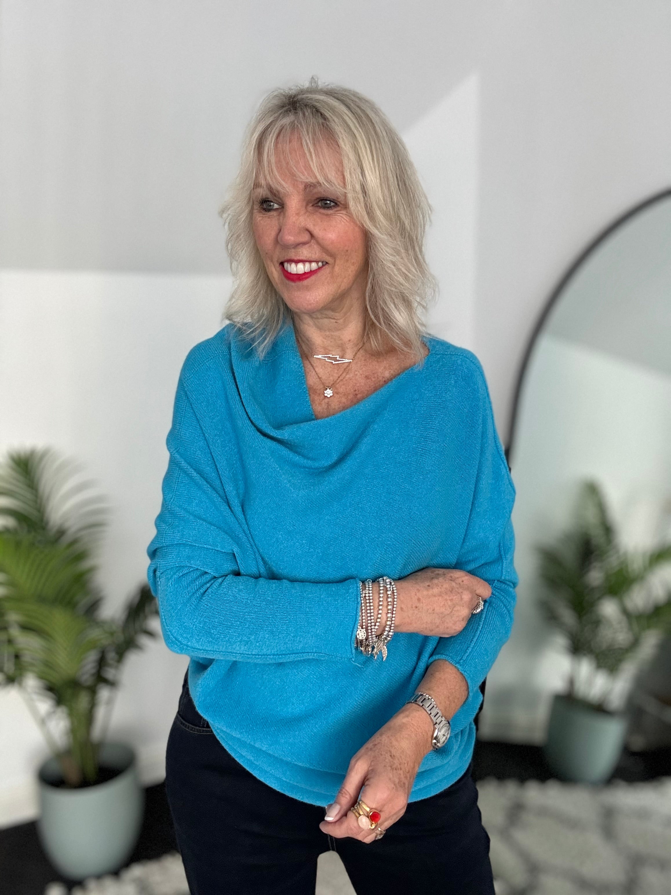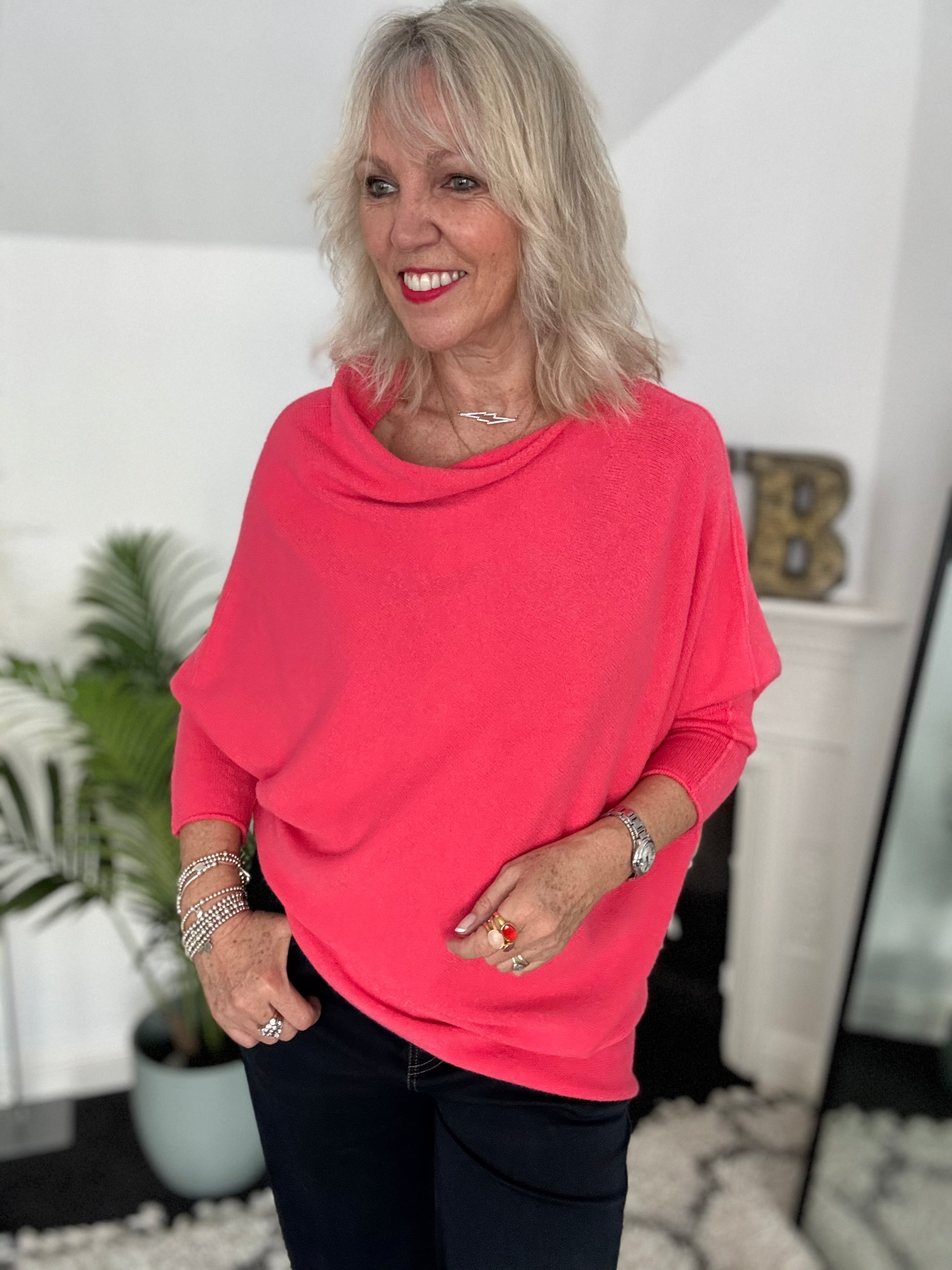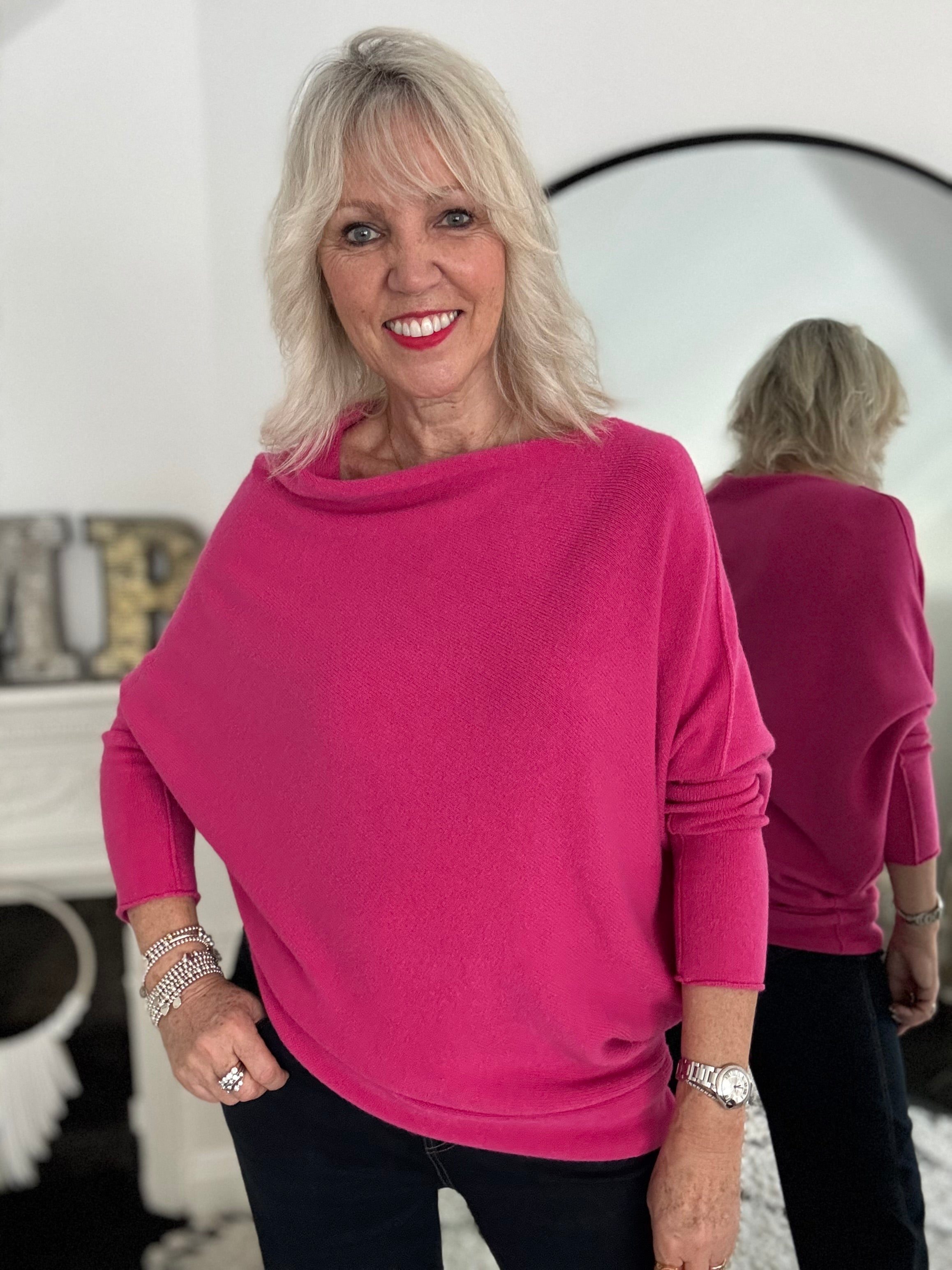 Cowl Neck Asymmetric Jumper in Fuchsia