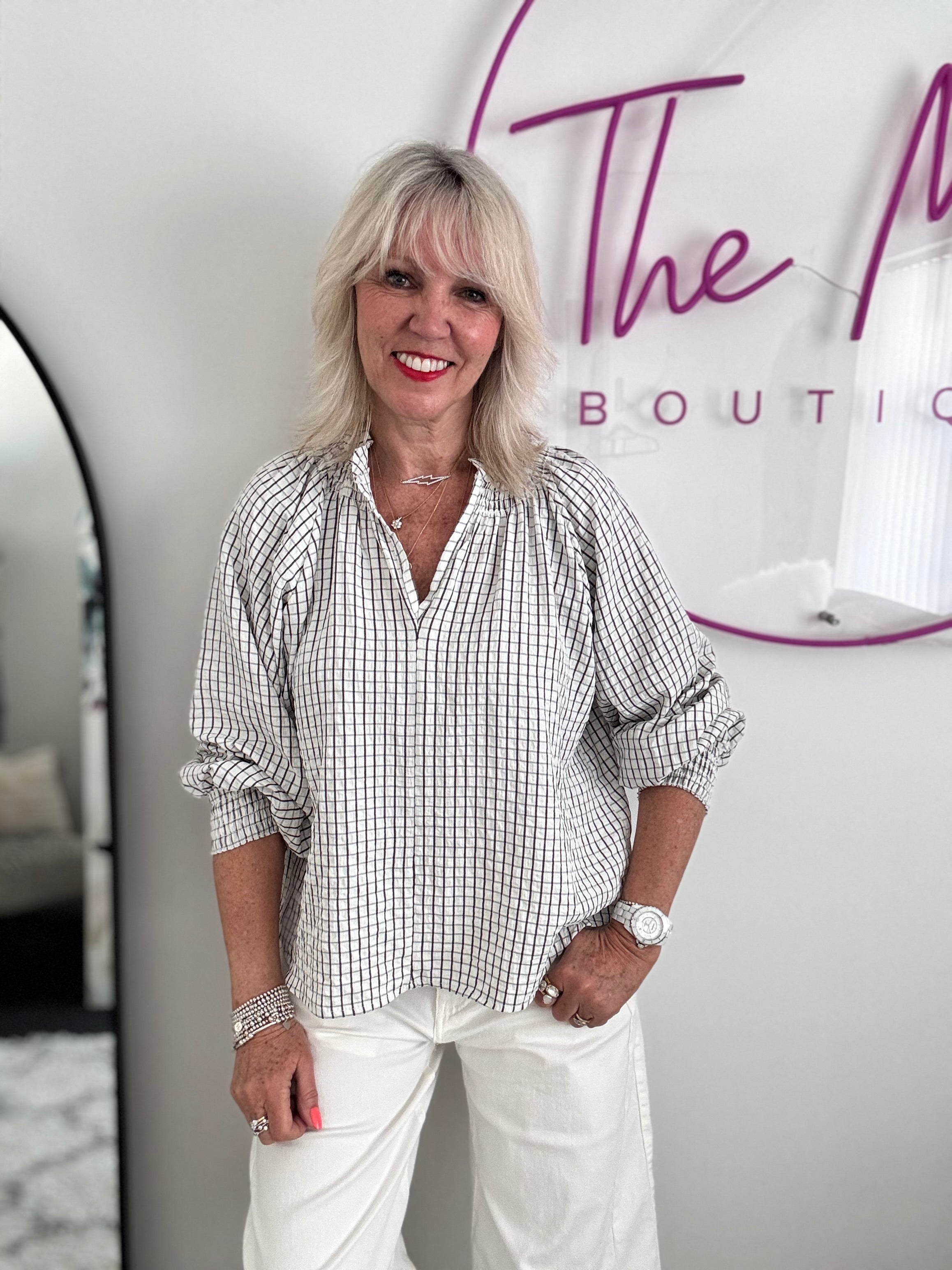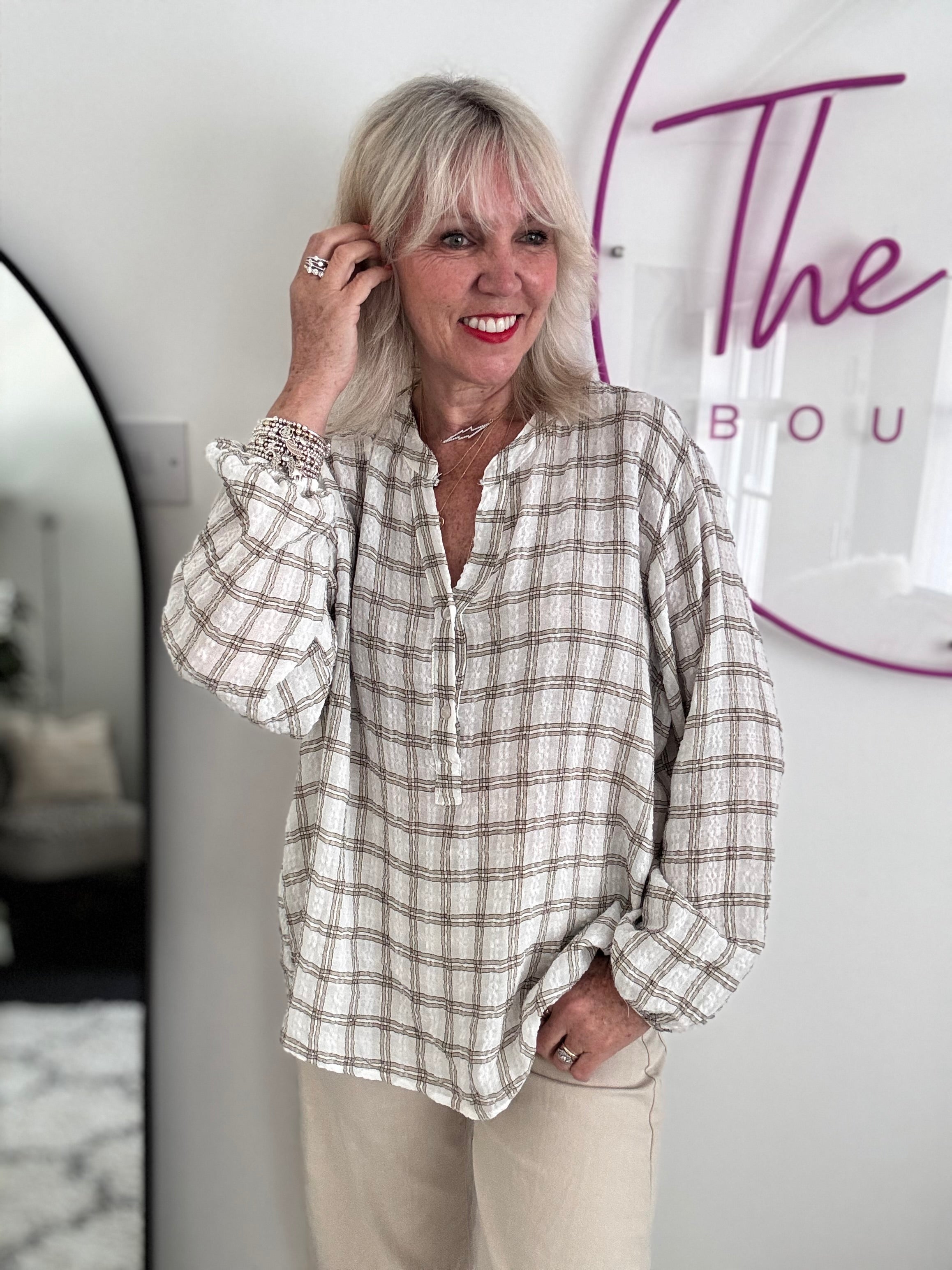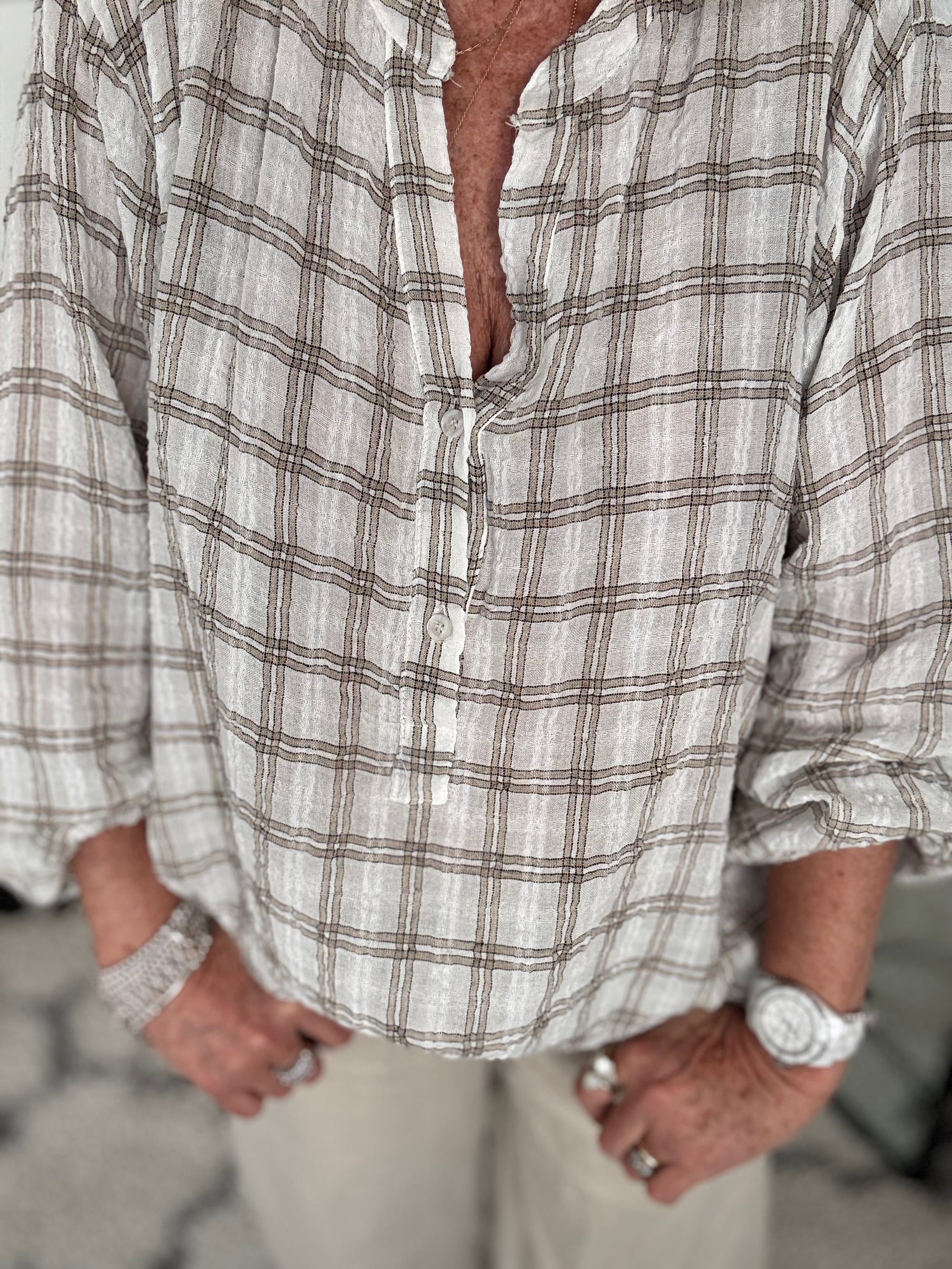 Checked Blouse in Ivory