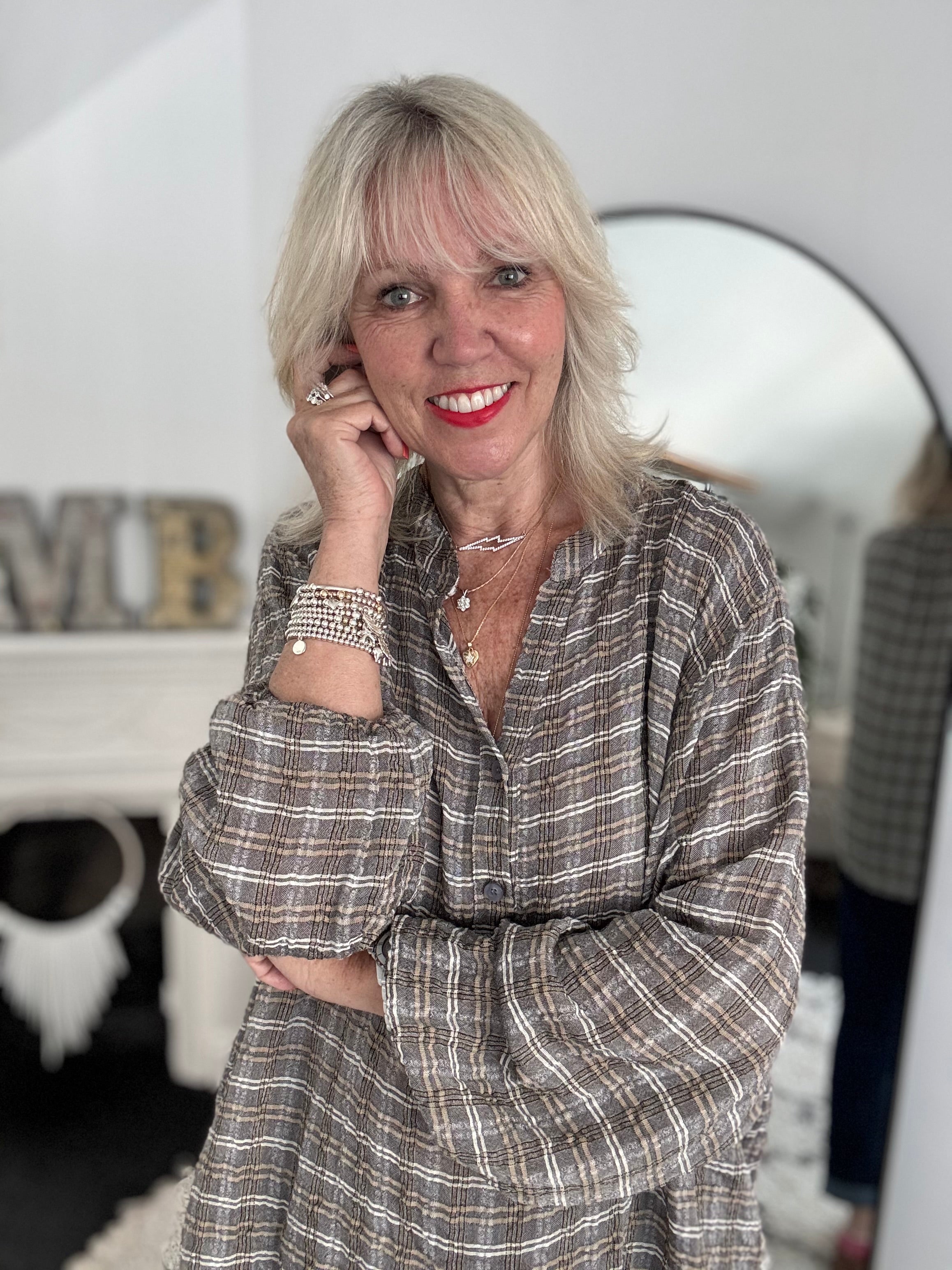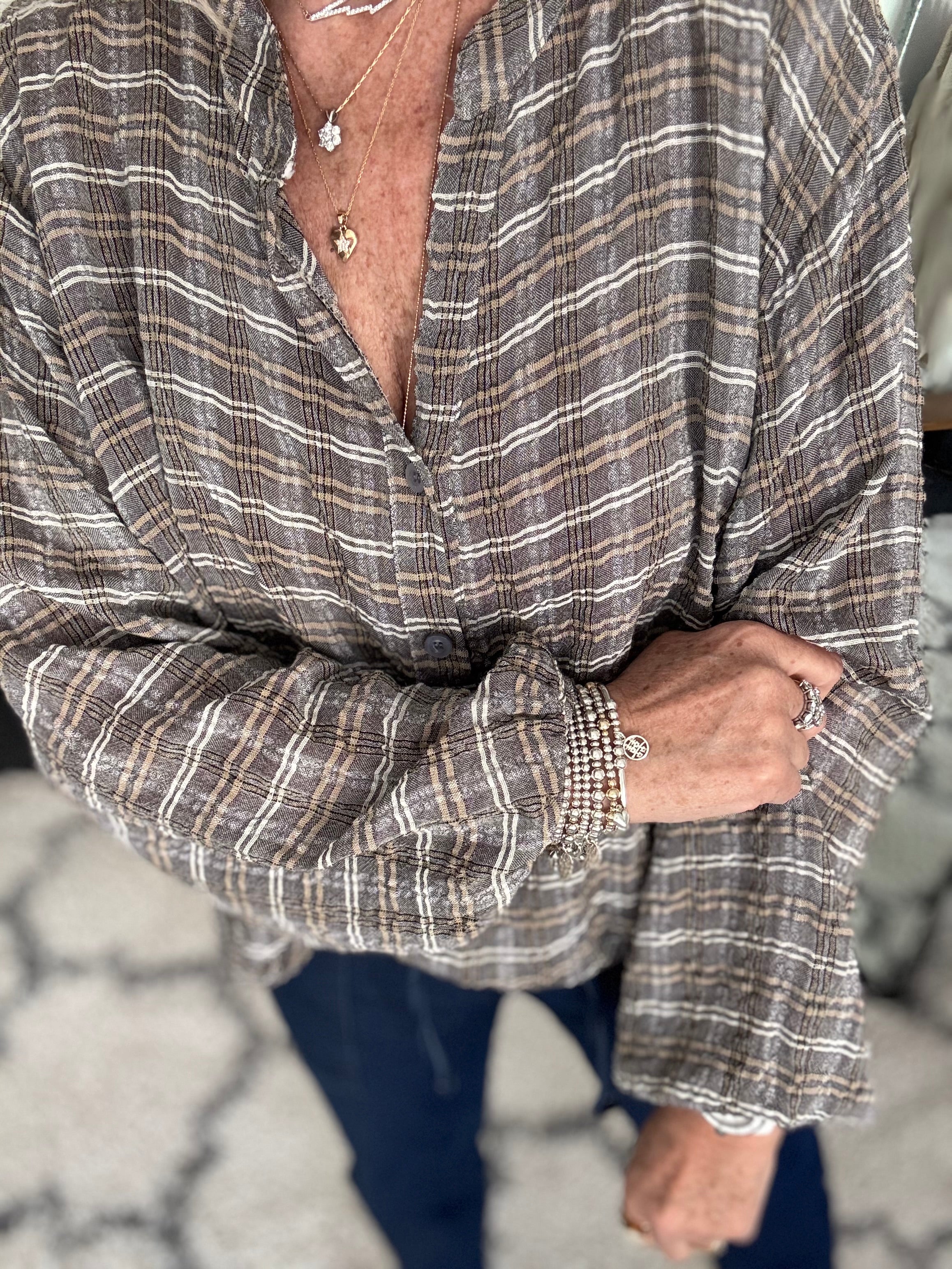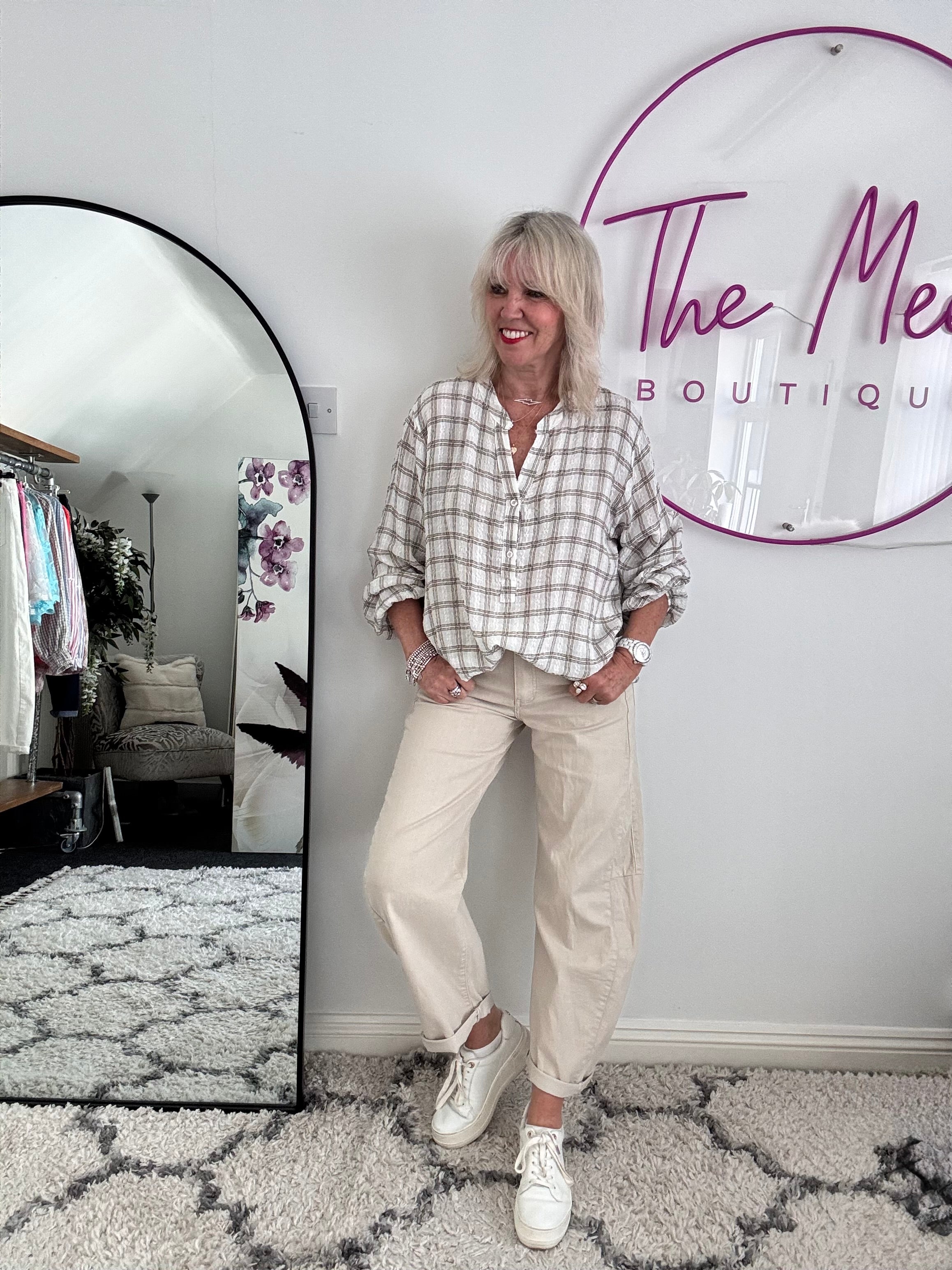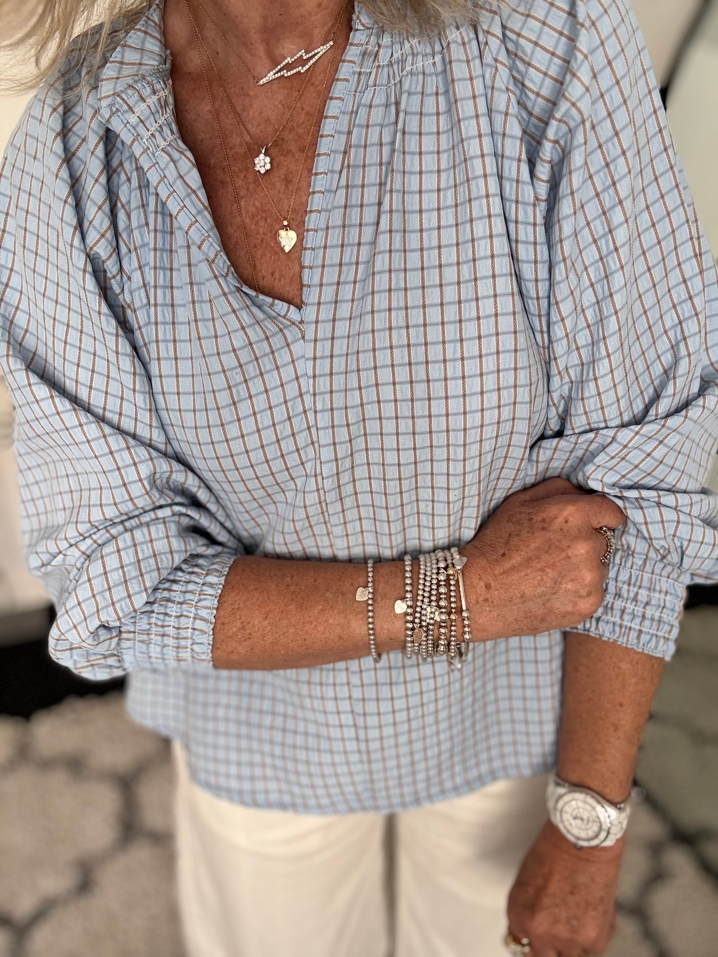 Checked Blouse in Ivory