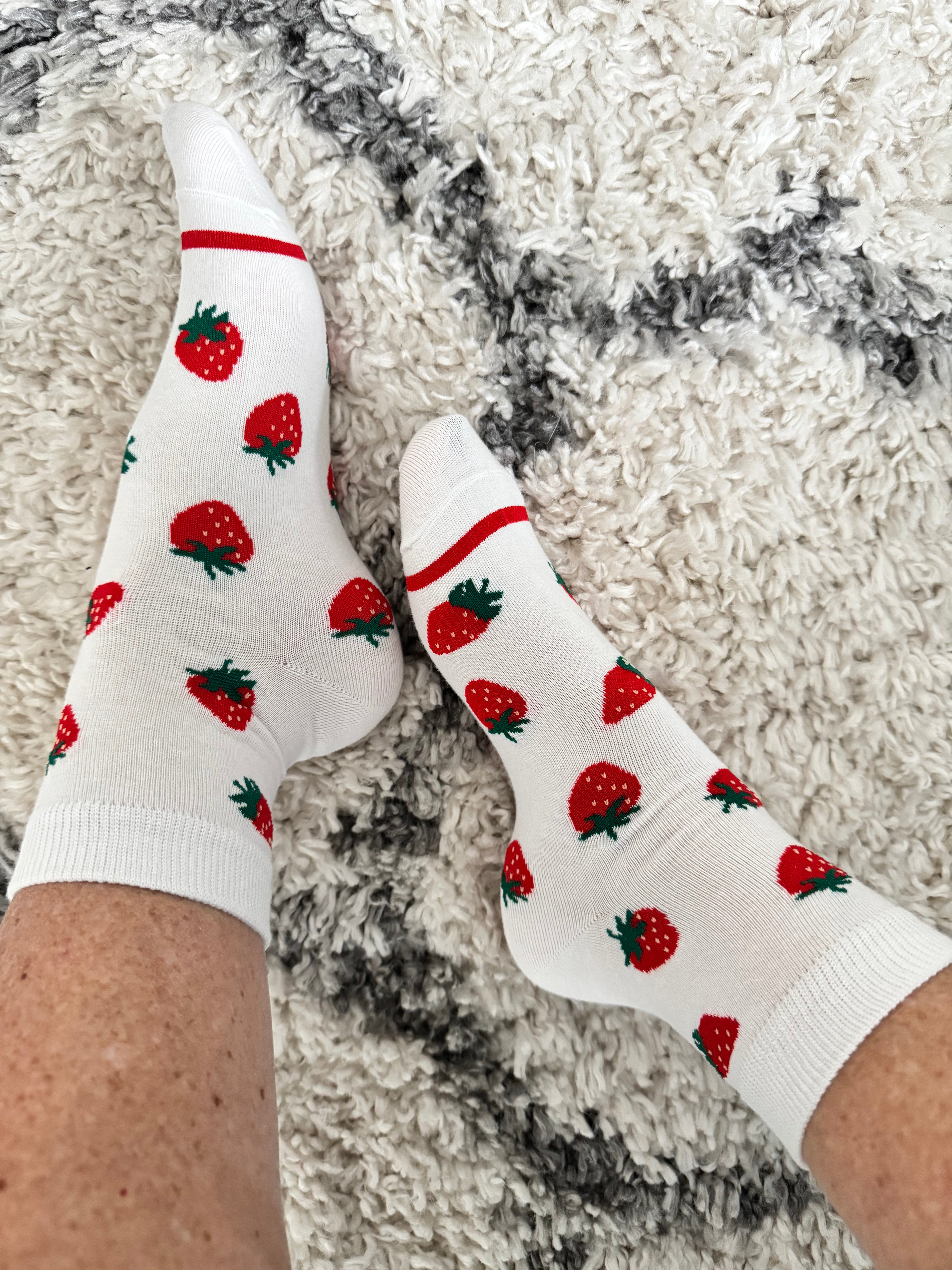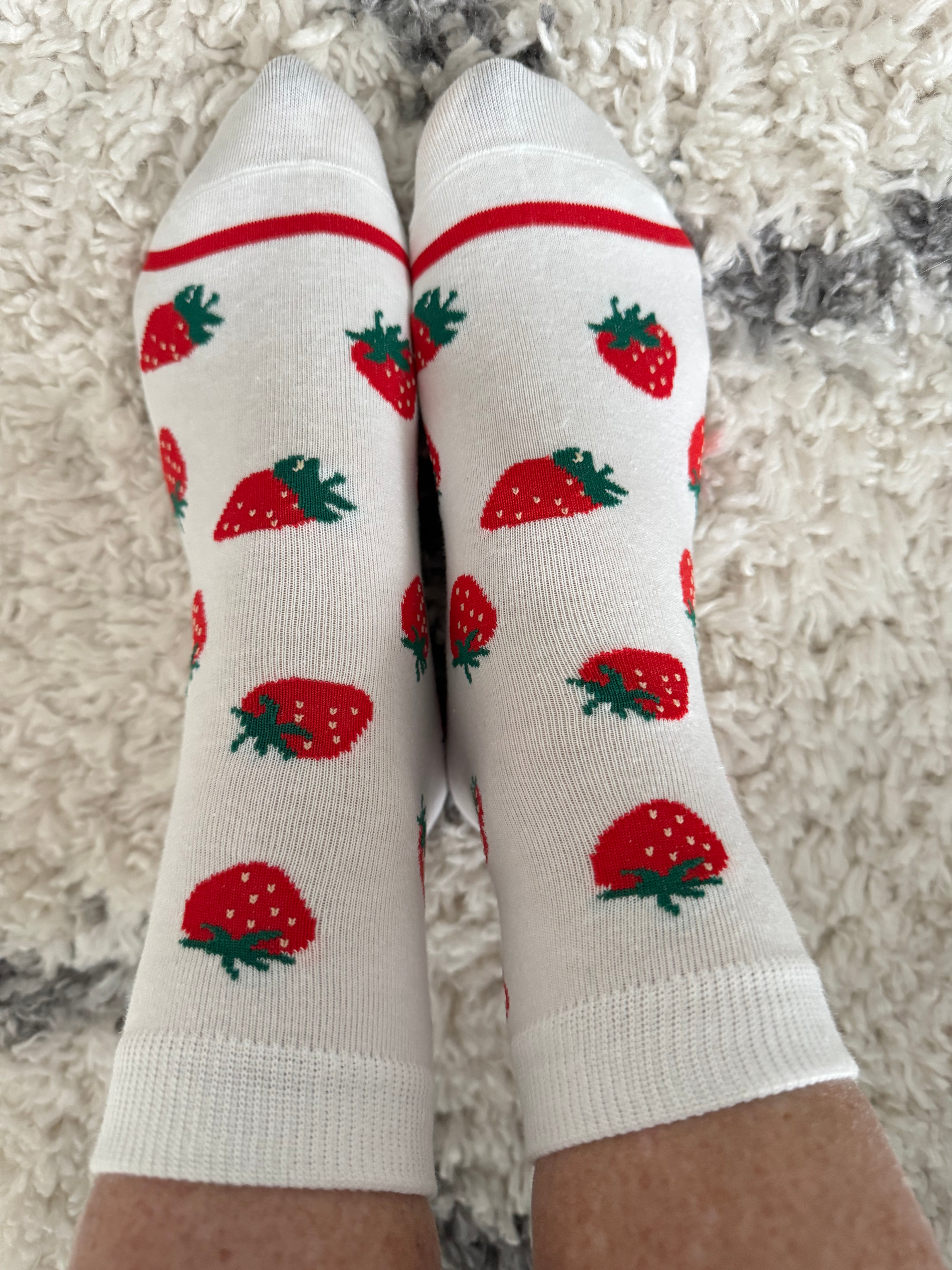 Cotton Socks with Strawberry Print in Red & White