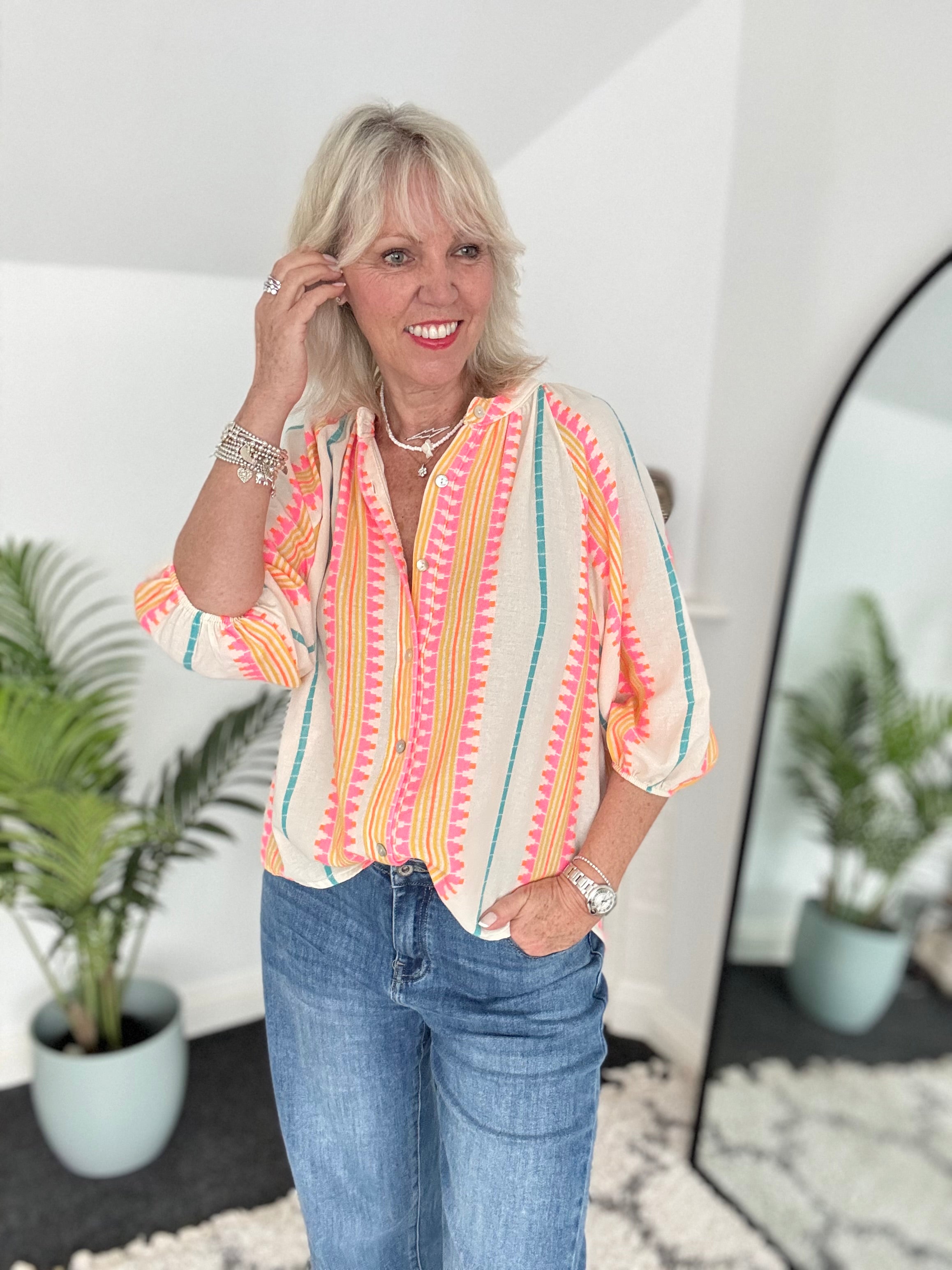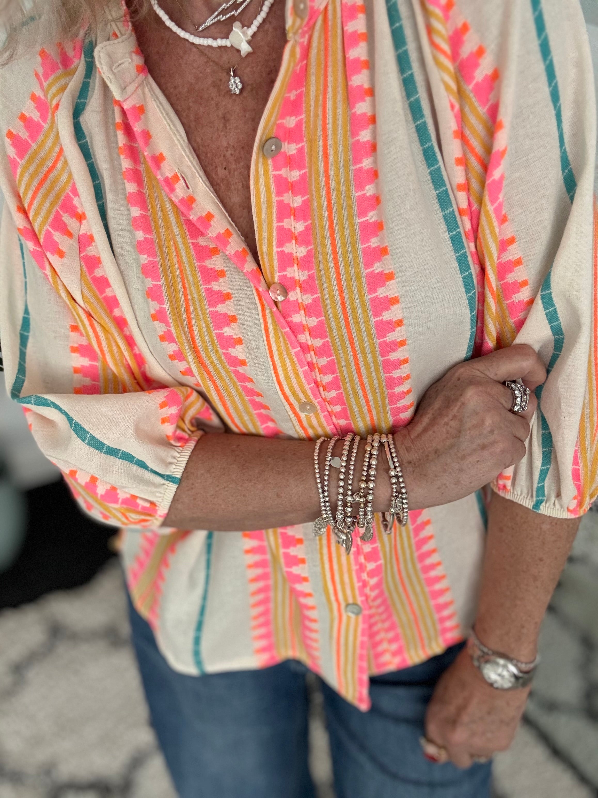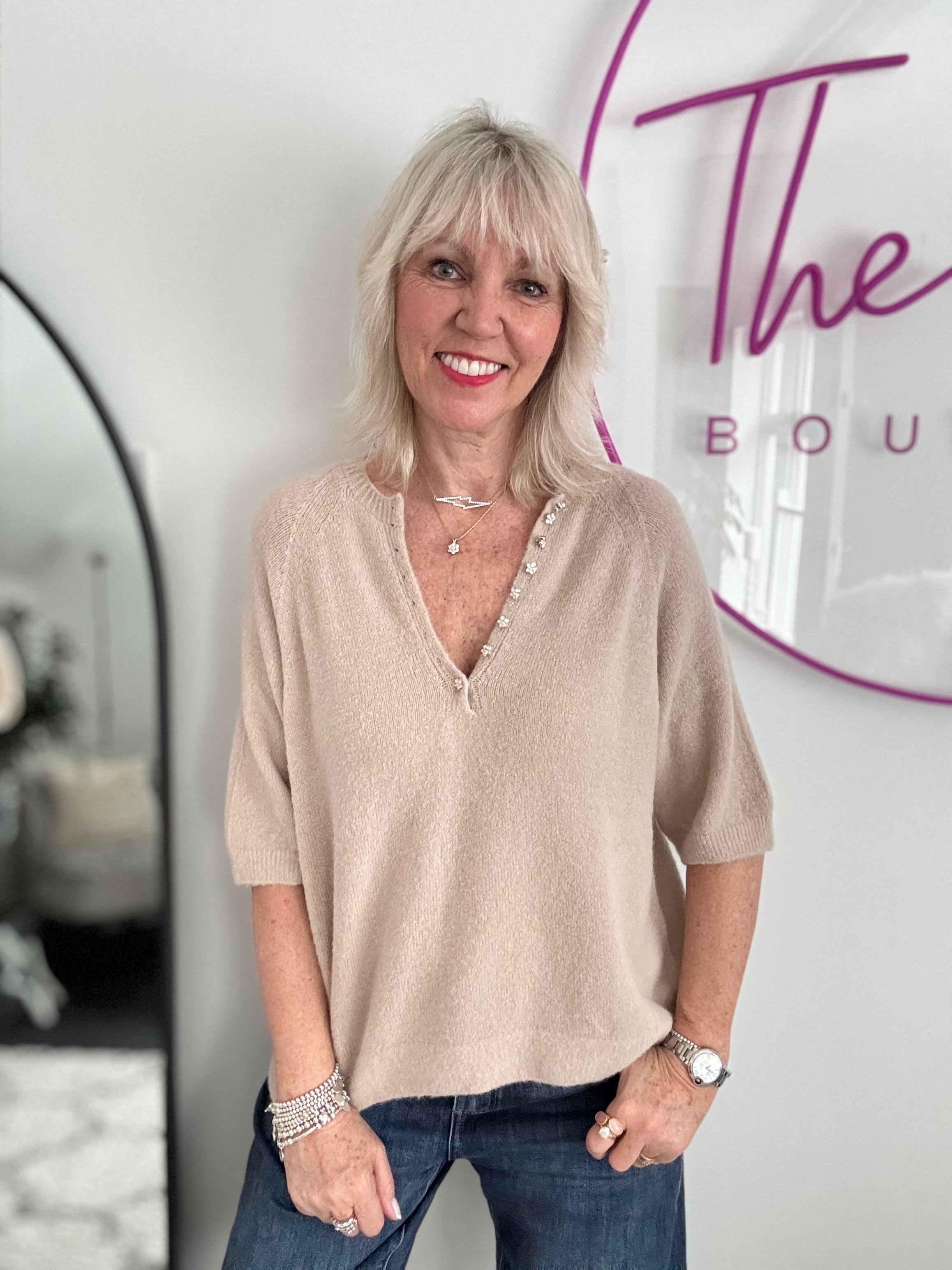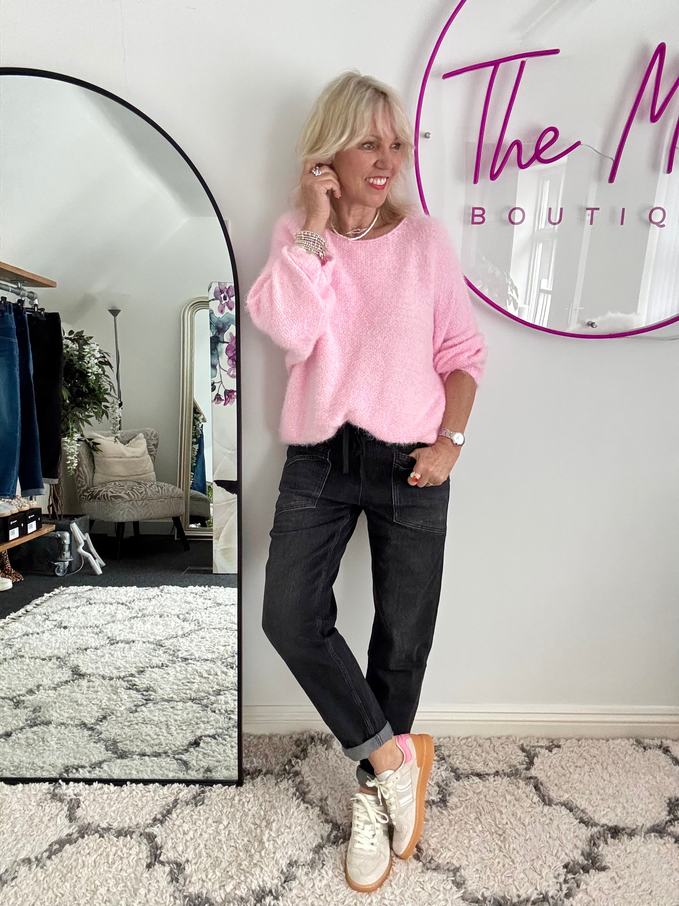 Flower Button Neck Alpaca Jumper in Neon Pink