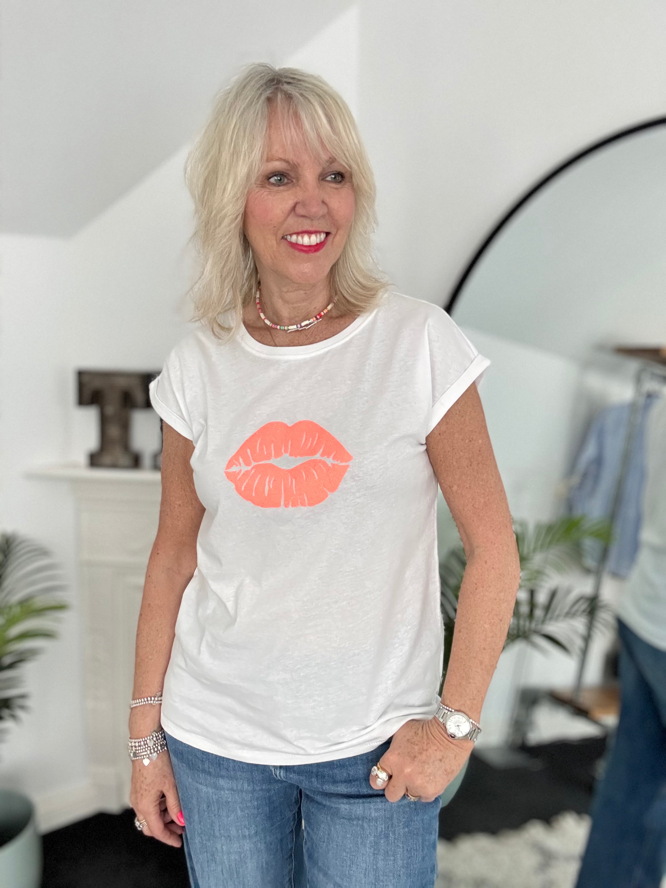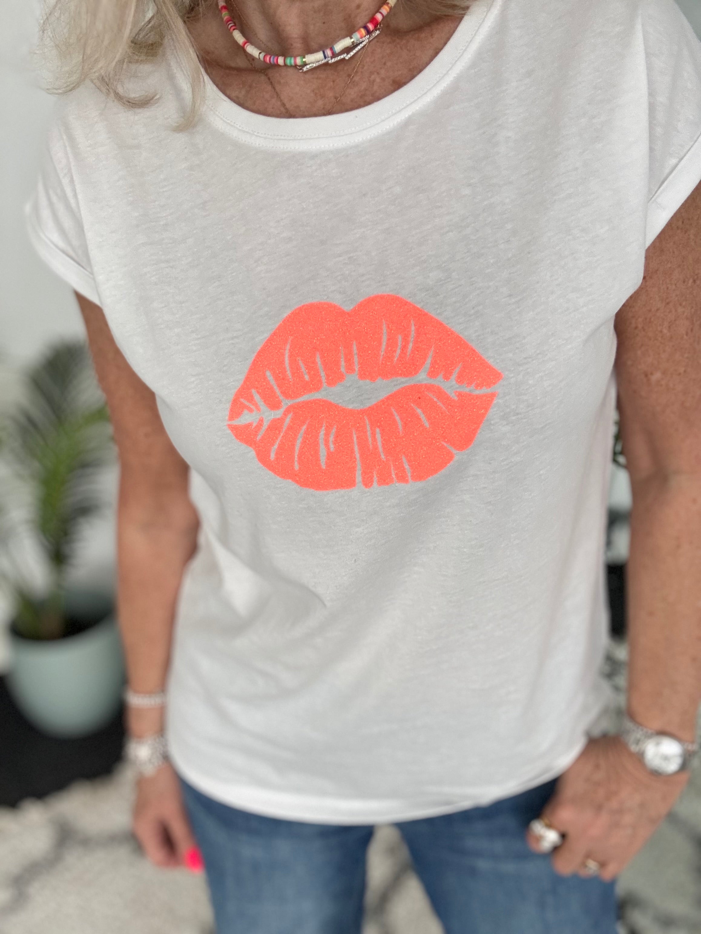 Lips Tee in White & Neon