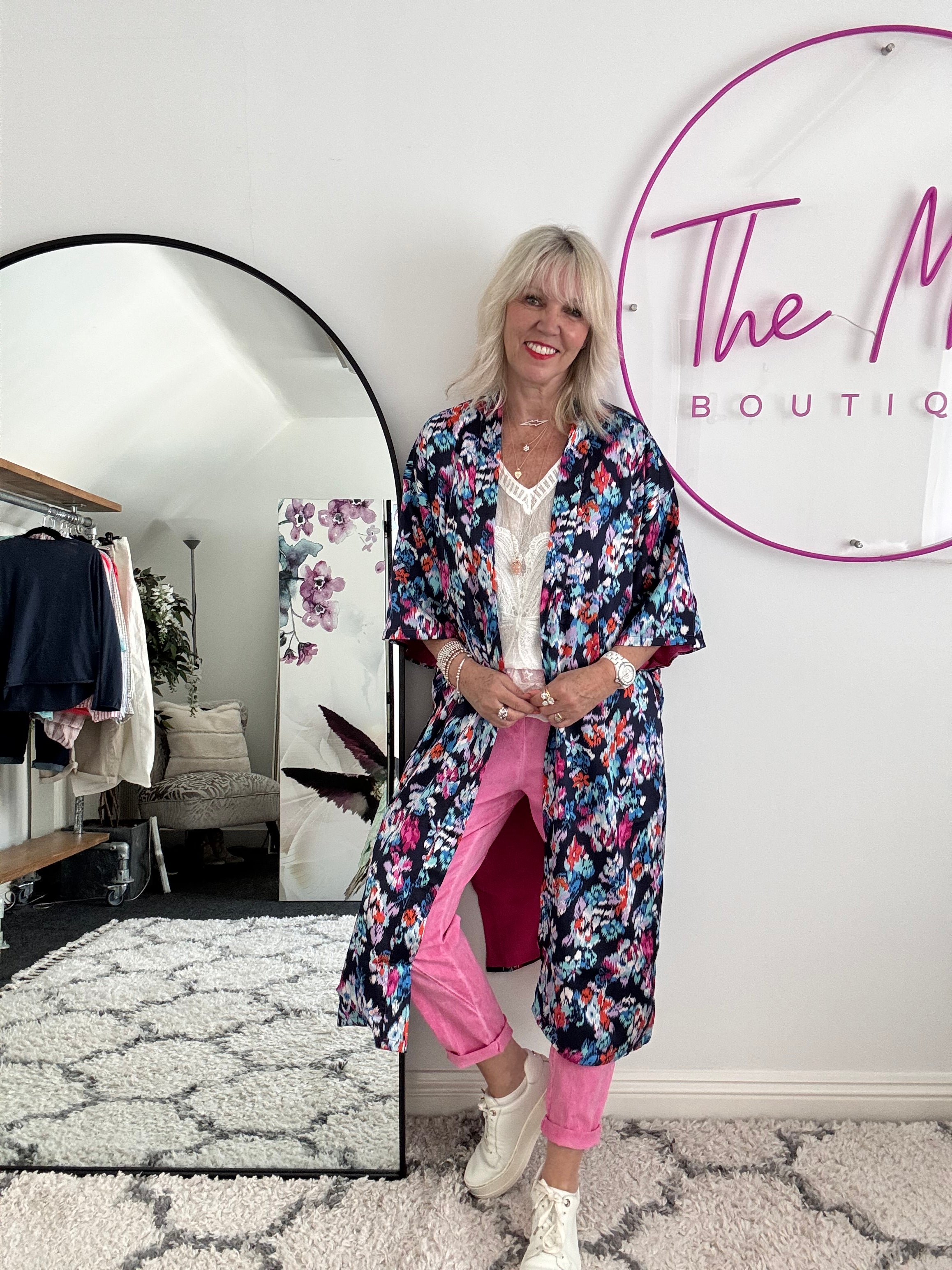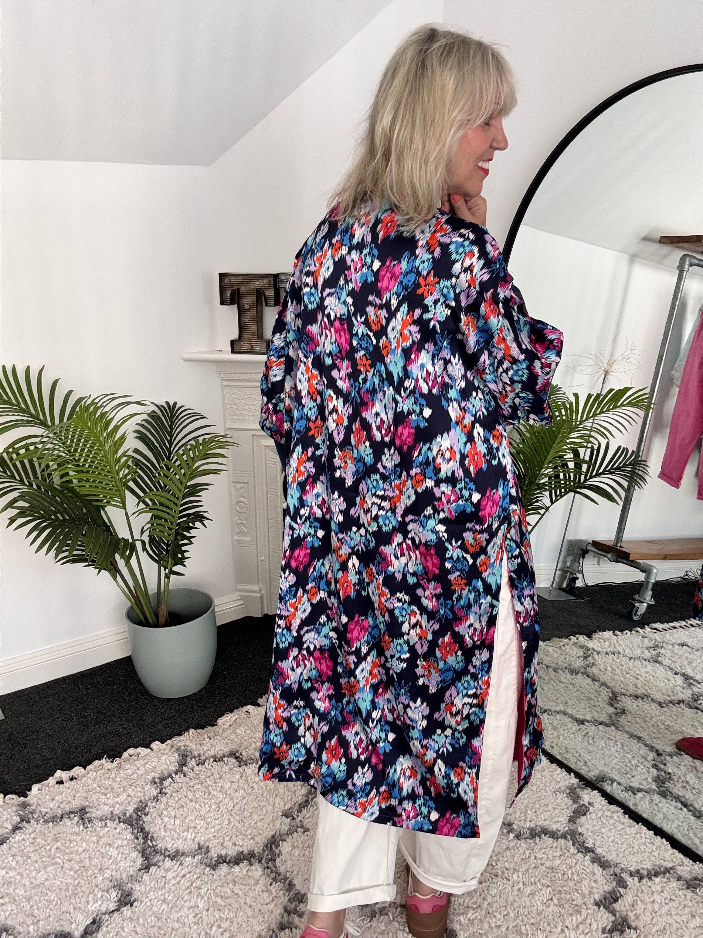 Silky Long Kimono in Blues & Pinks