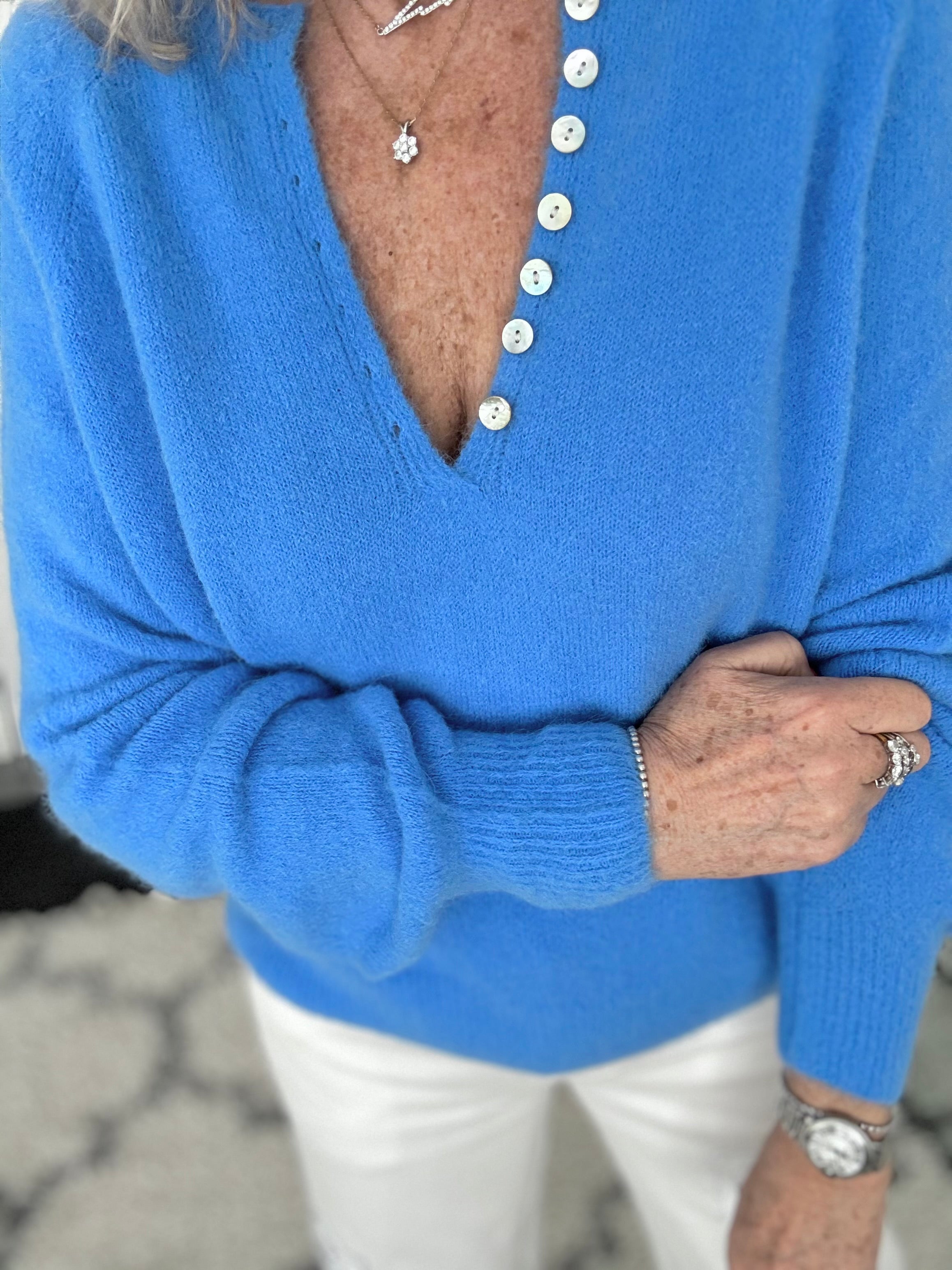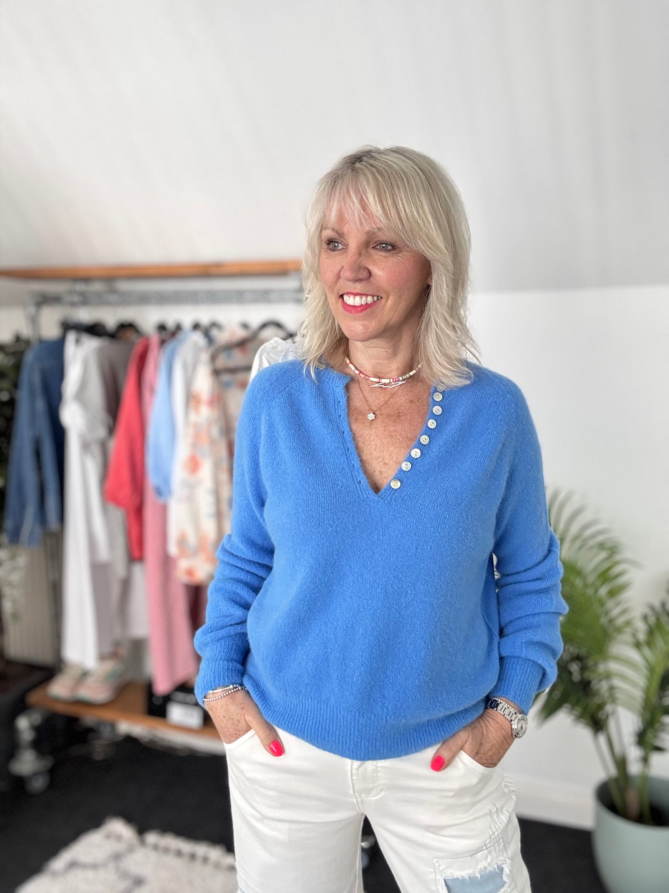 Softie Jumper with Button Neck in Cornflower