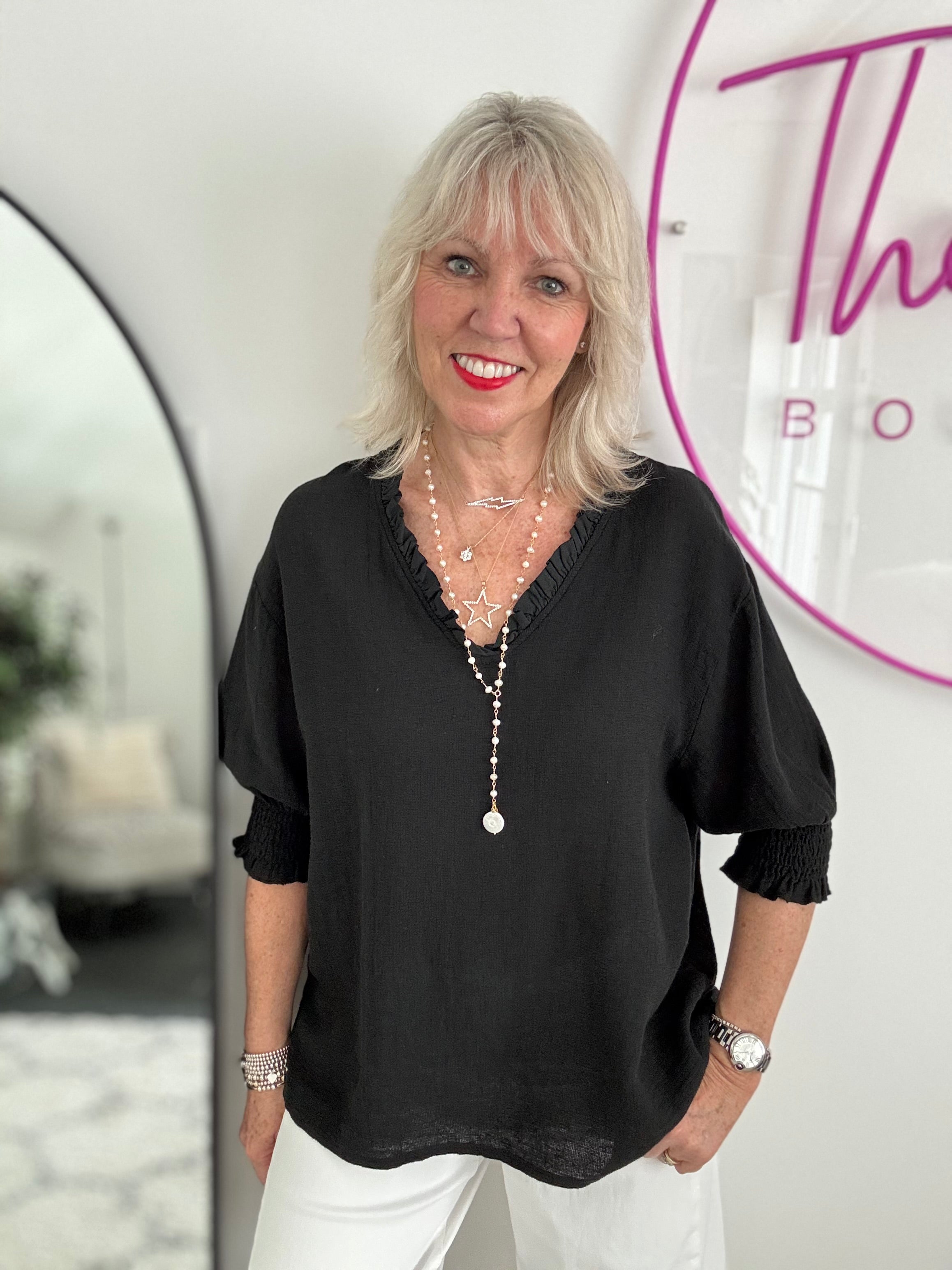 Linen & Cotton Top in Black