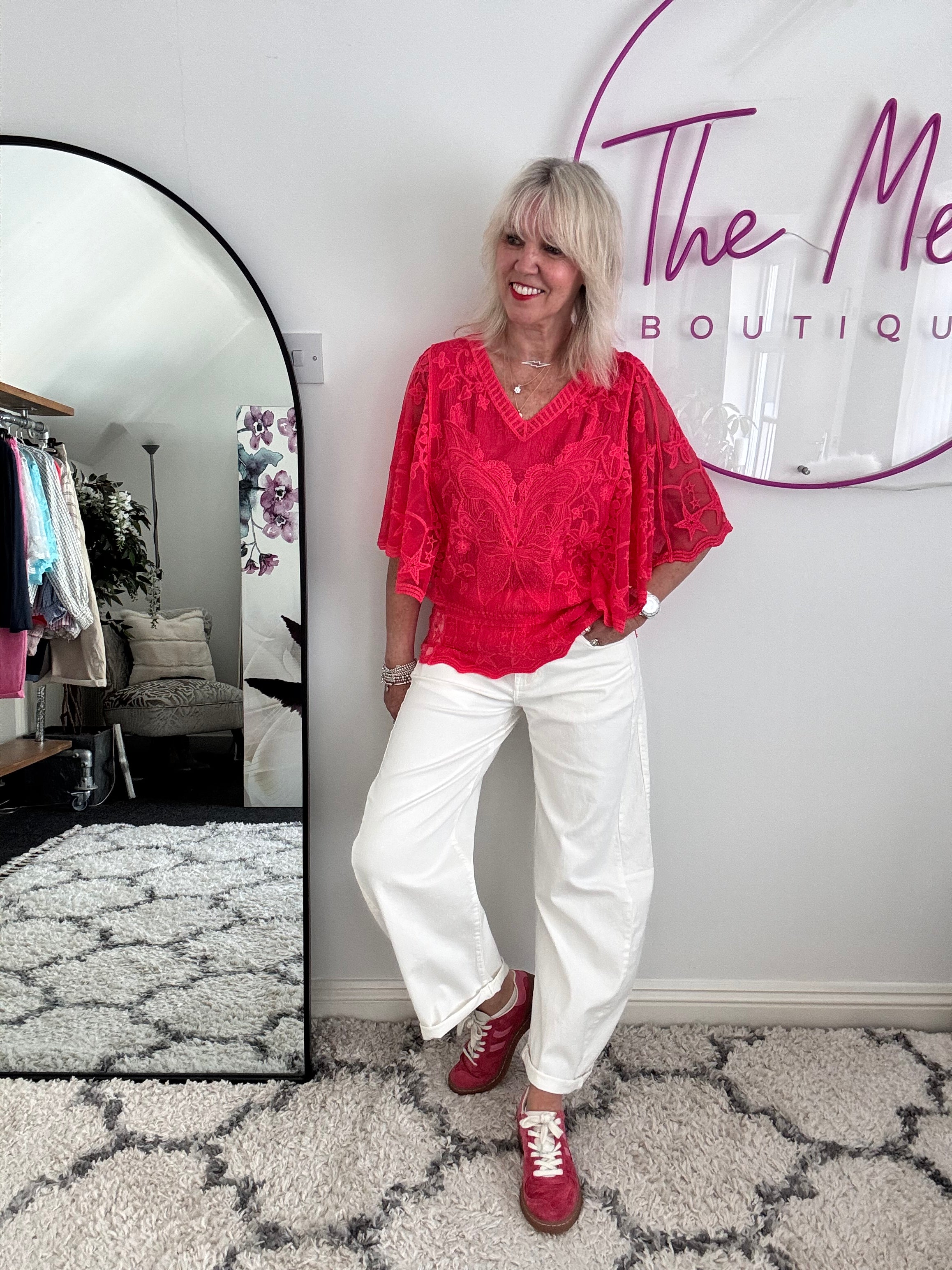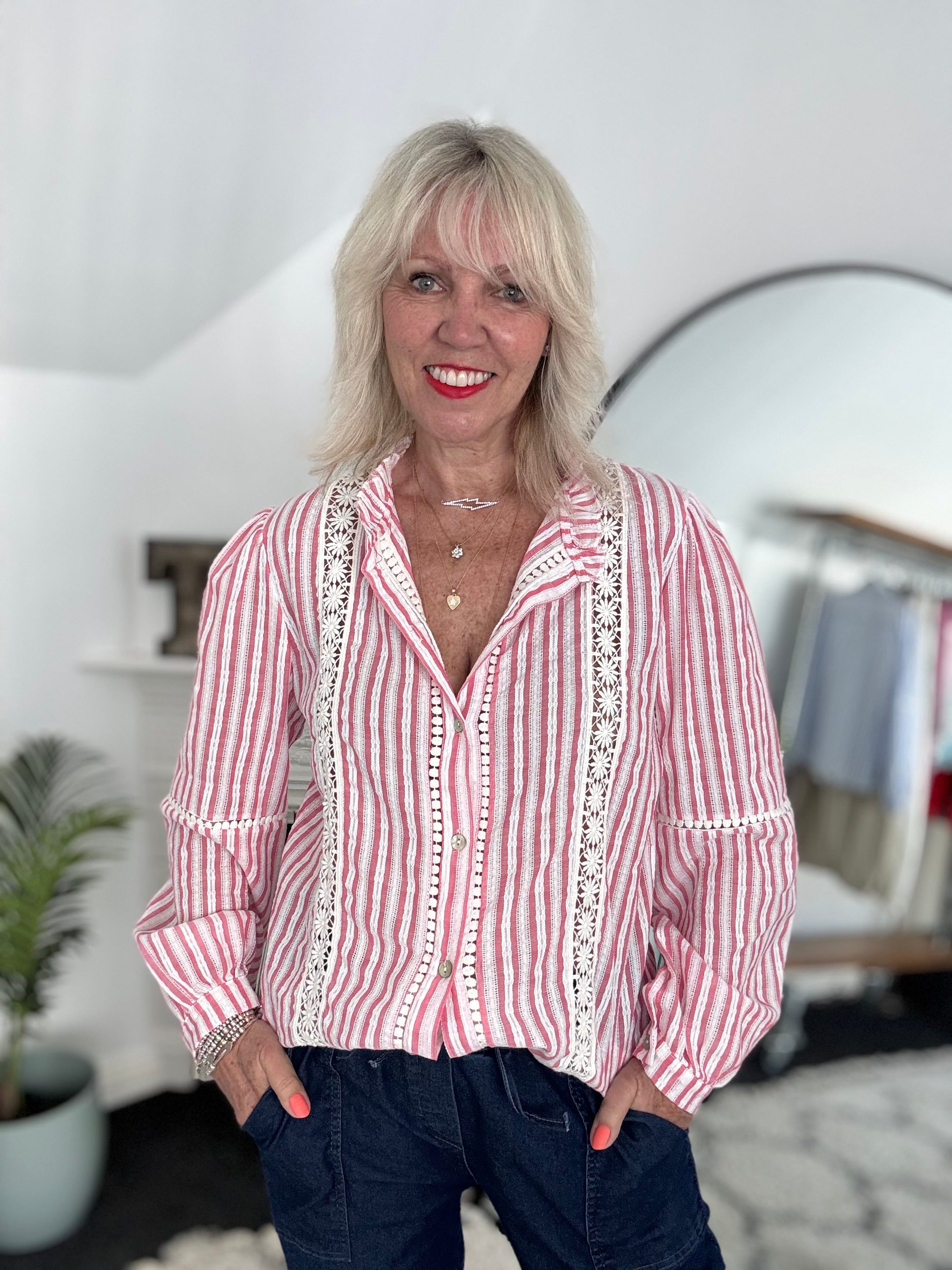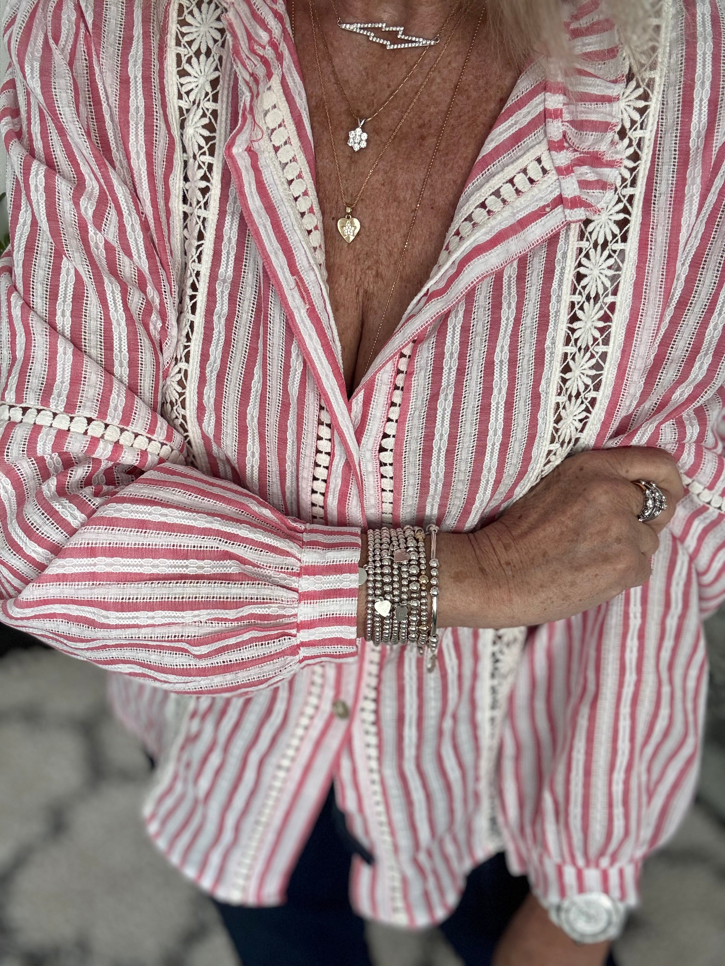 Cotton & Lace Shirt in Coral Pink & White