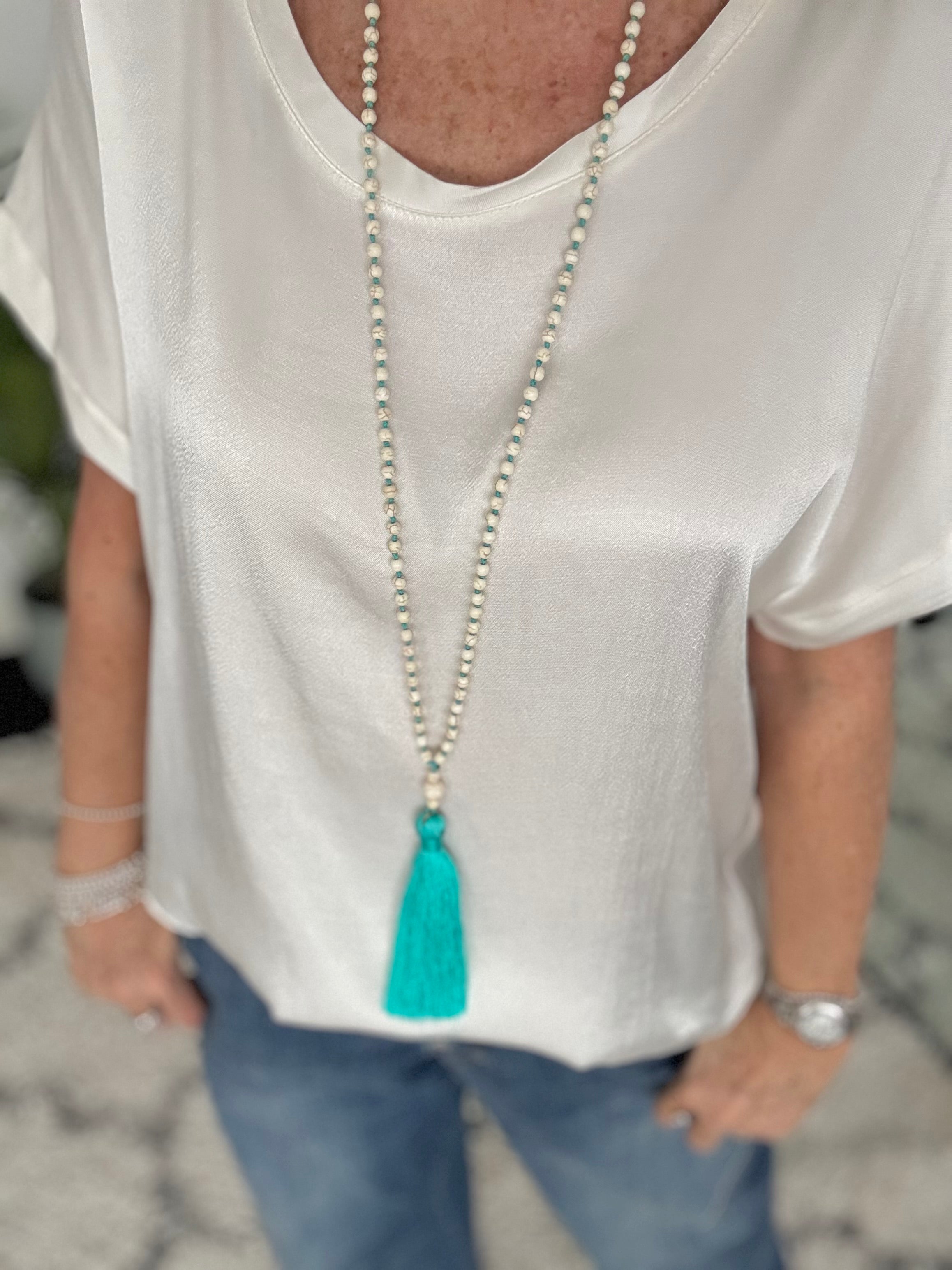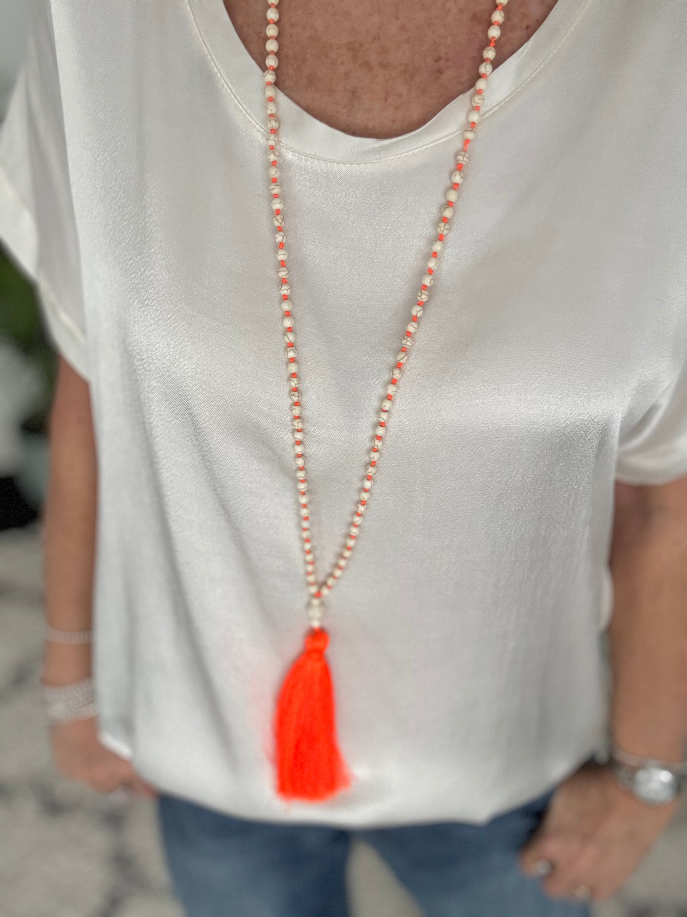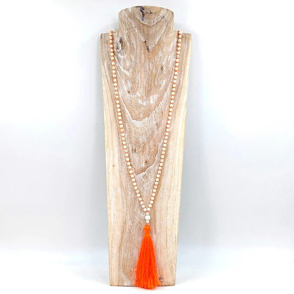 Bead Necklace with Neon Tassel