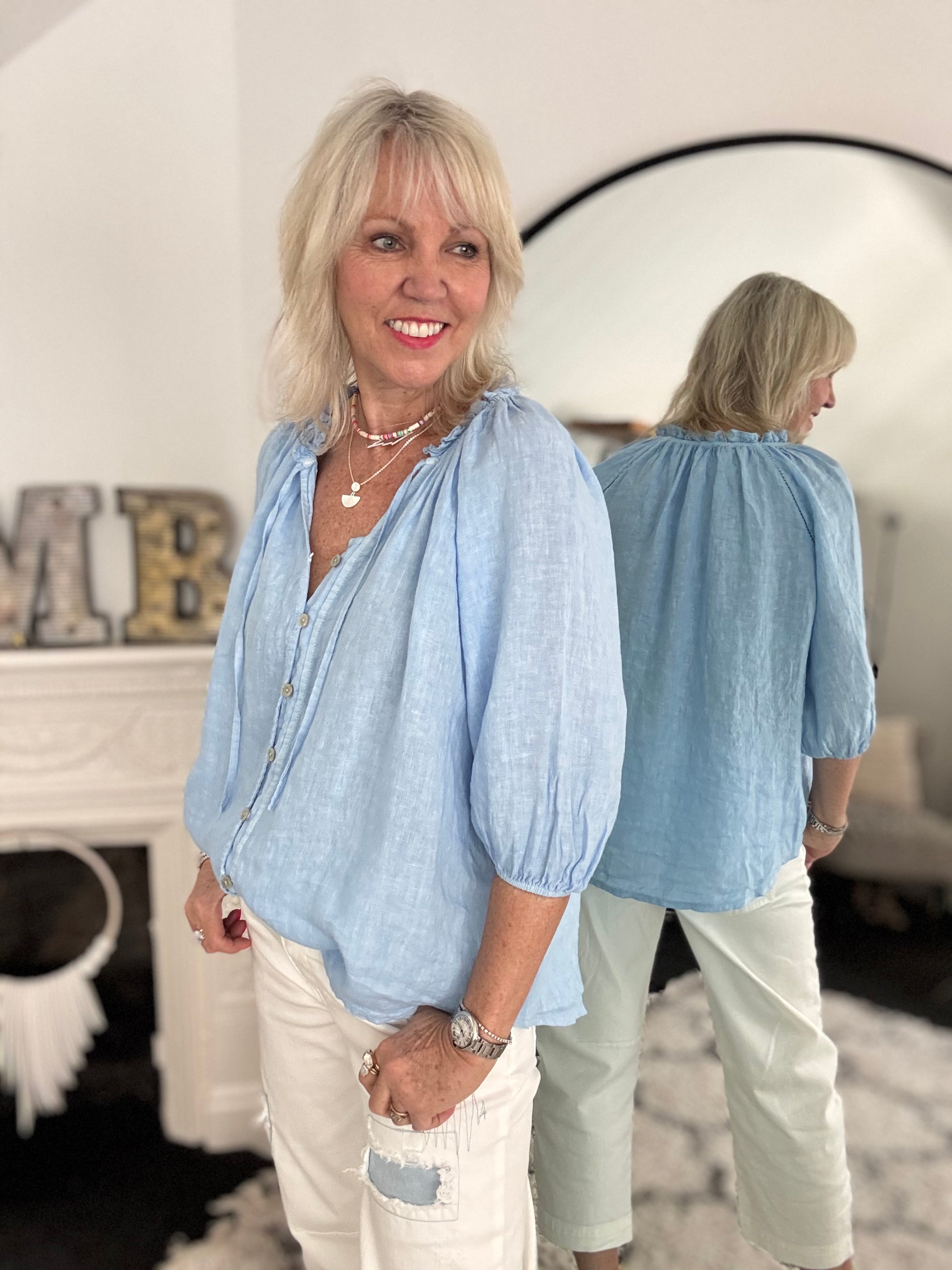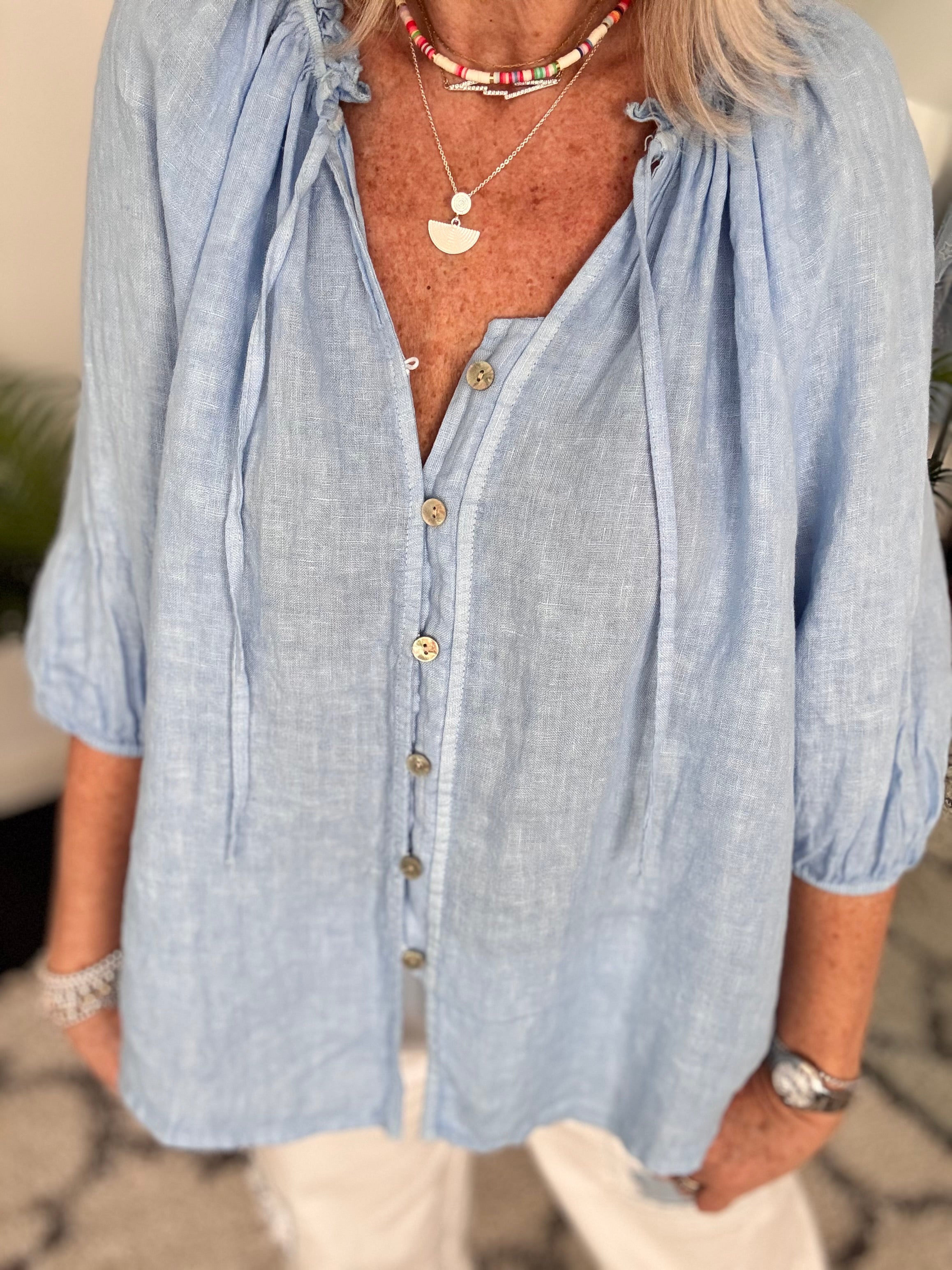 Pure Linen Designer Blouse in Sky Blue