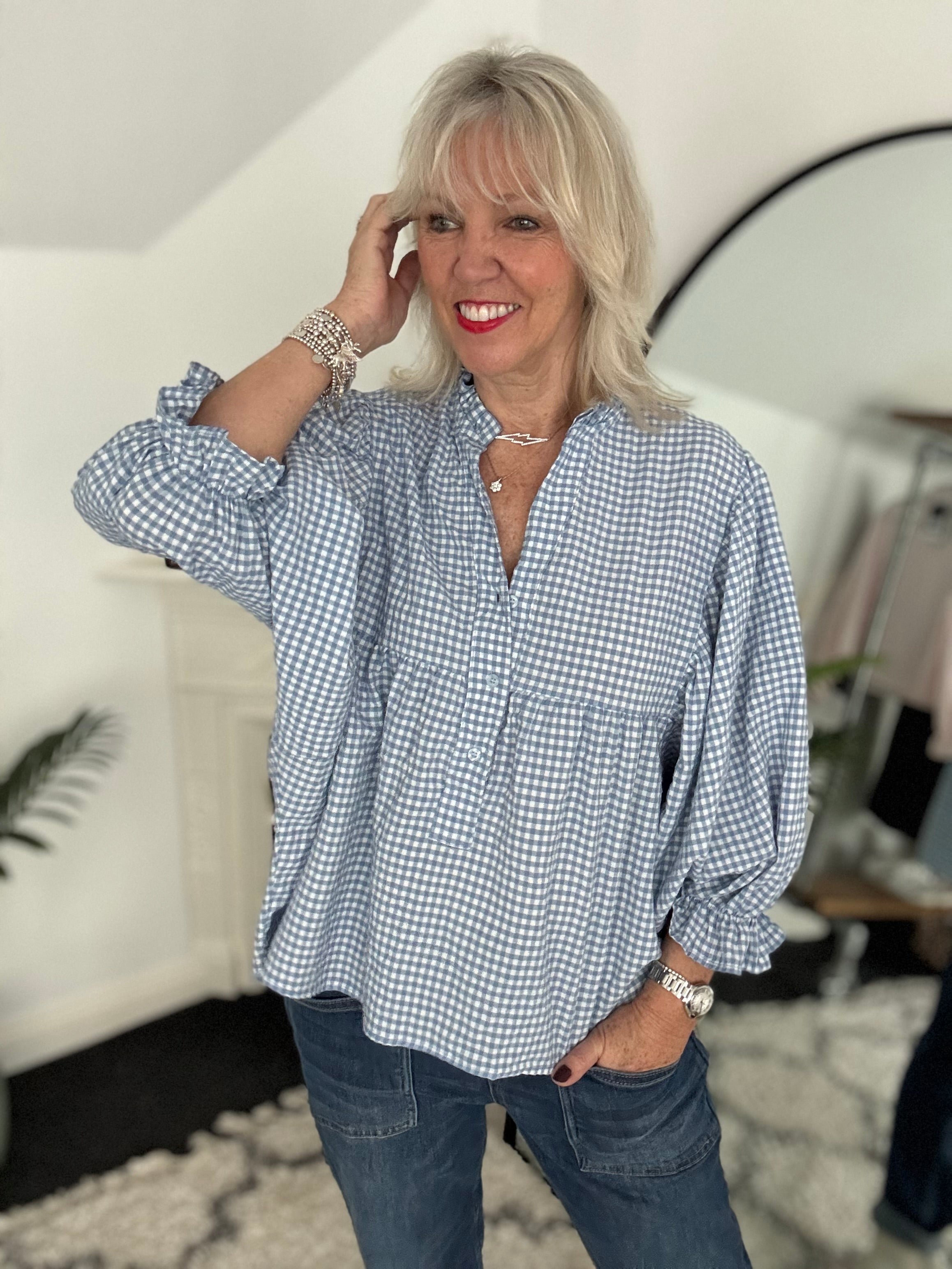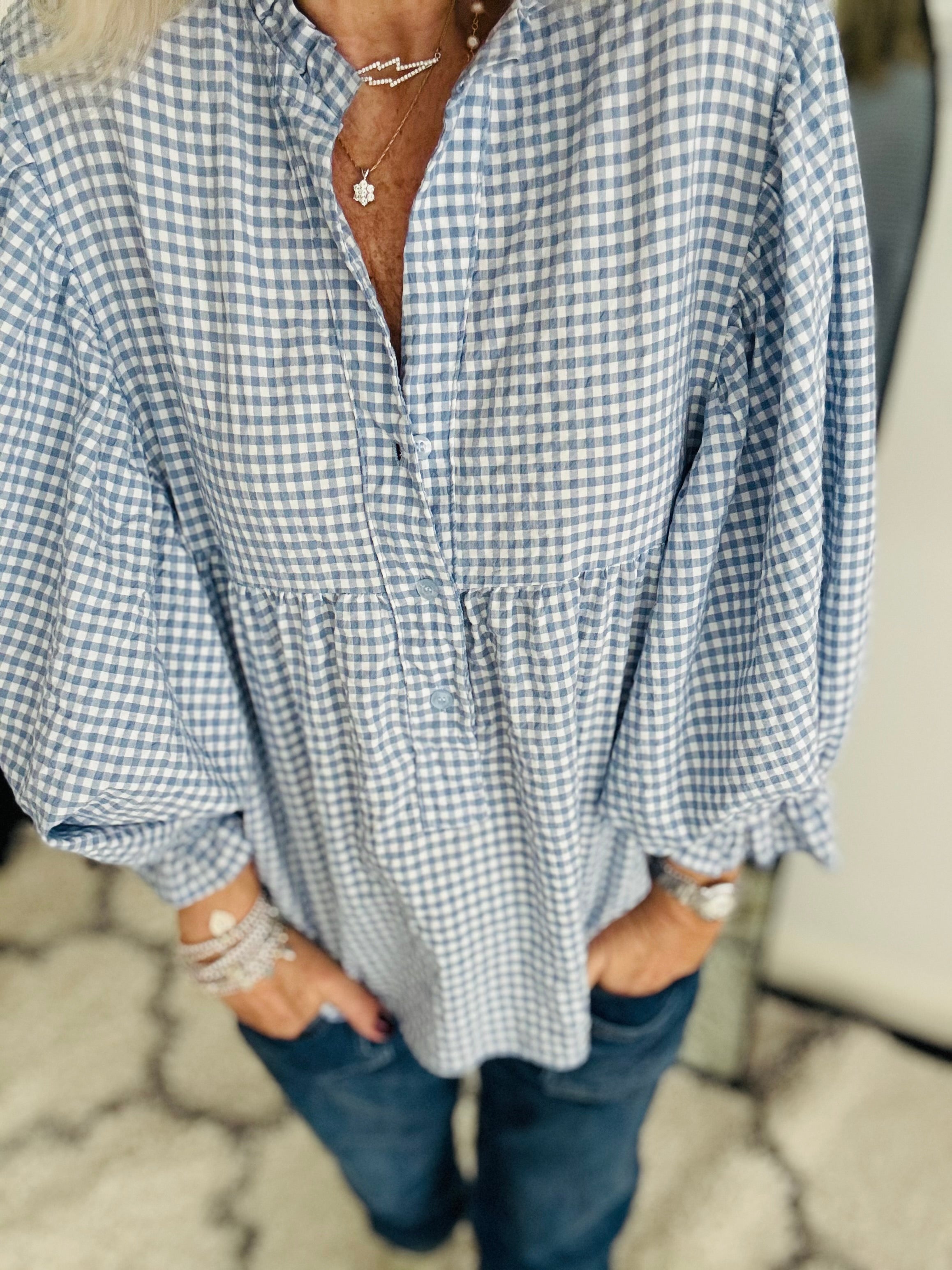Gingham Seersucker Blouse in Blue