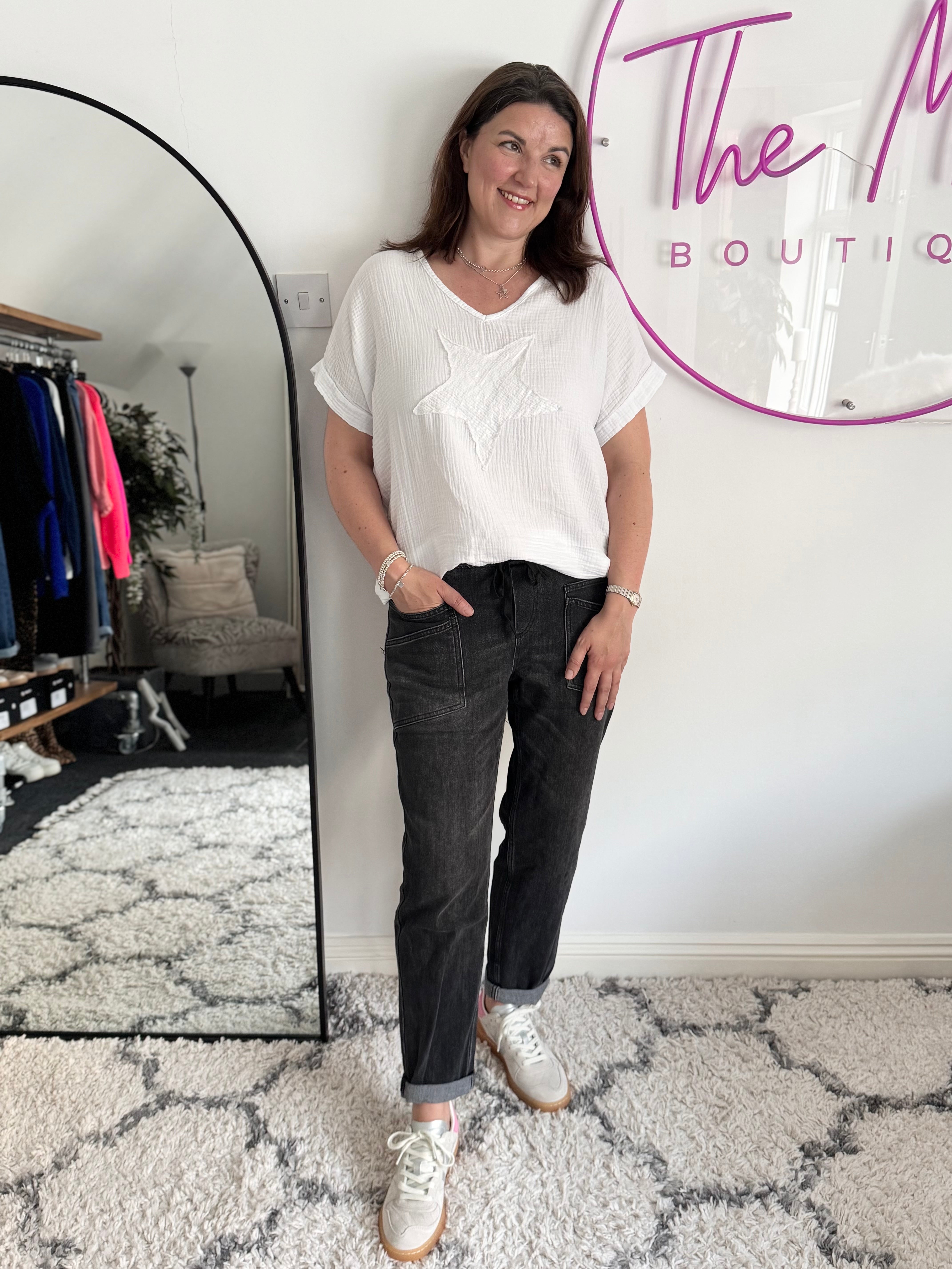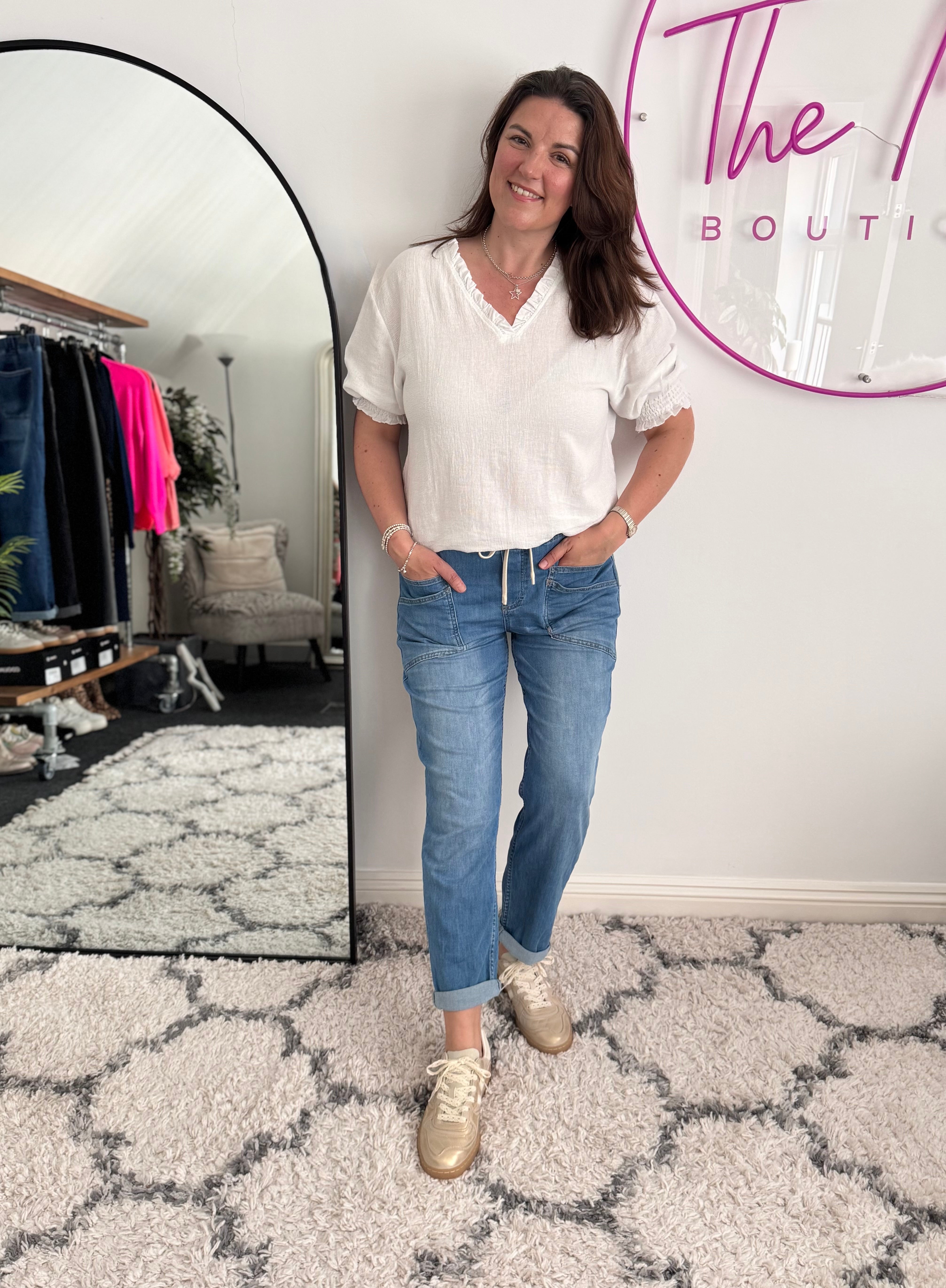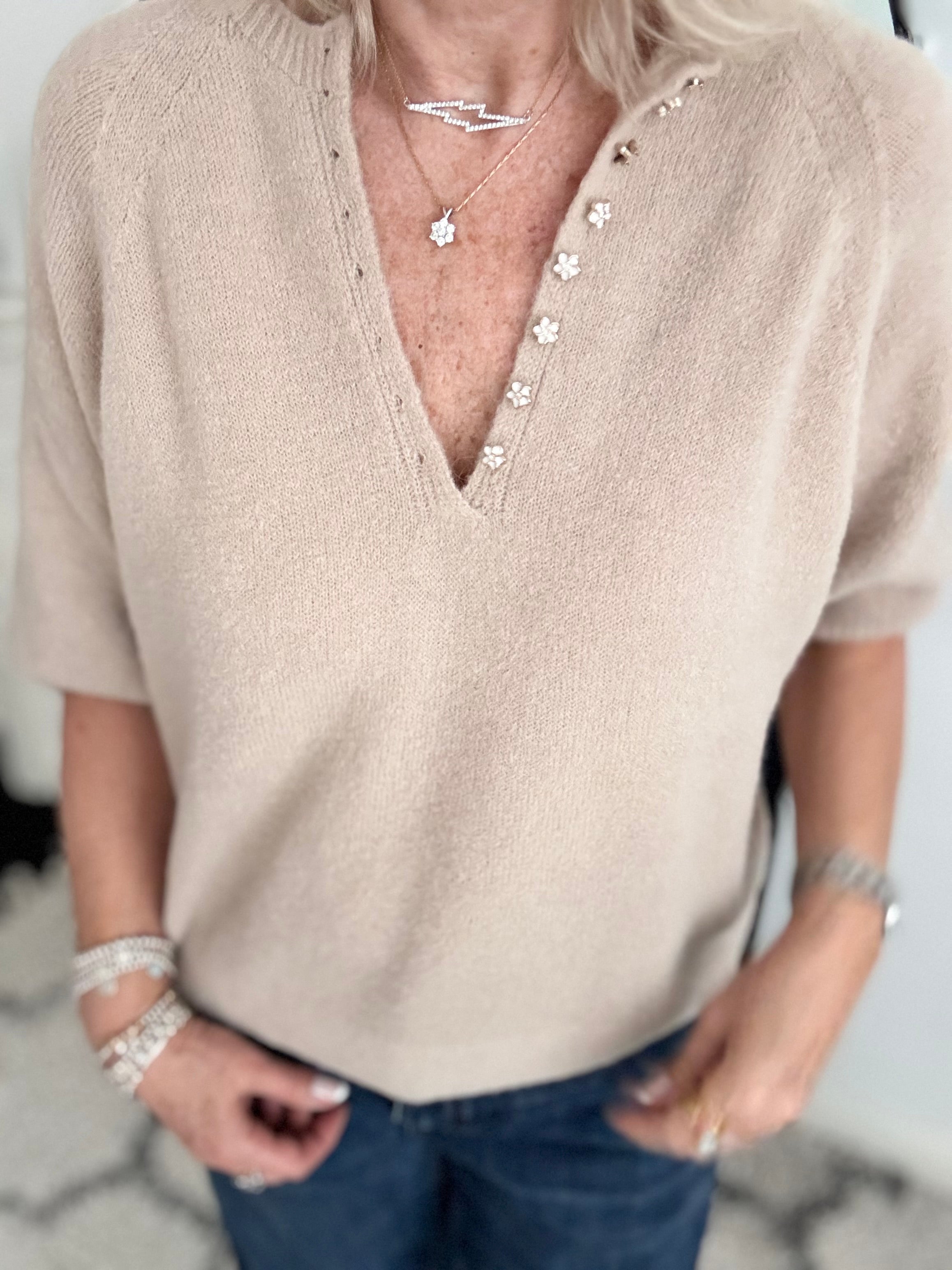 Flower Button Neck Alpaca Jumper in Baby Blue