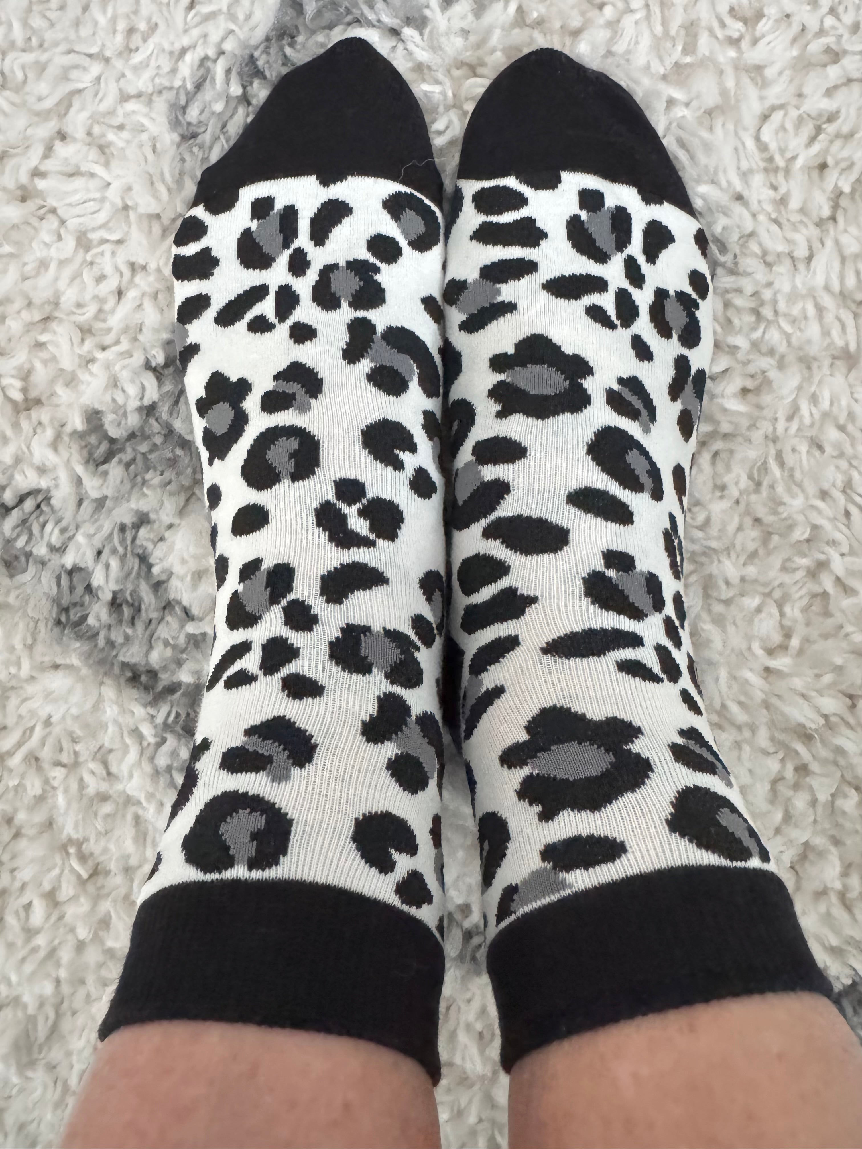 Cotton Socks with Leopard Print in Black & White