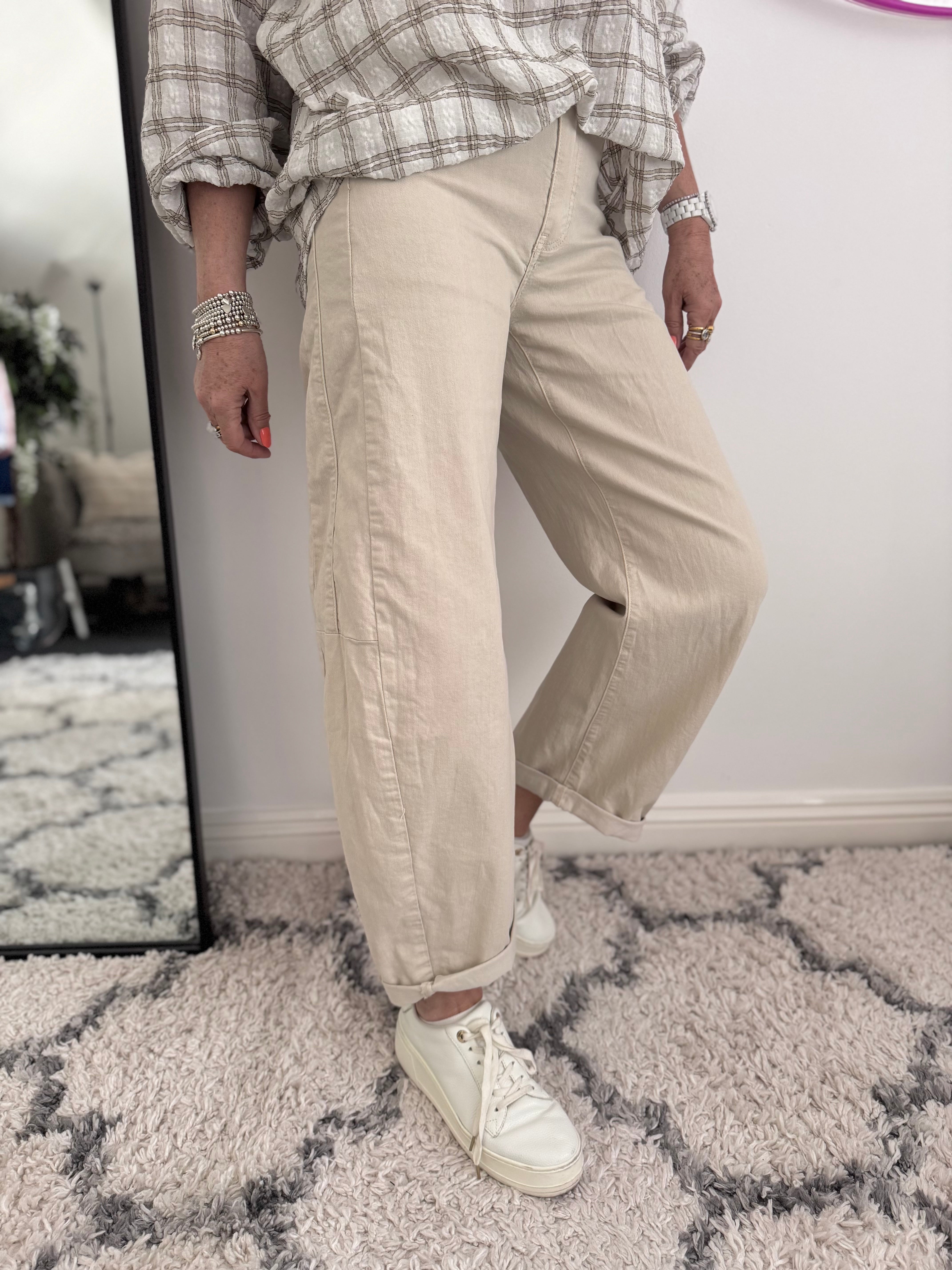 Barrel Leg Jeans in Stone