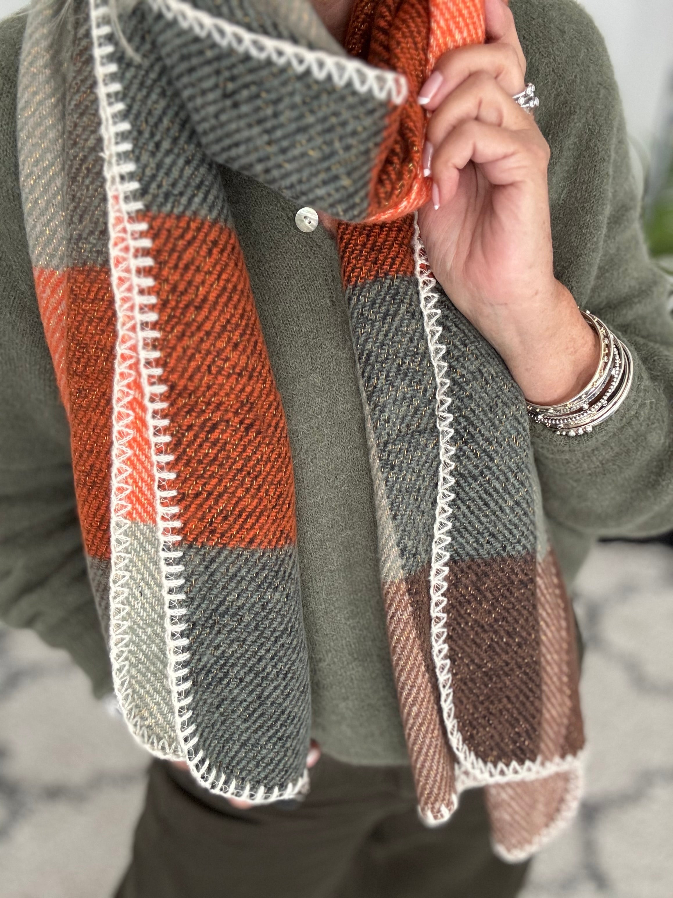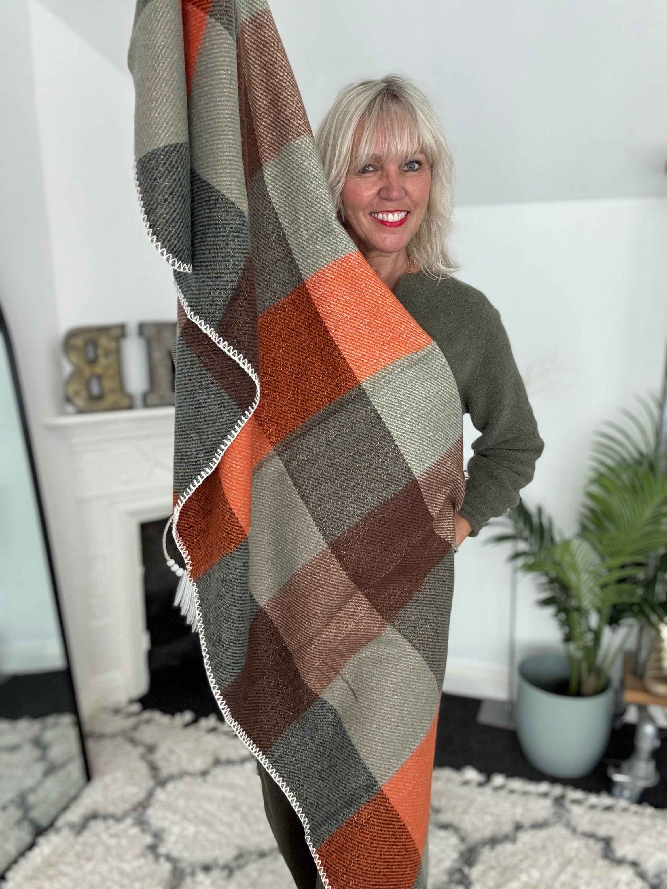 Super Soft Check Scarf in Khaki & Orange
