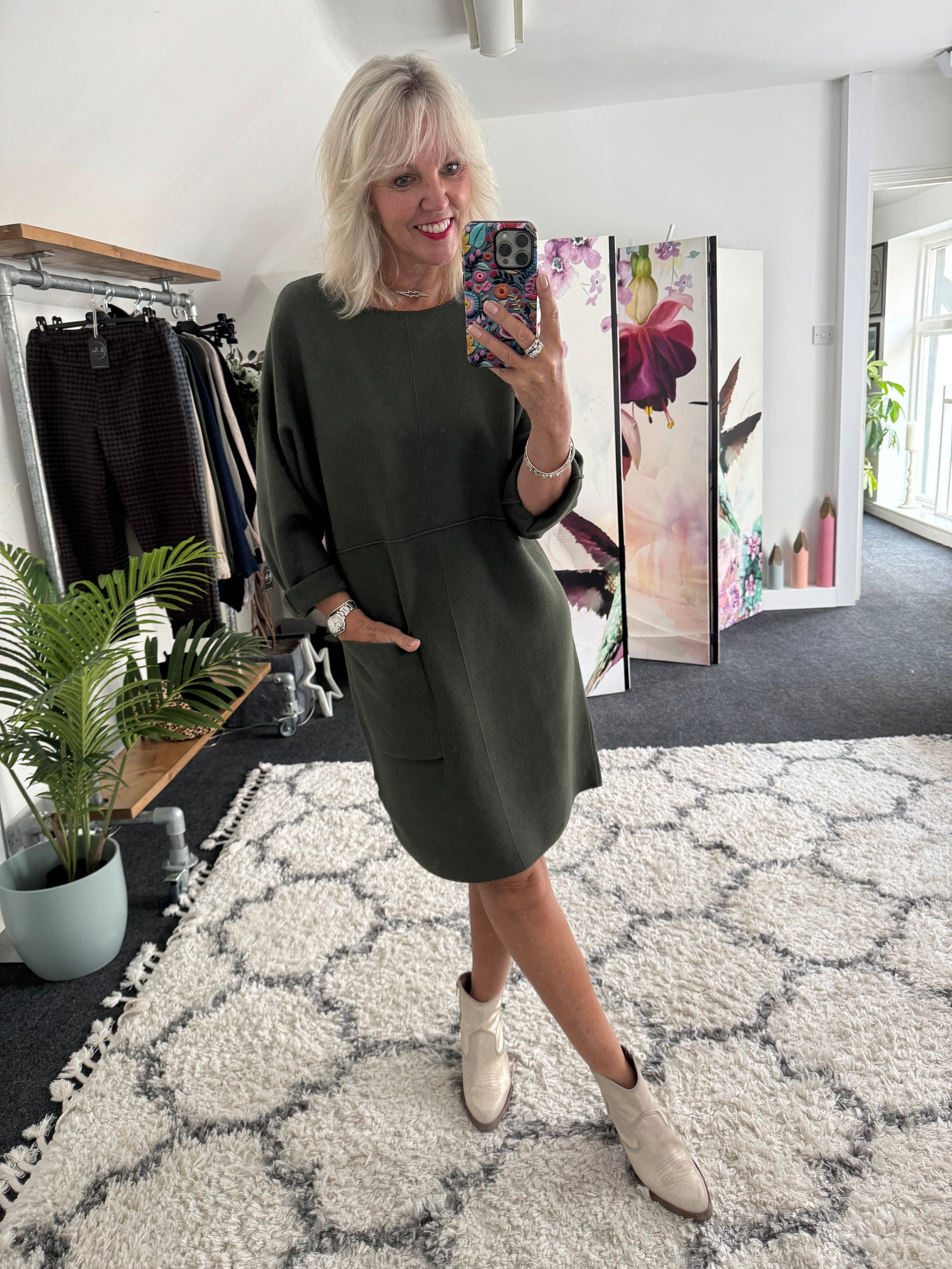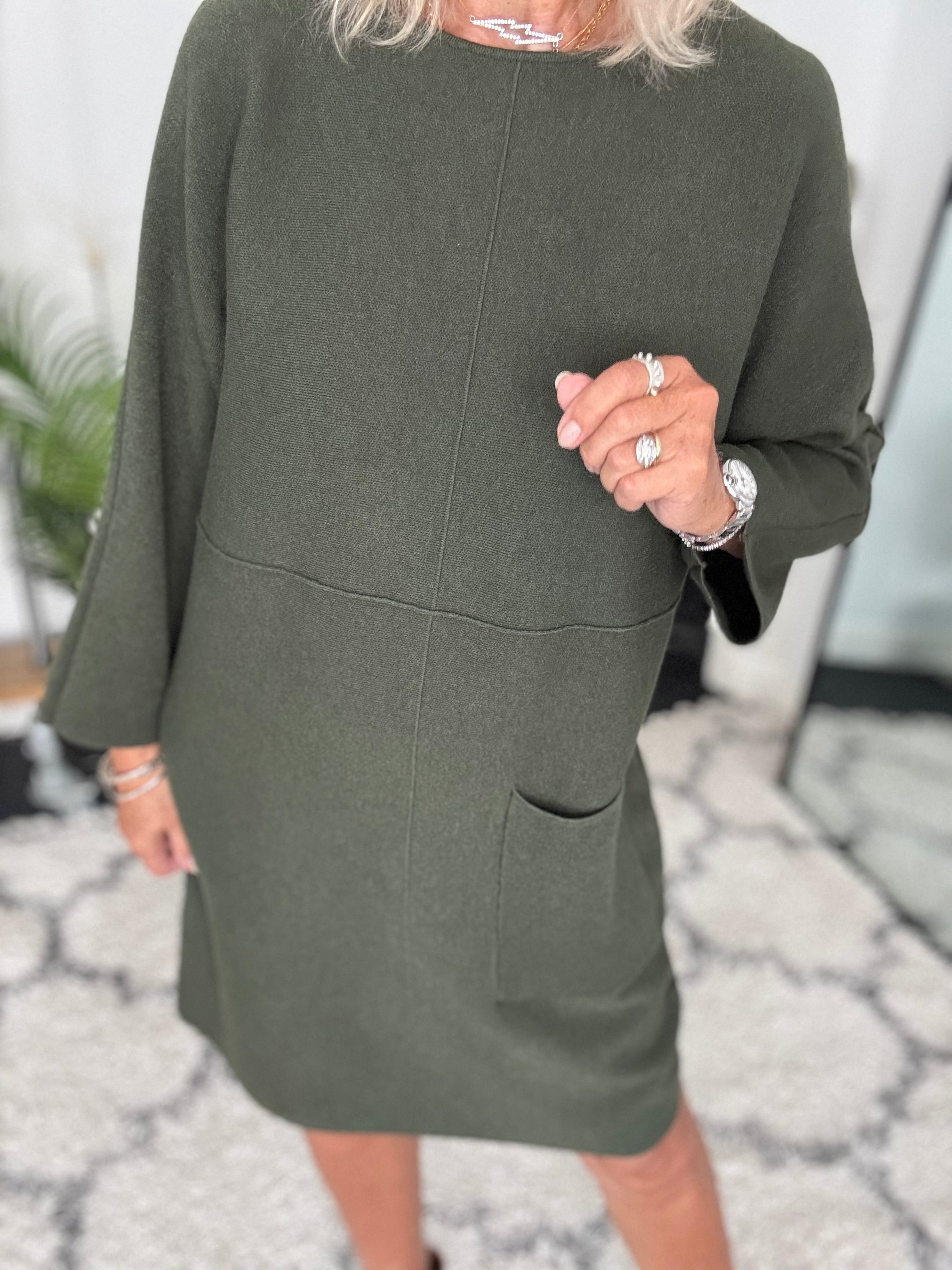Luxe Knitted Pocket Dress in Khaki