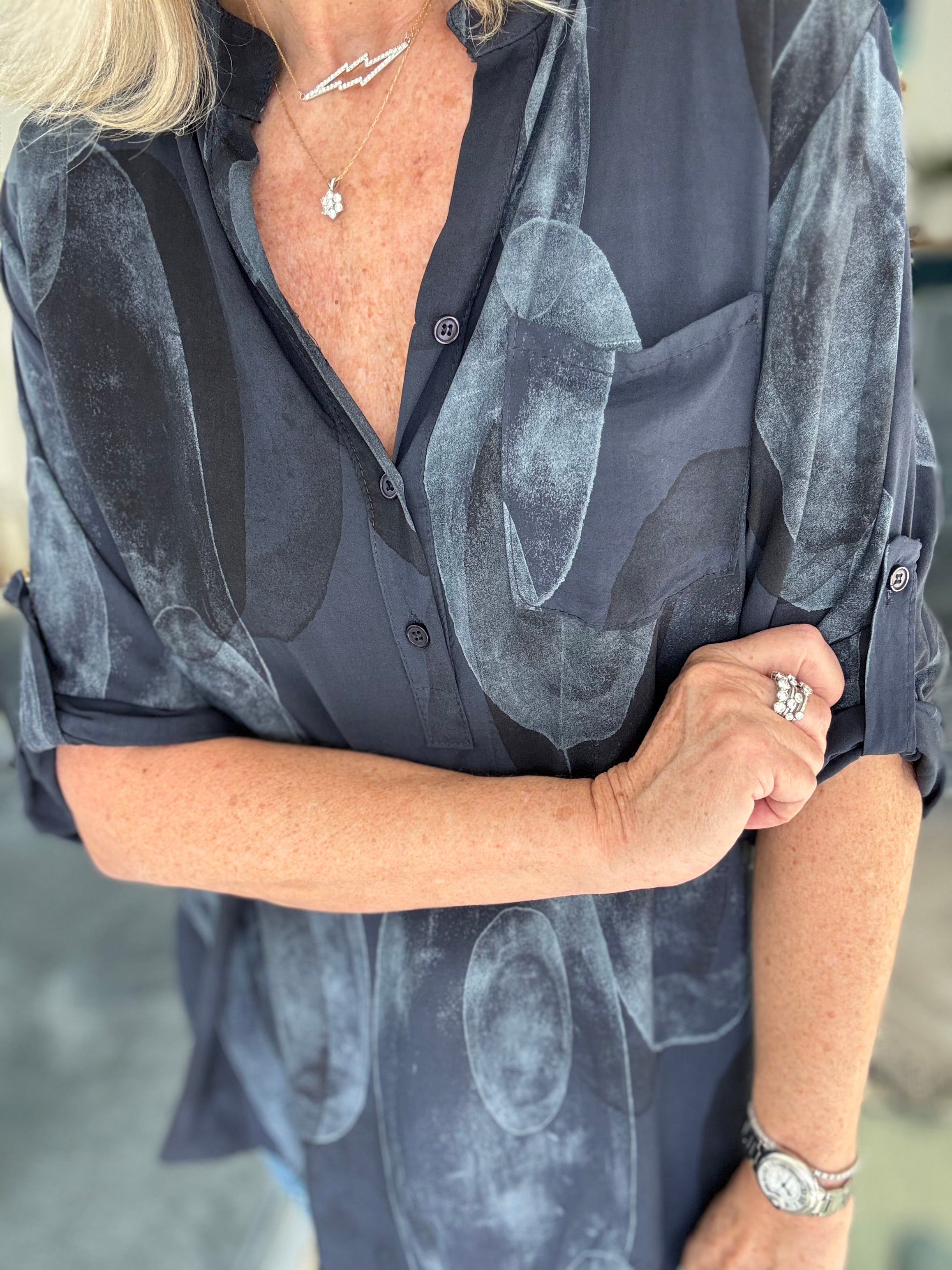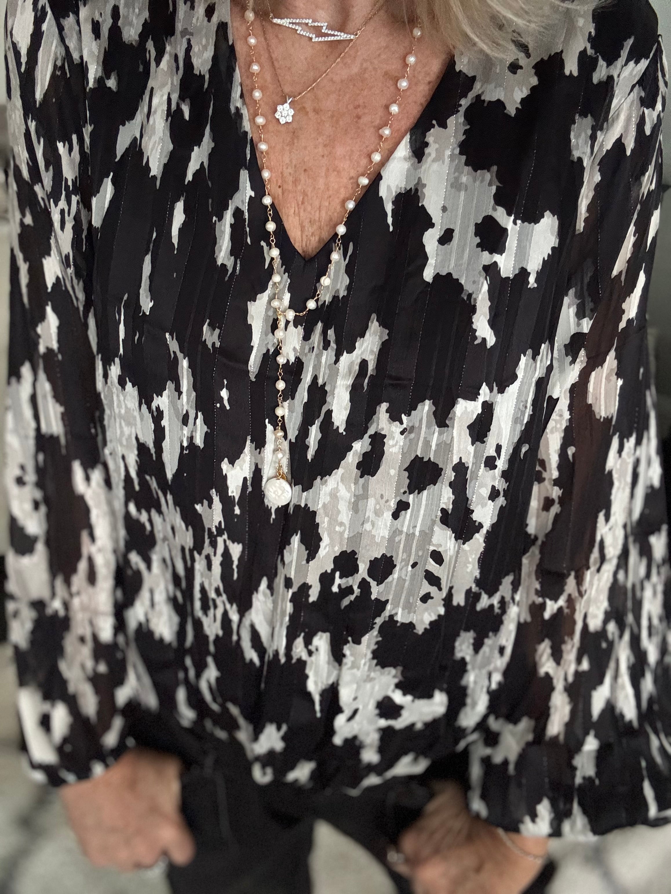 Luxe Metallic Blouse in Pewter