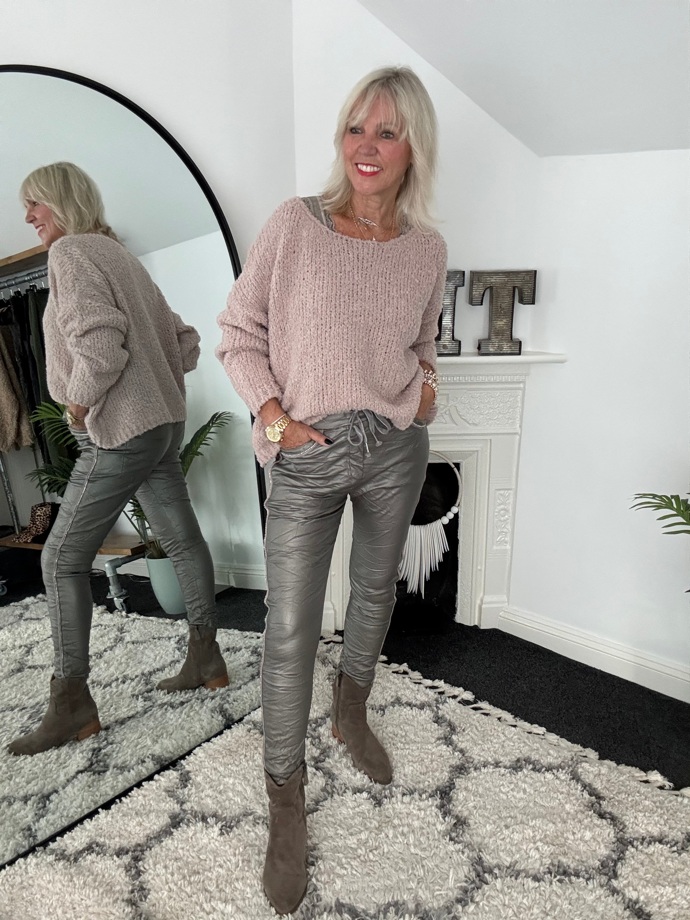 Super Stretch Joggers with Sparkly Tie in Mocha