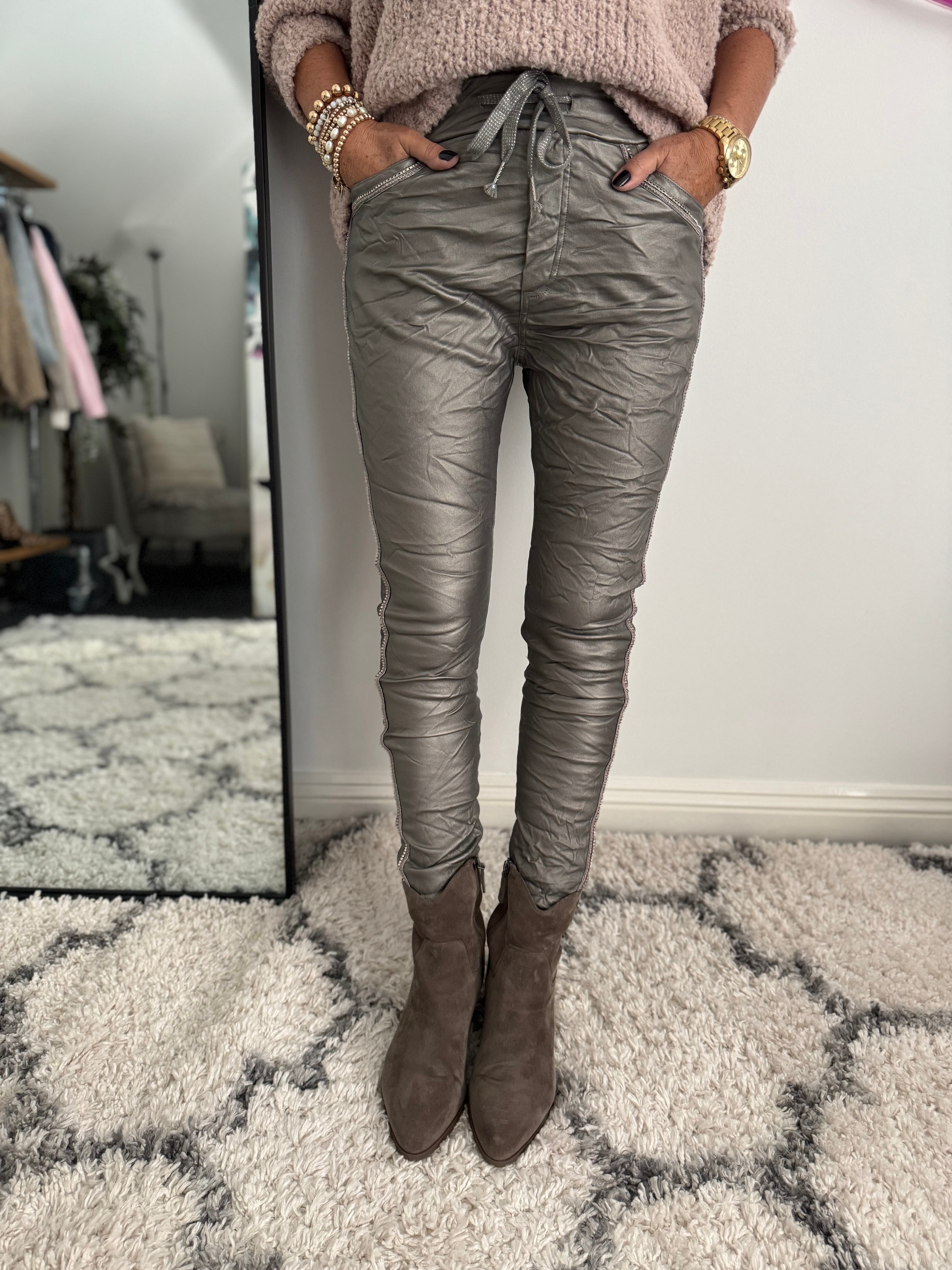 Super Stretch Joggers with Sparkly Tie in Khaki