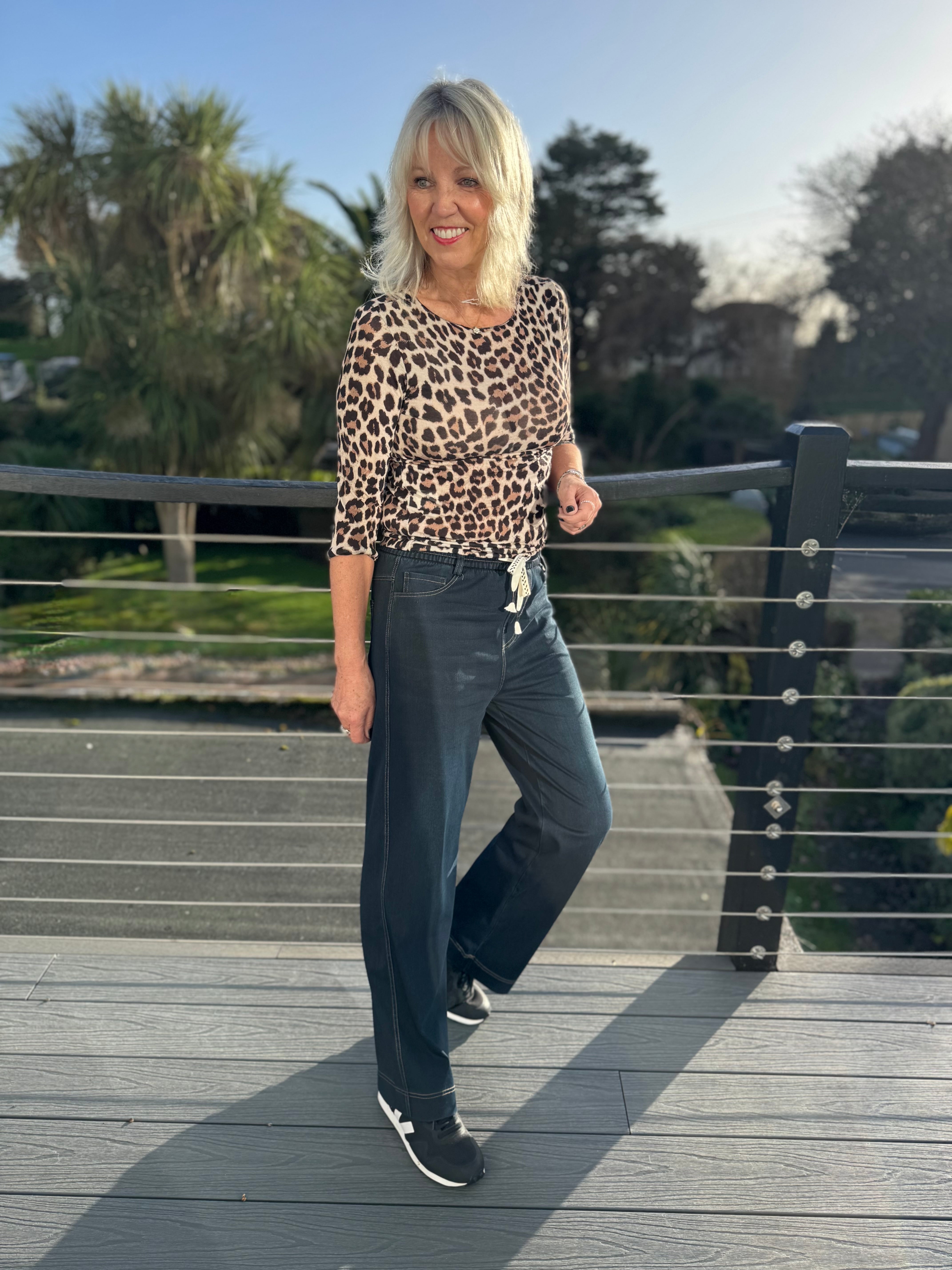 Velvet Stretch Trousers in Chocolate Leopard