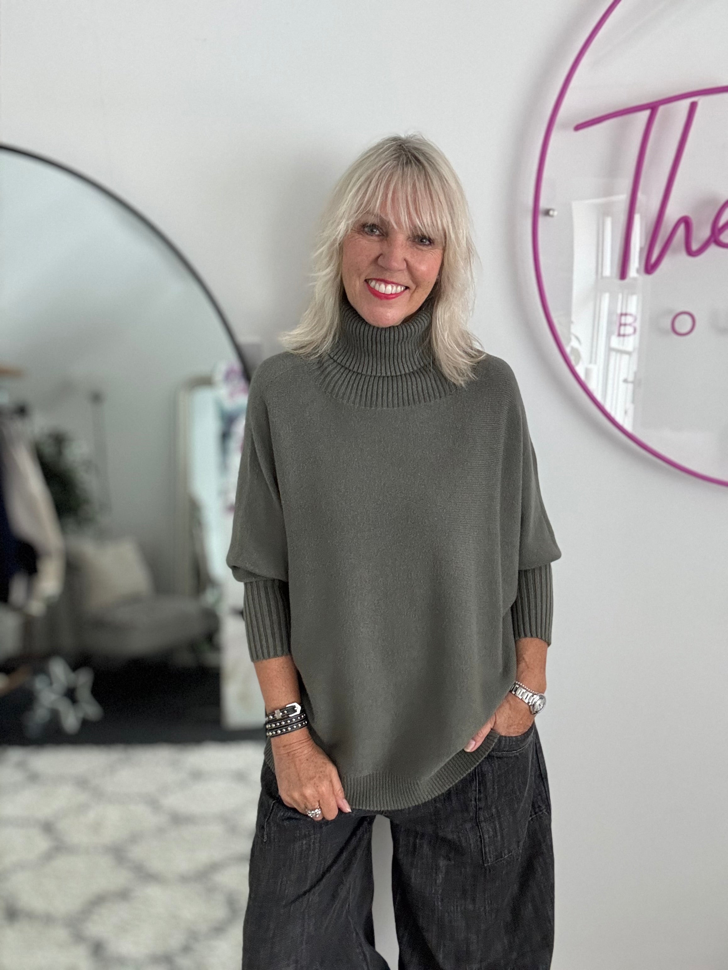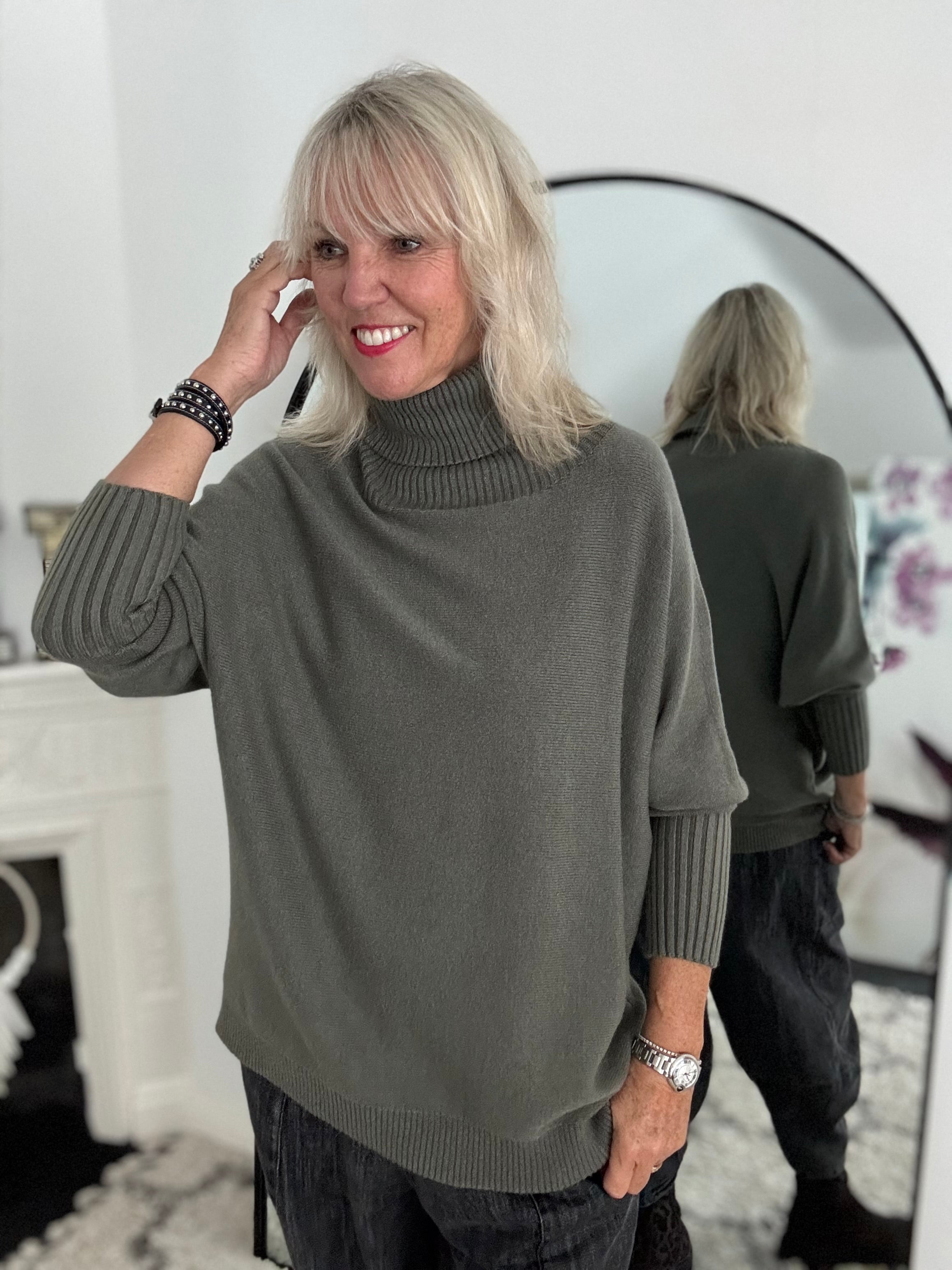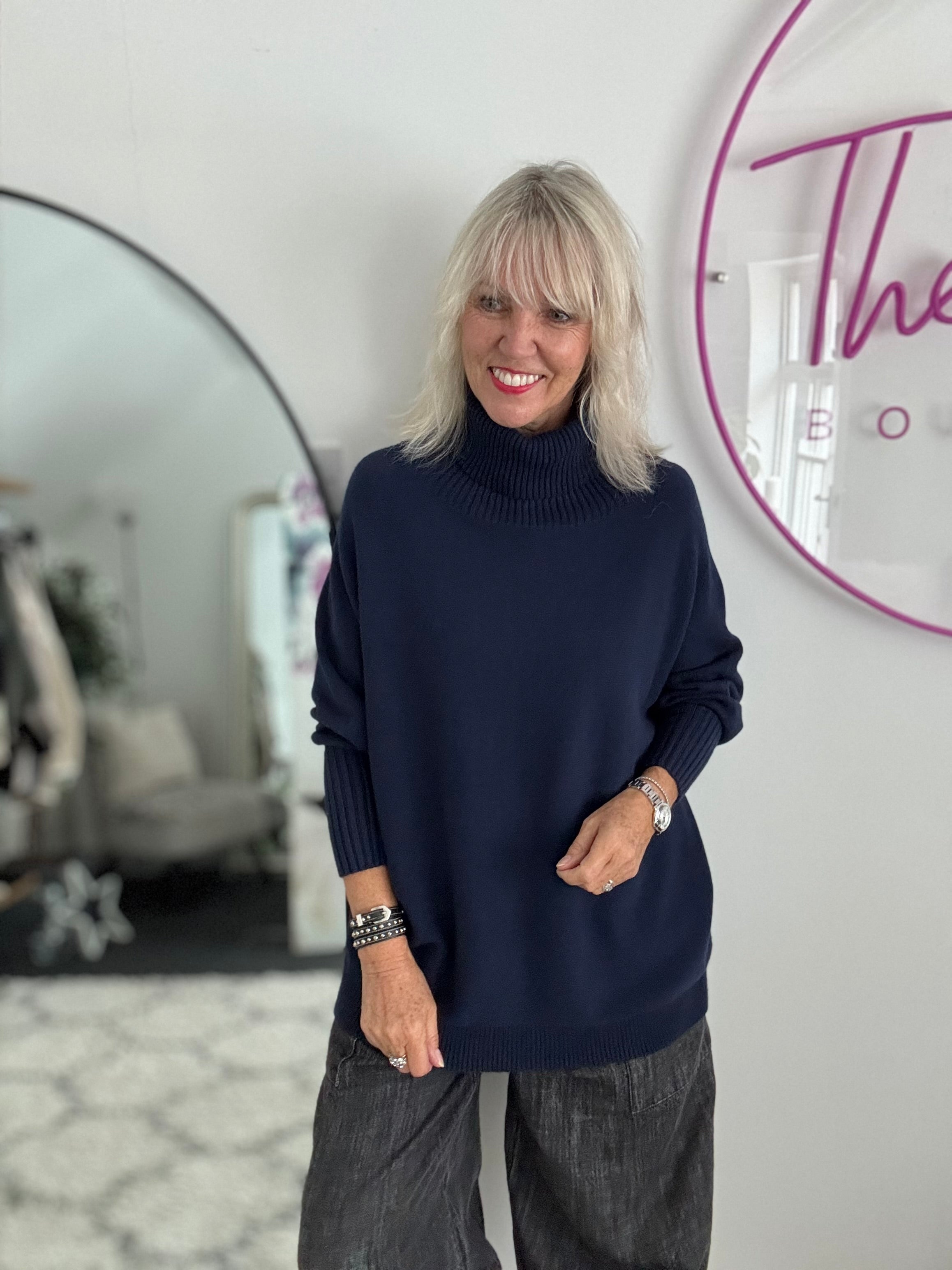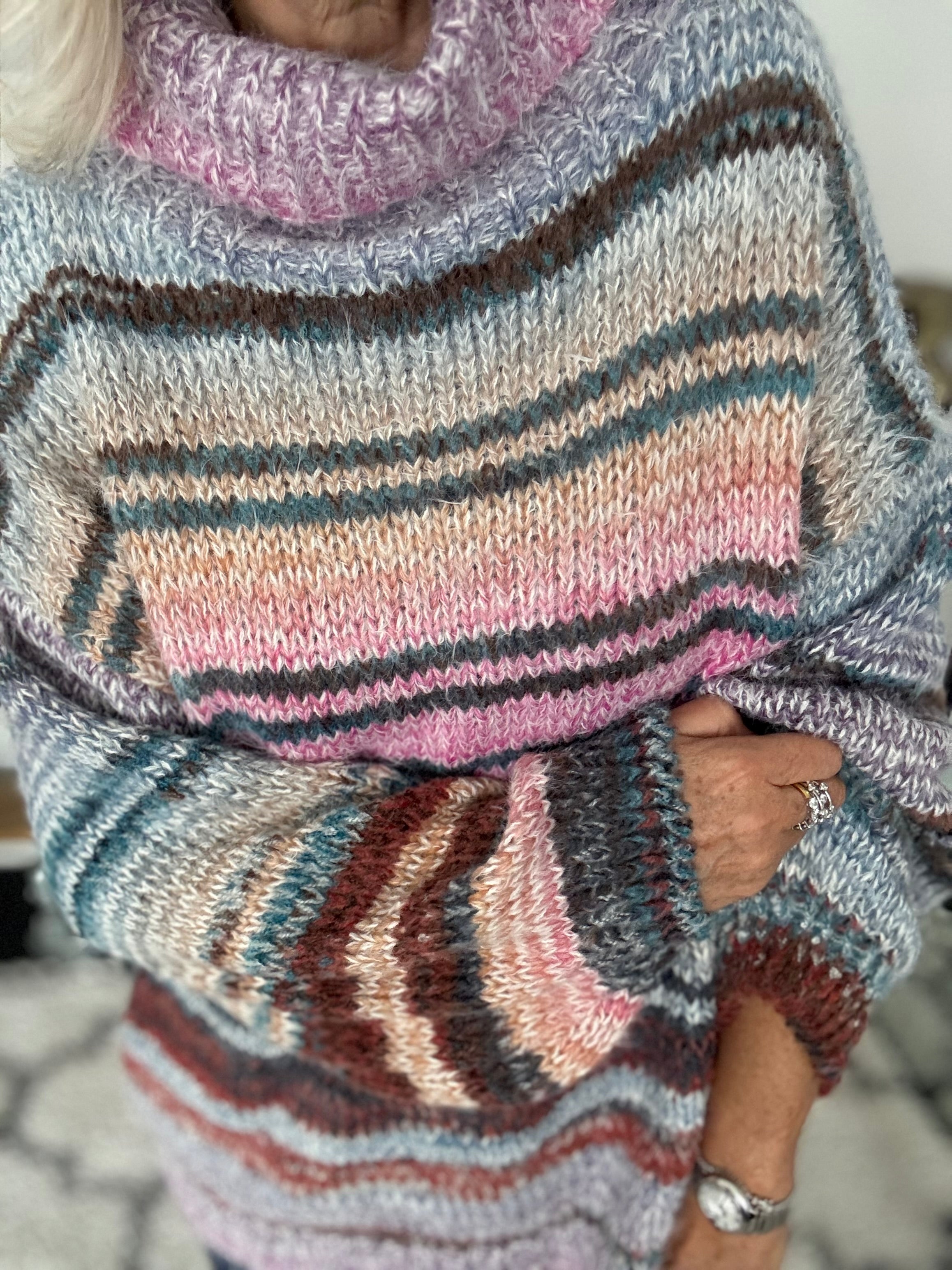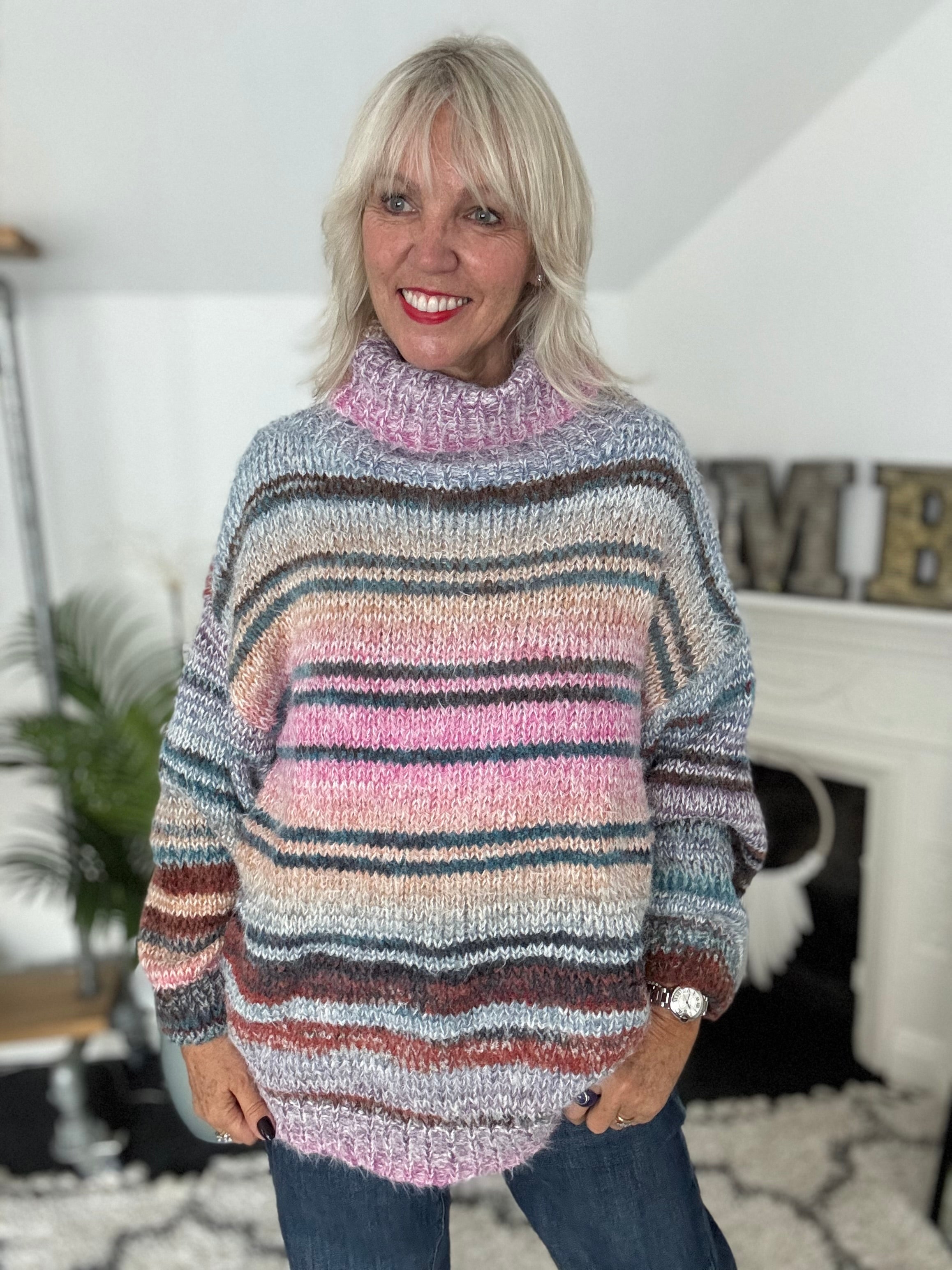 Oversized Stripe Roll Neck Jumper in Pink & Teal