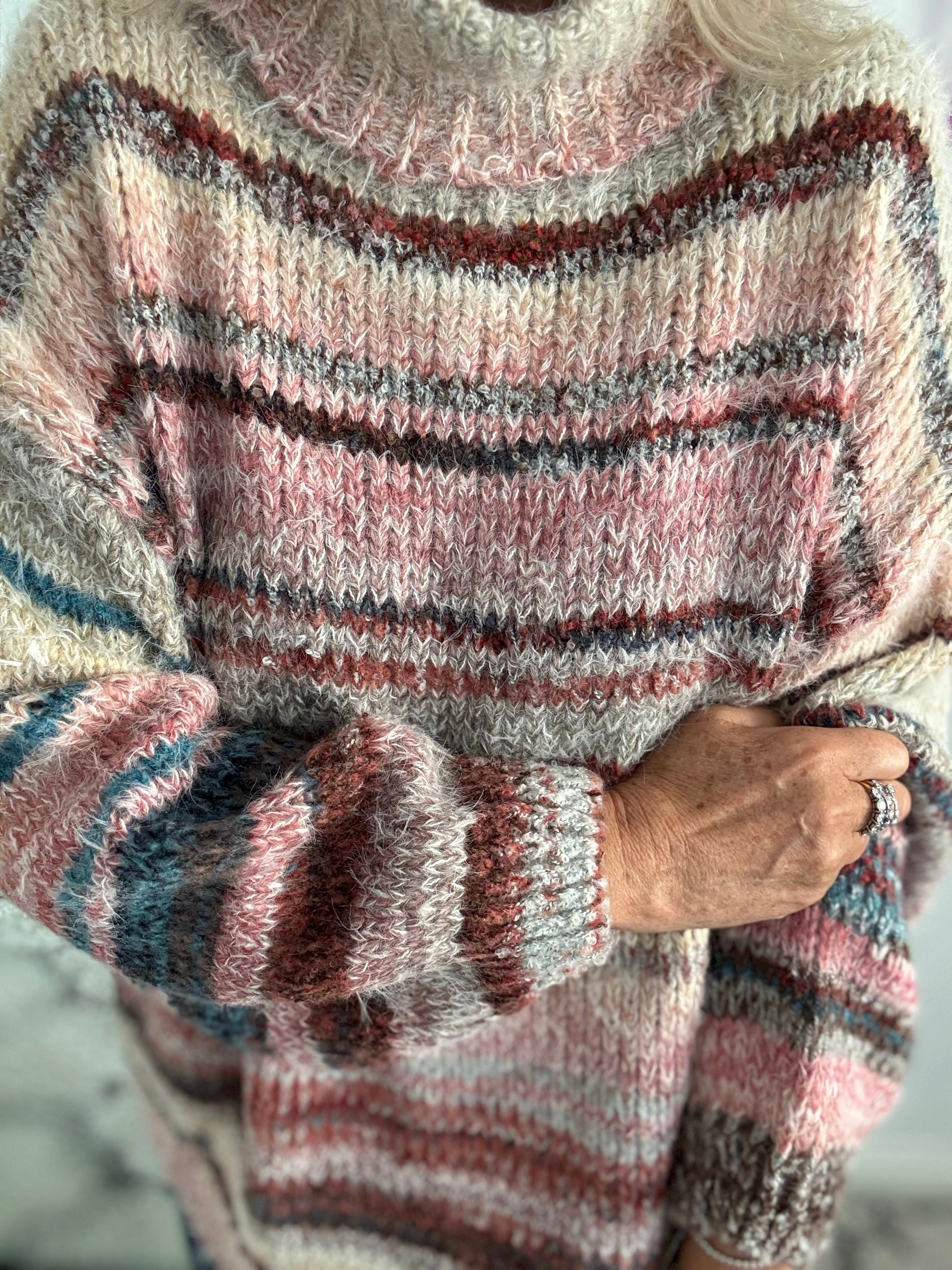 Oversized Stripe Roll Neck Jumper in Pink & Mocha