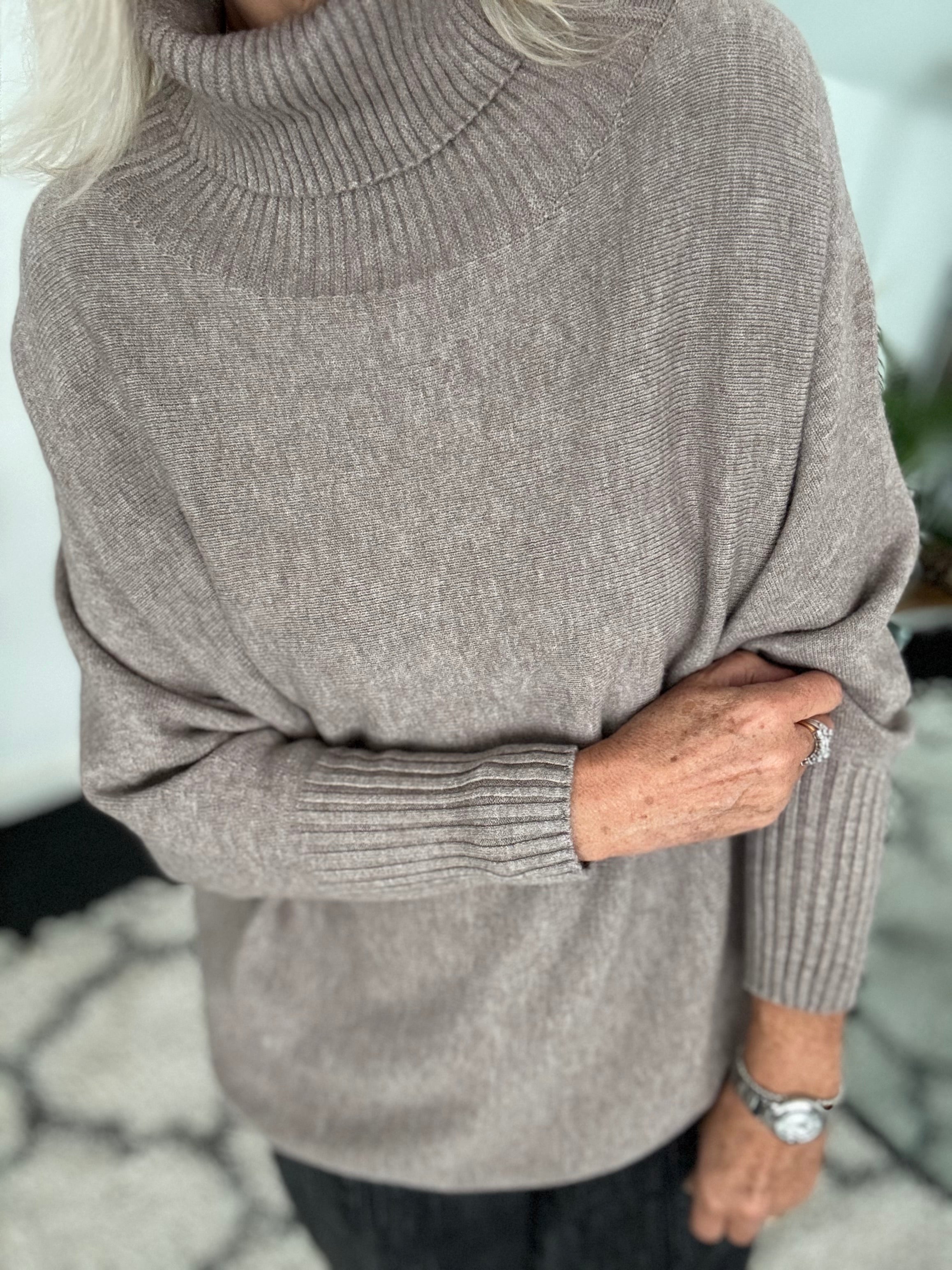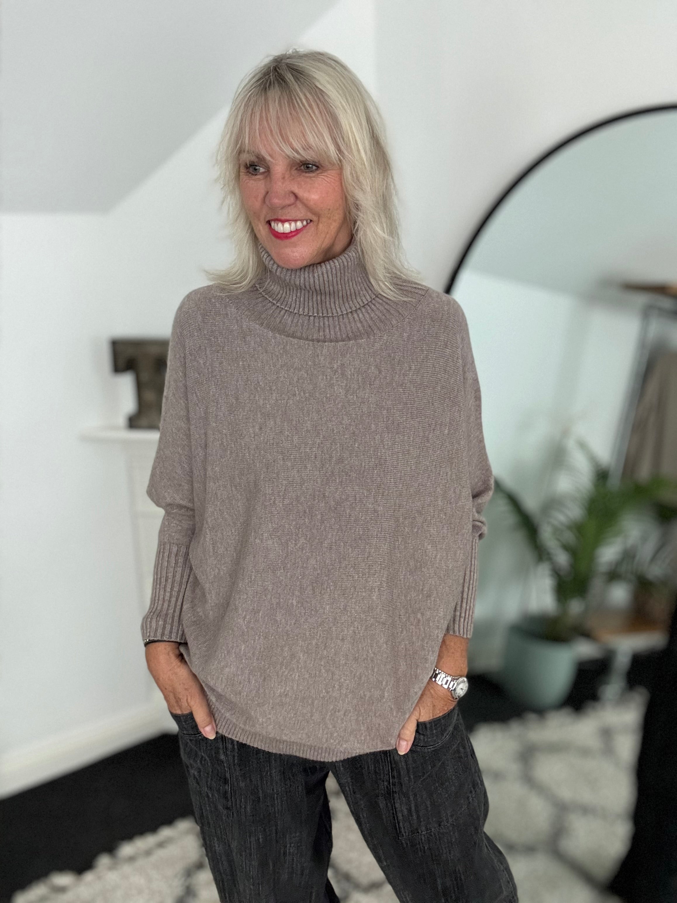 Oversized Stripe Roll Neck Jumper in Pink & Mocha