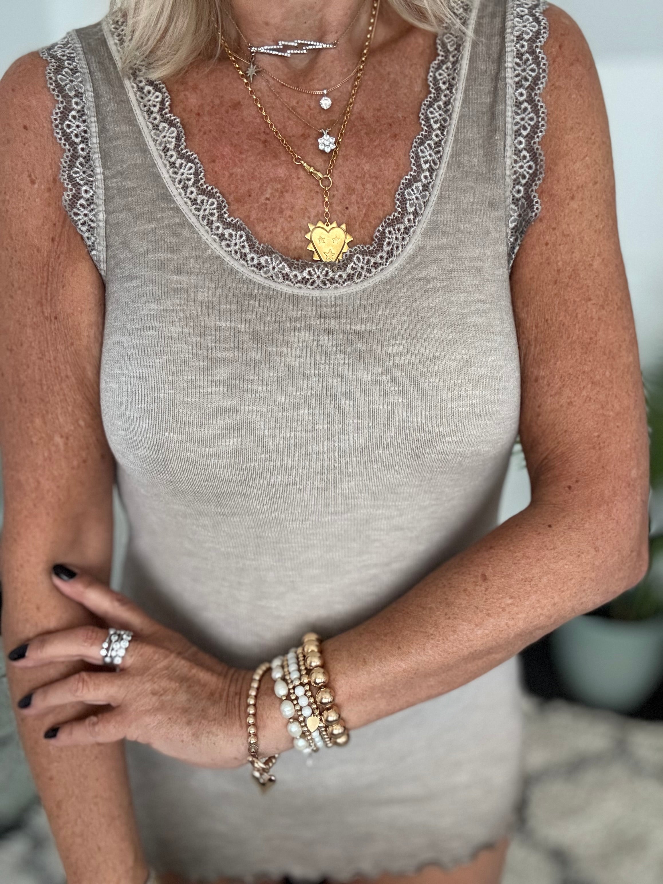 Luxe Base Top with Lace Trim in Deep Dusky Pink