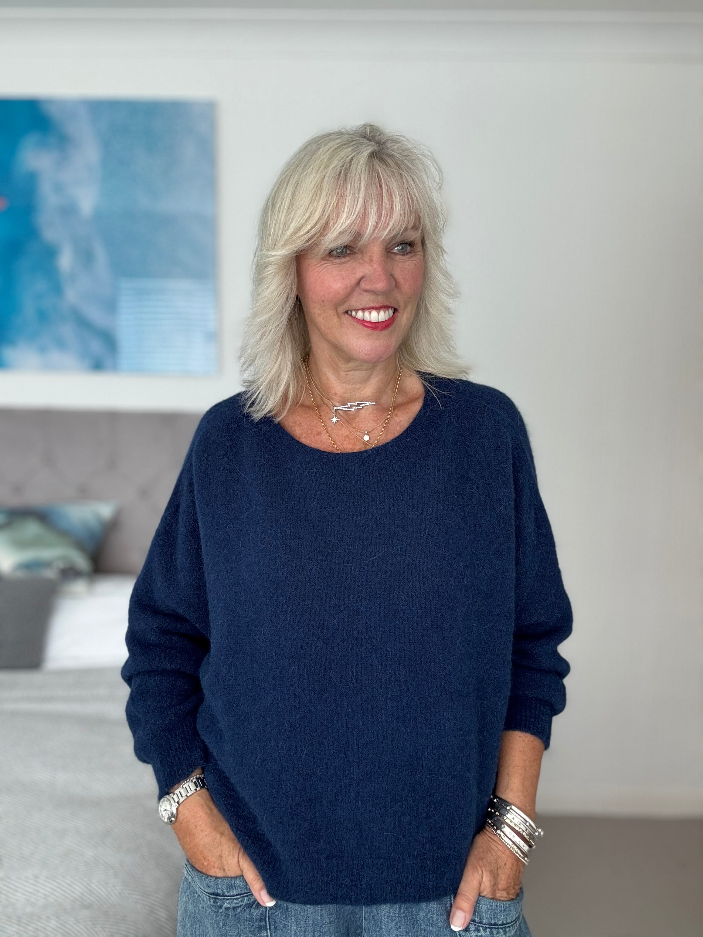 Luxe Slouchy Alpaca Jumper in Deep Blue