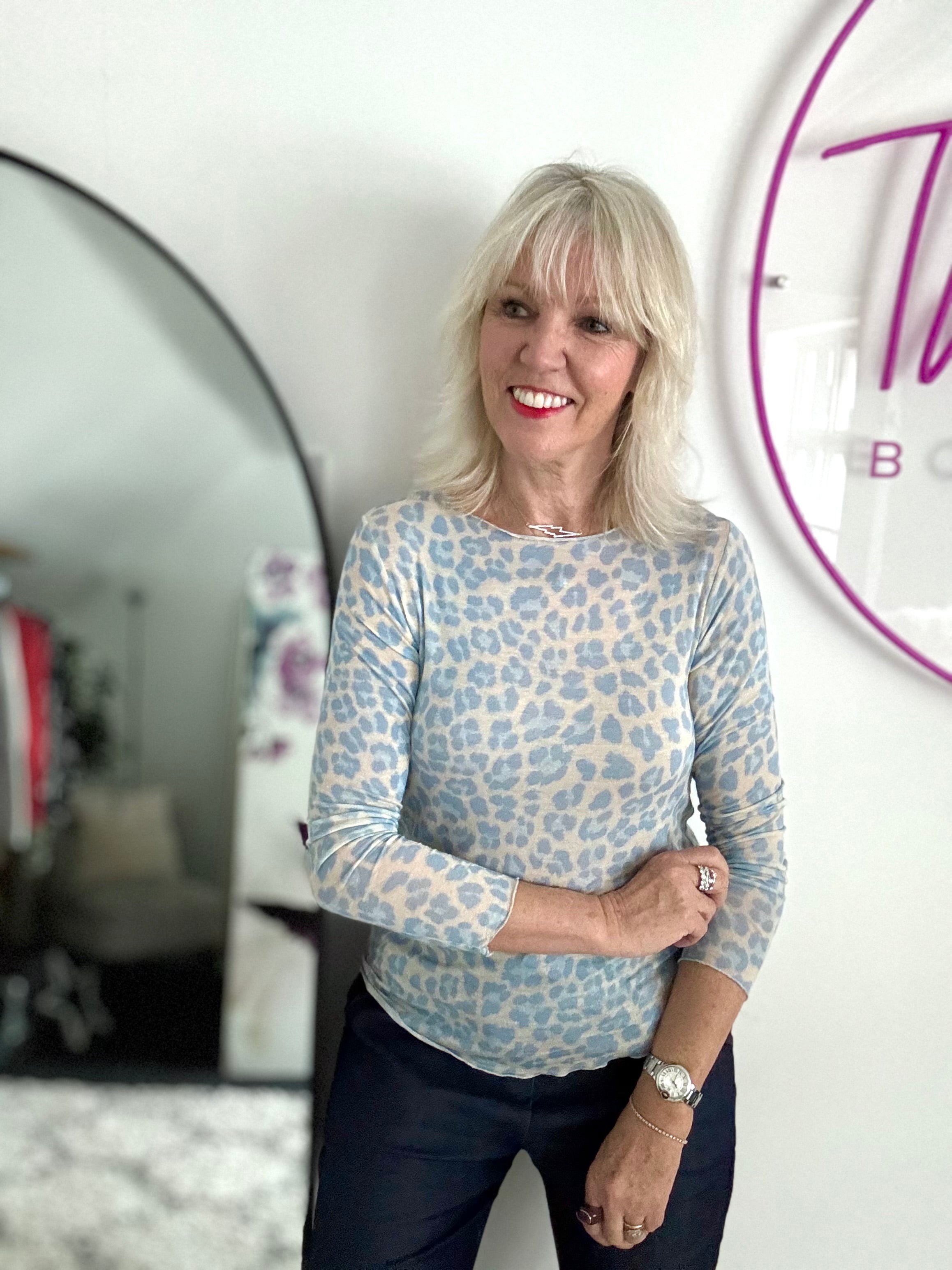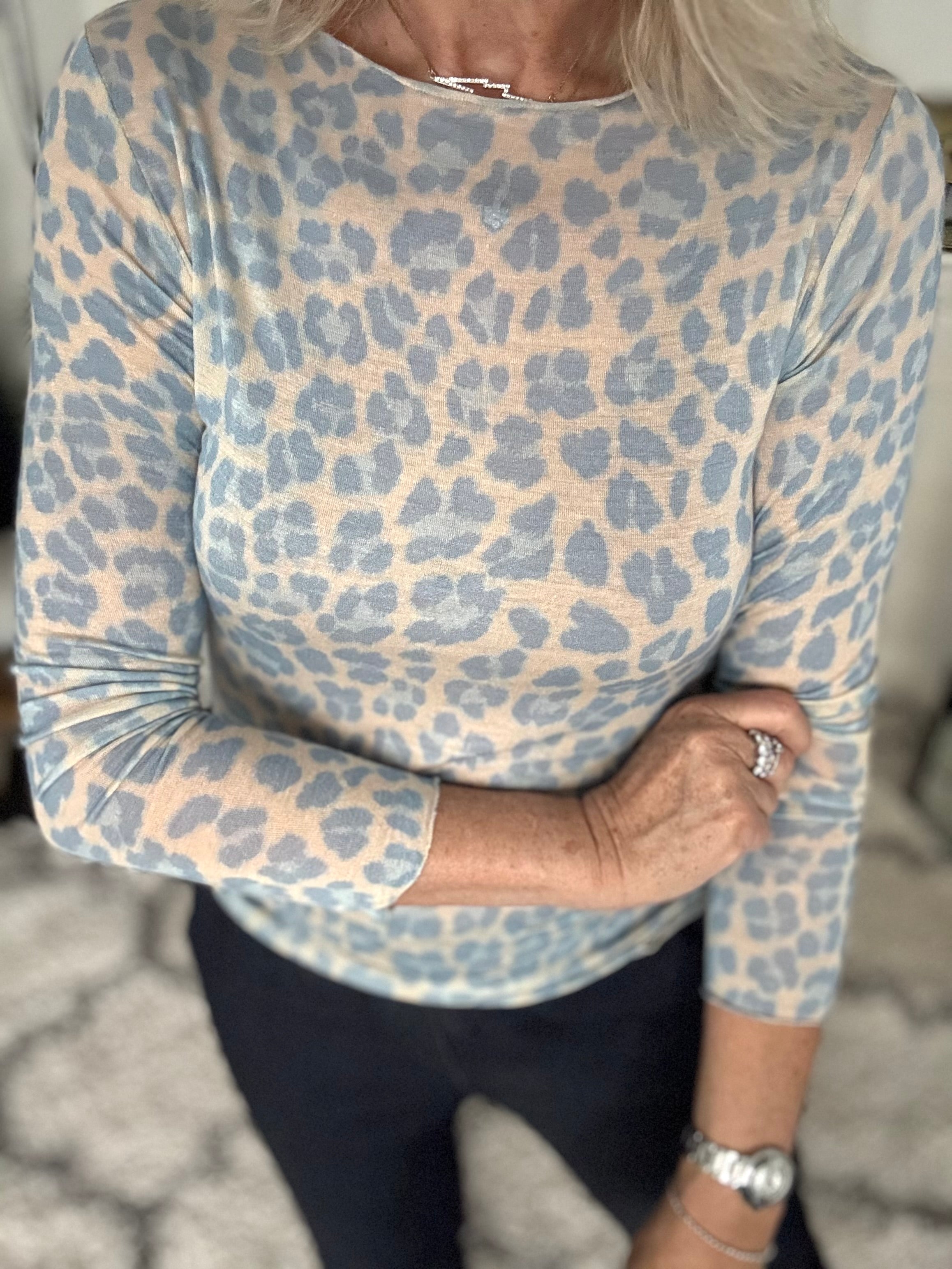 Ultrasoft Cashmere Blend Base Layer in Baby Blue Leopard