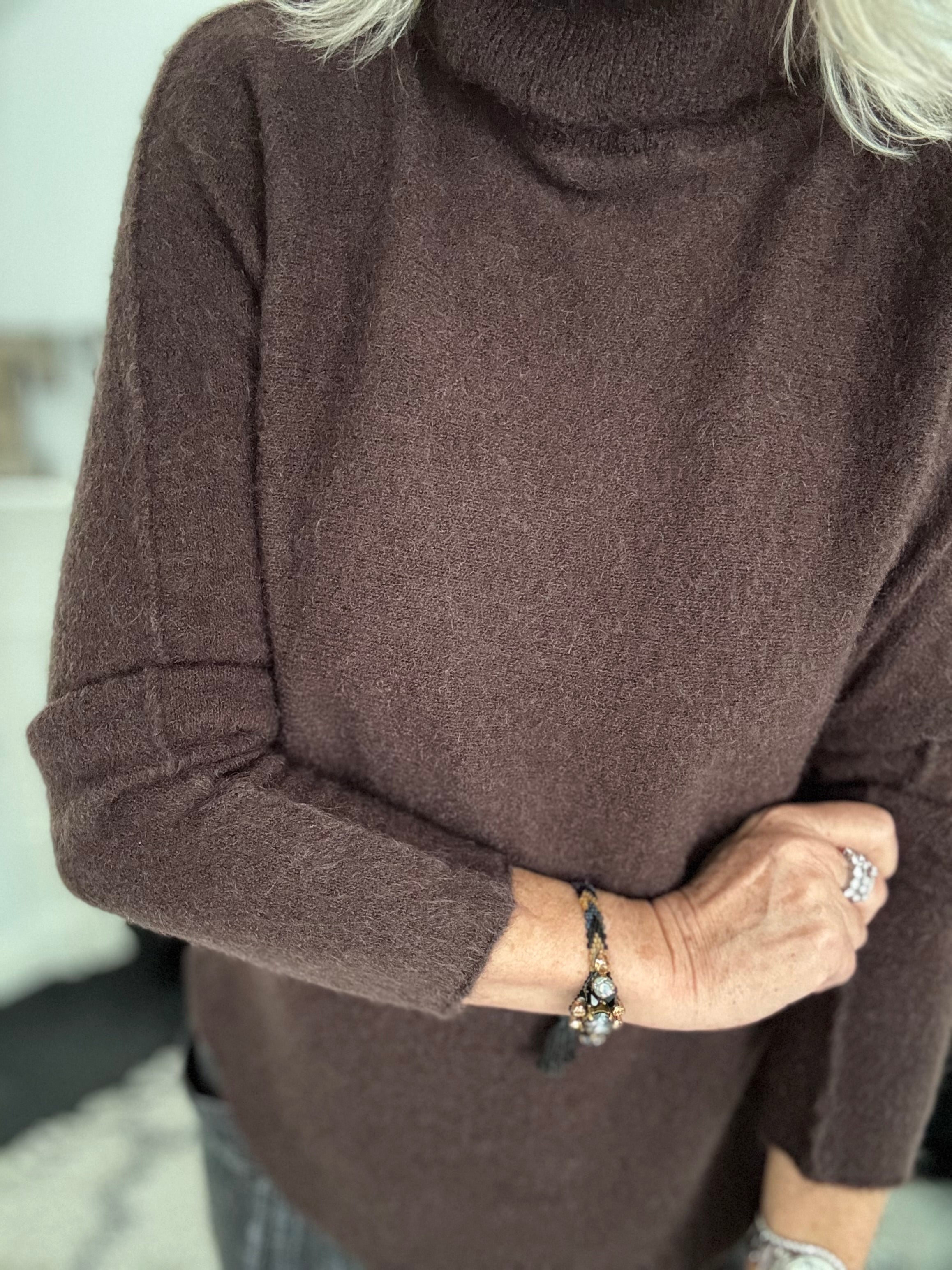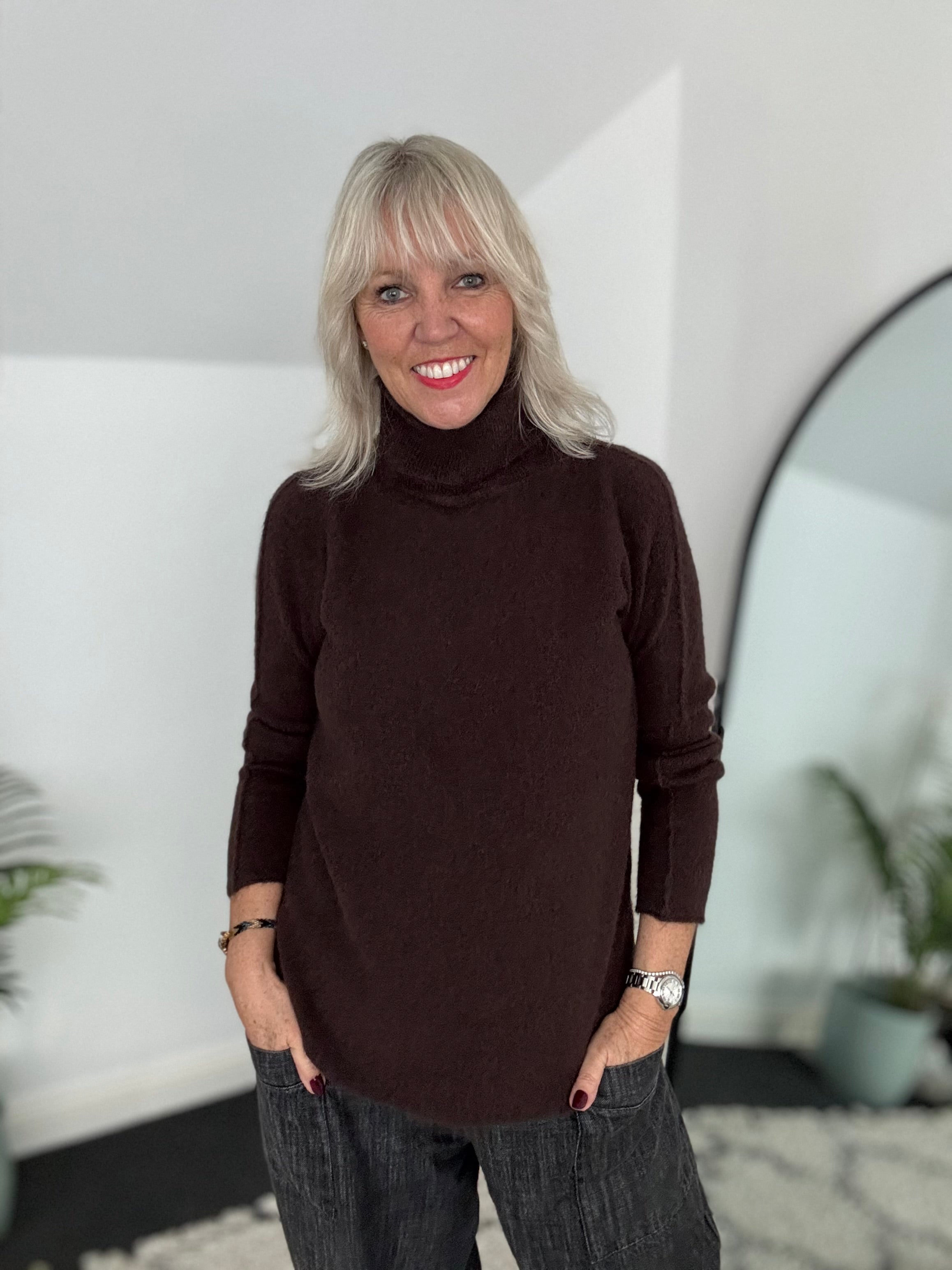Simple Roll Neck Jumper in Chocolate