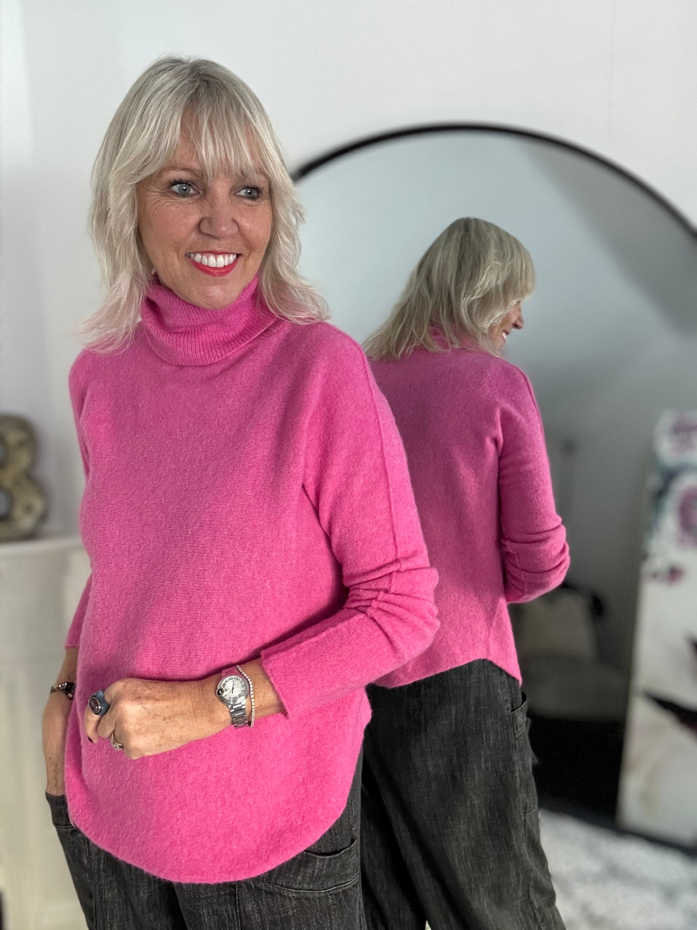 Simple Roll Neck Jumper in Fuchsia