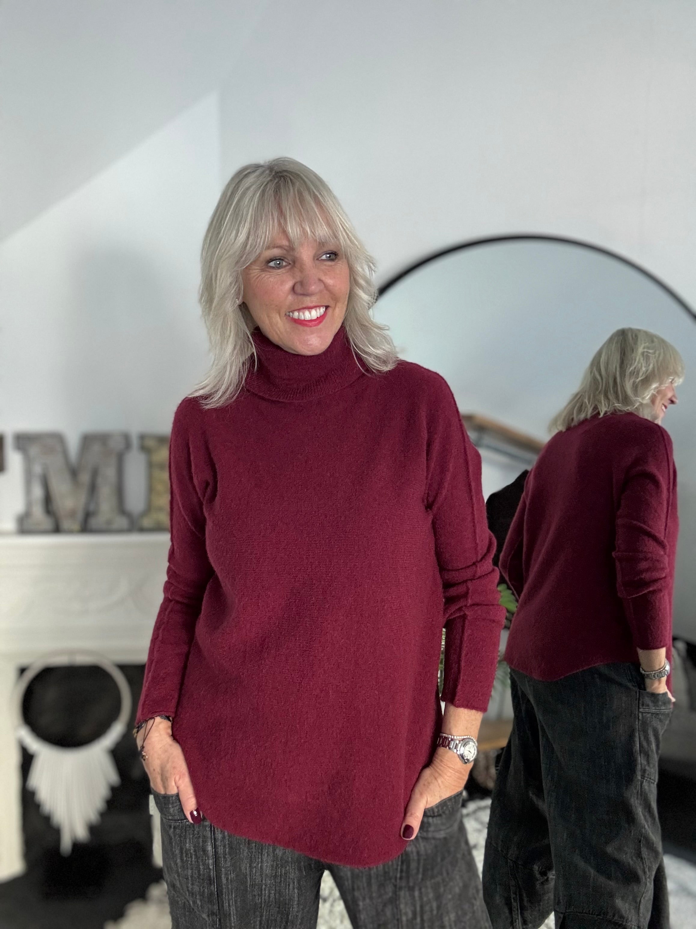 Simple Roll Neck Jumper in Wine