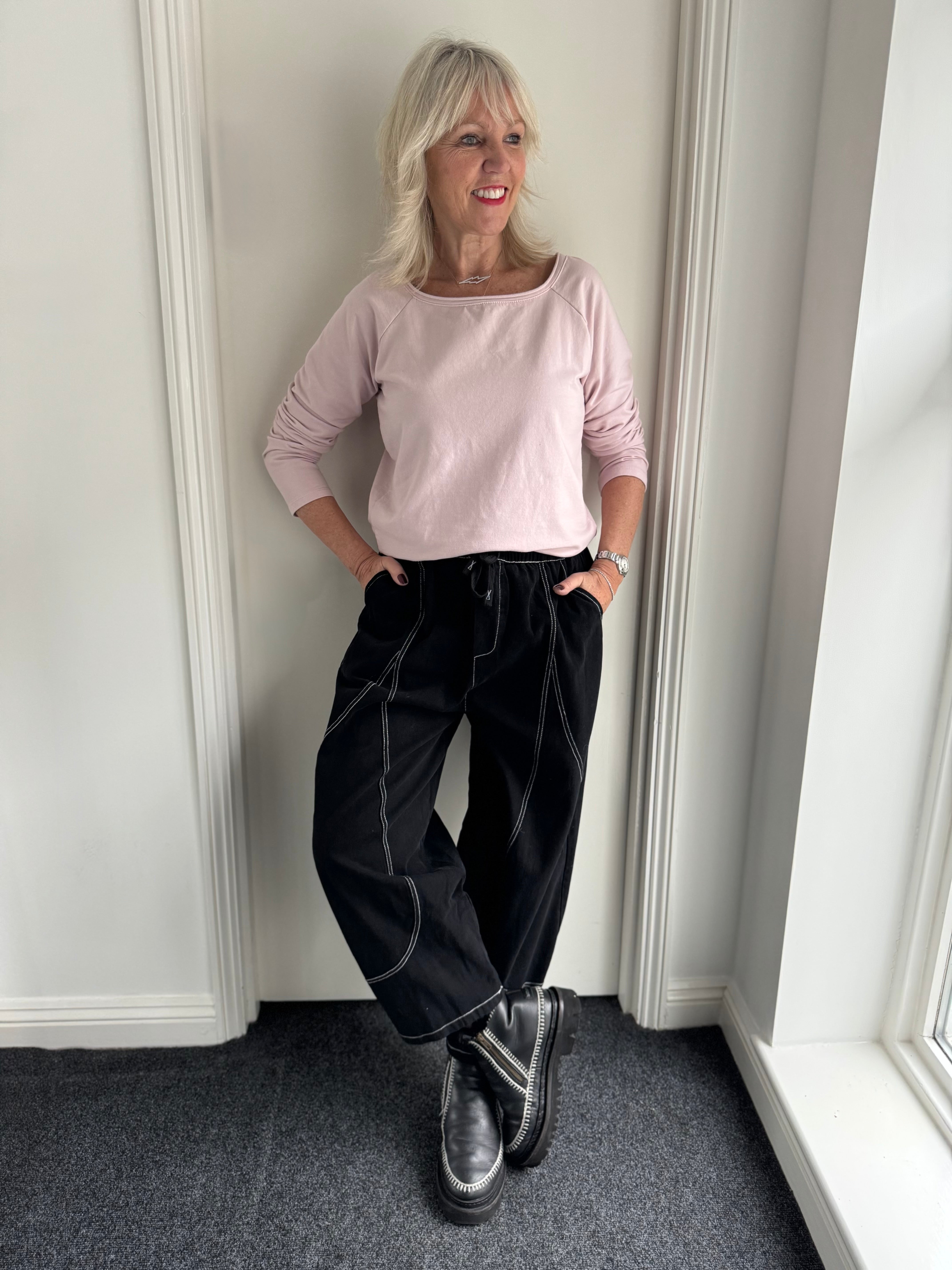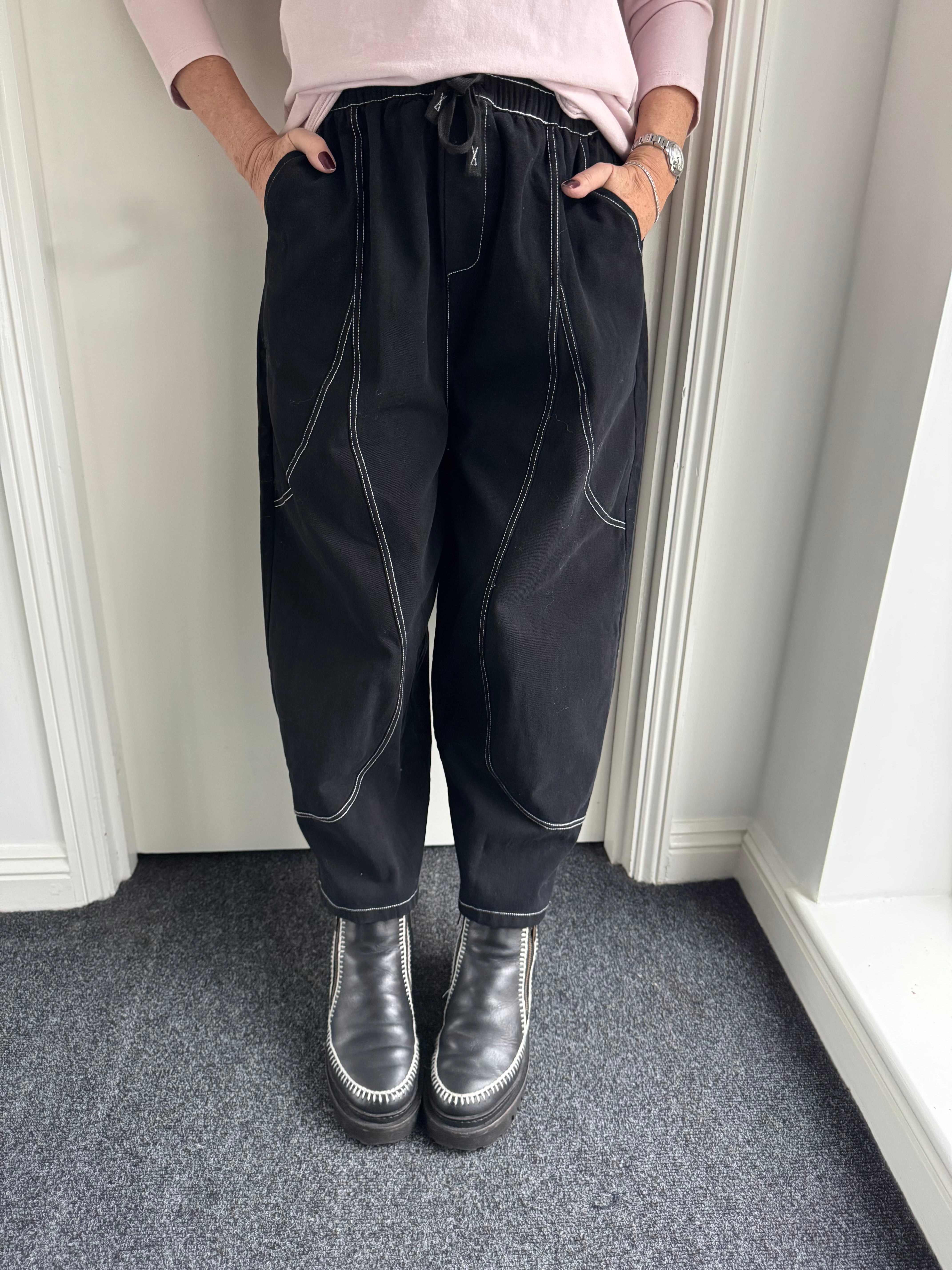 Top Stitched Barrel Trousers in Black
