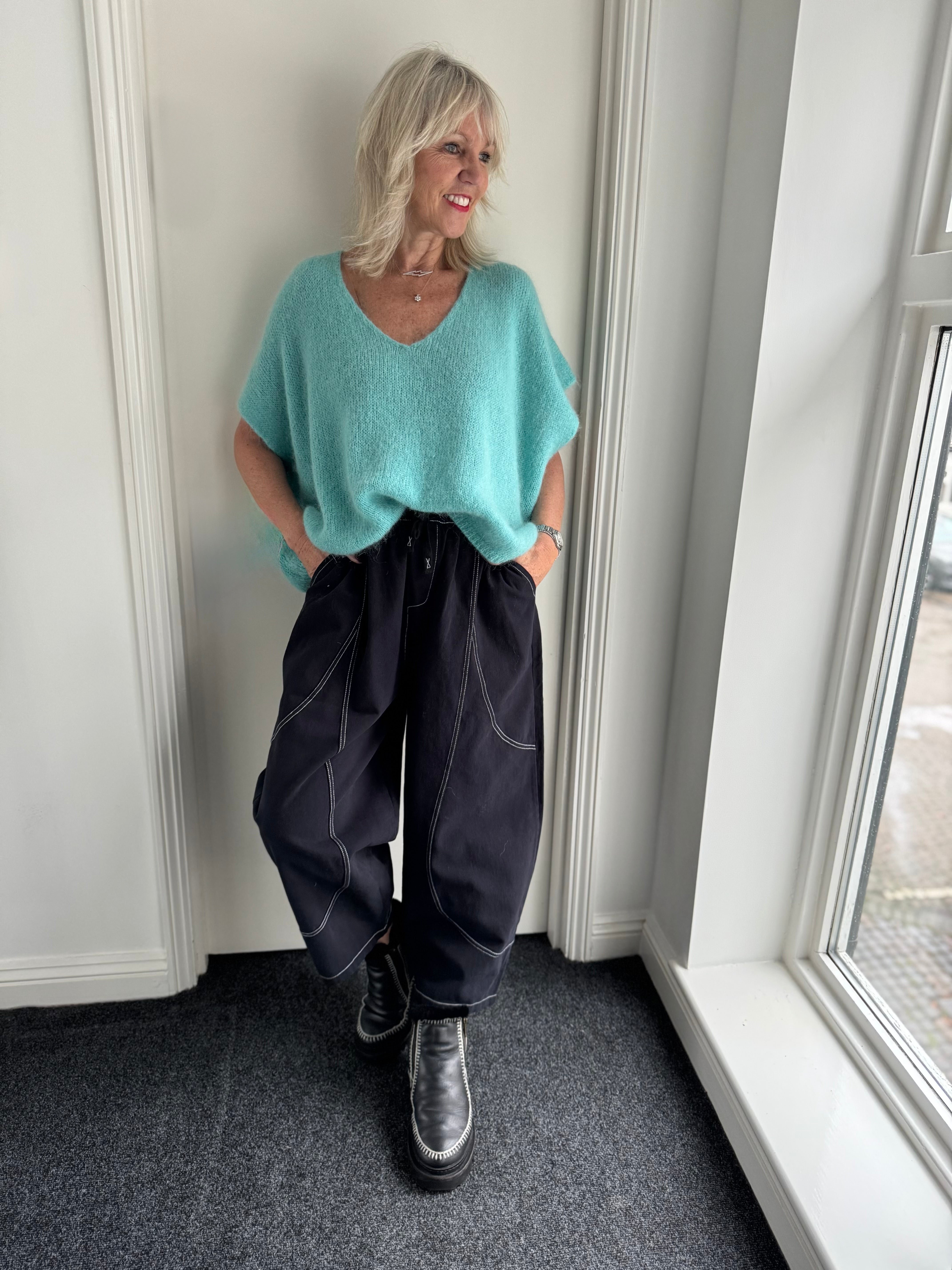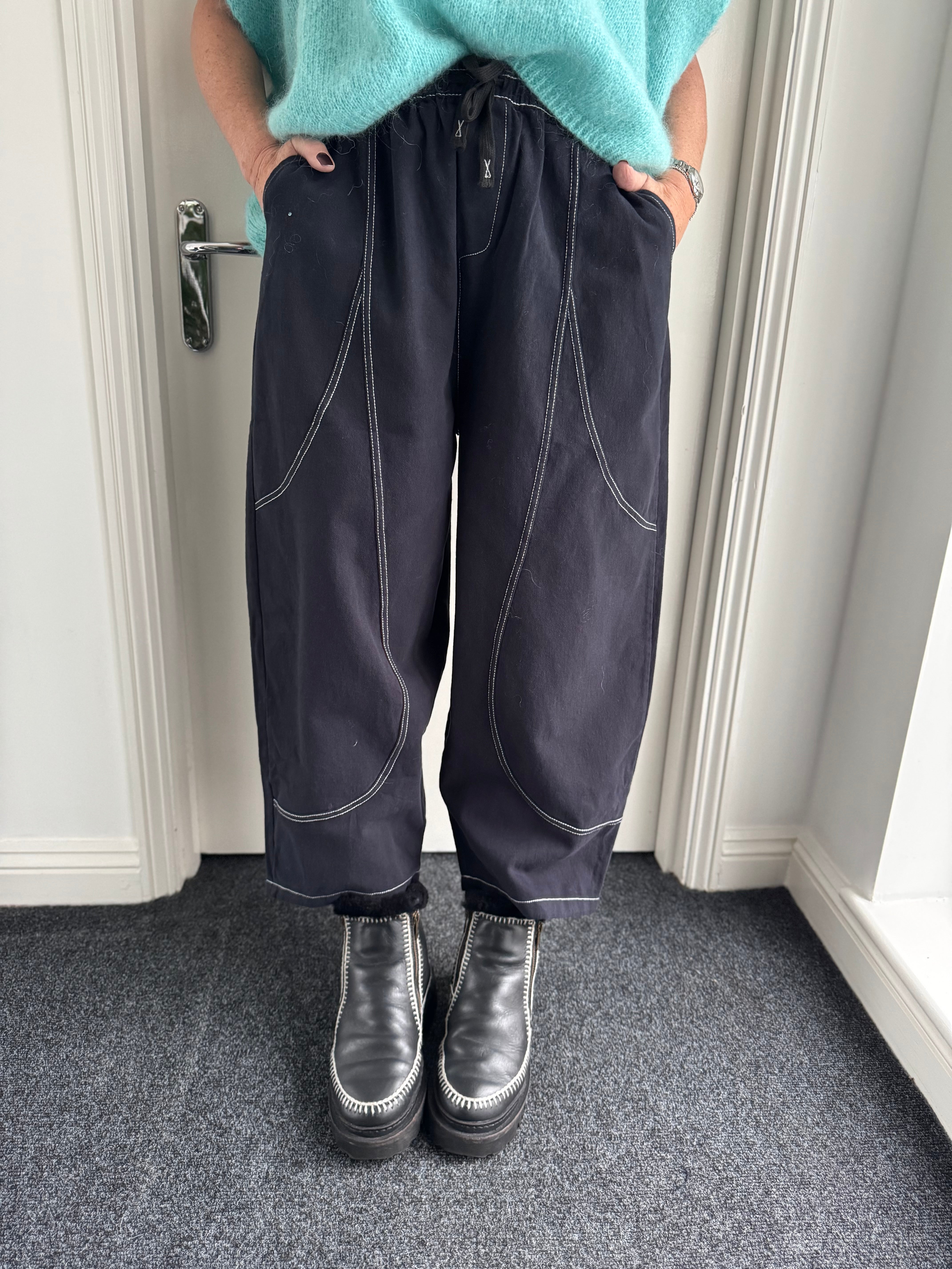 Top Stitched Barrel Trousers in Ink